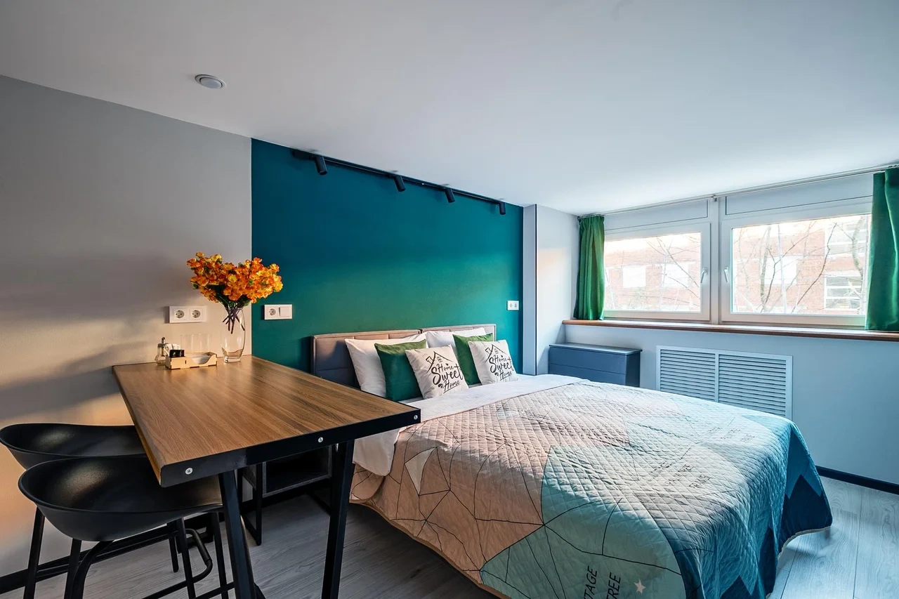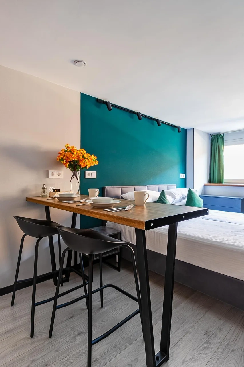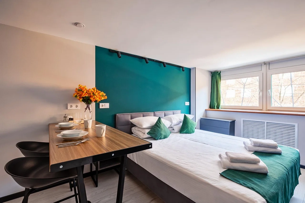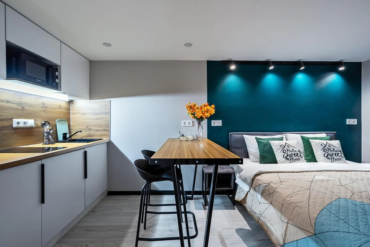 Выбрали эти апартаменты именно из-за расположение, удобно, рядом метро. Номер просторный, со своей кухней и техникой, чистый и комфортный даже для длительного пребывания. Отдельное спасибо администратору, приветливо встретил и заселил, любую проблему можно было решить круглосуточно.