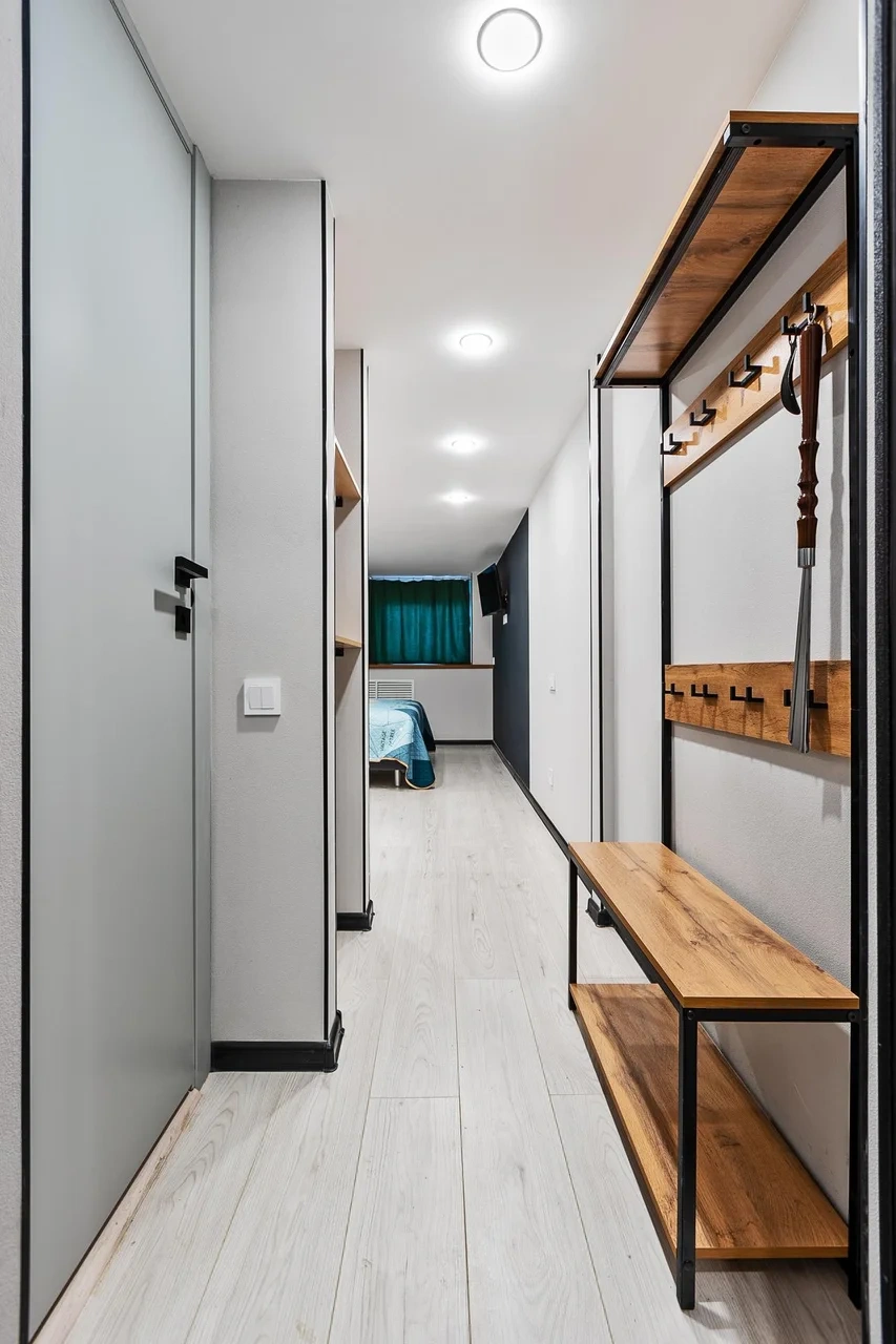 Планировка странная - в плане длинные узкие коридоры в номере. Вобщем приспособленые техничесские помещения под жилые уюта не добавляют.