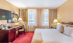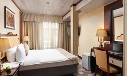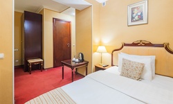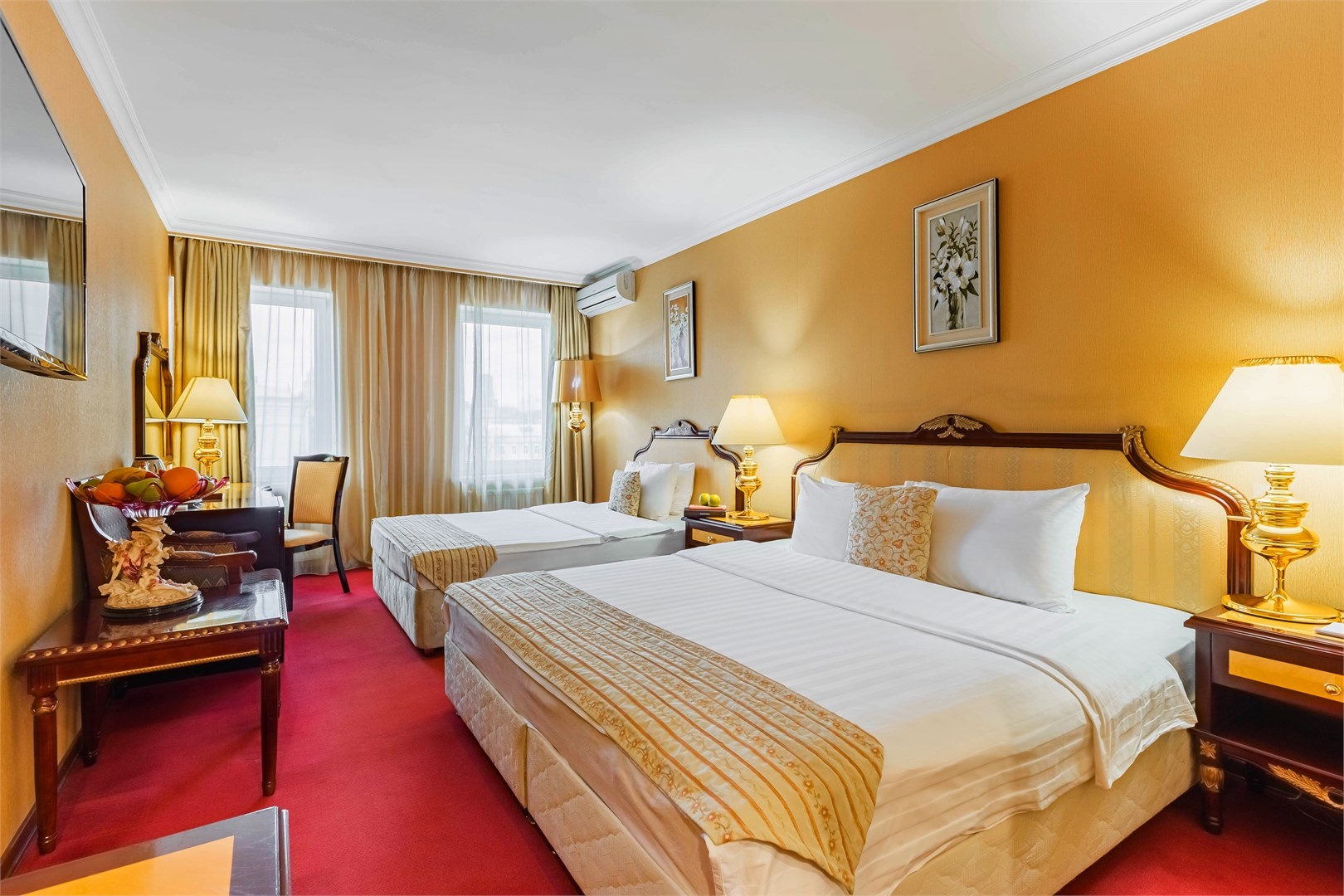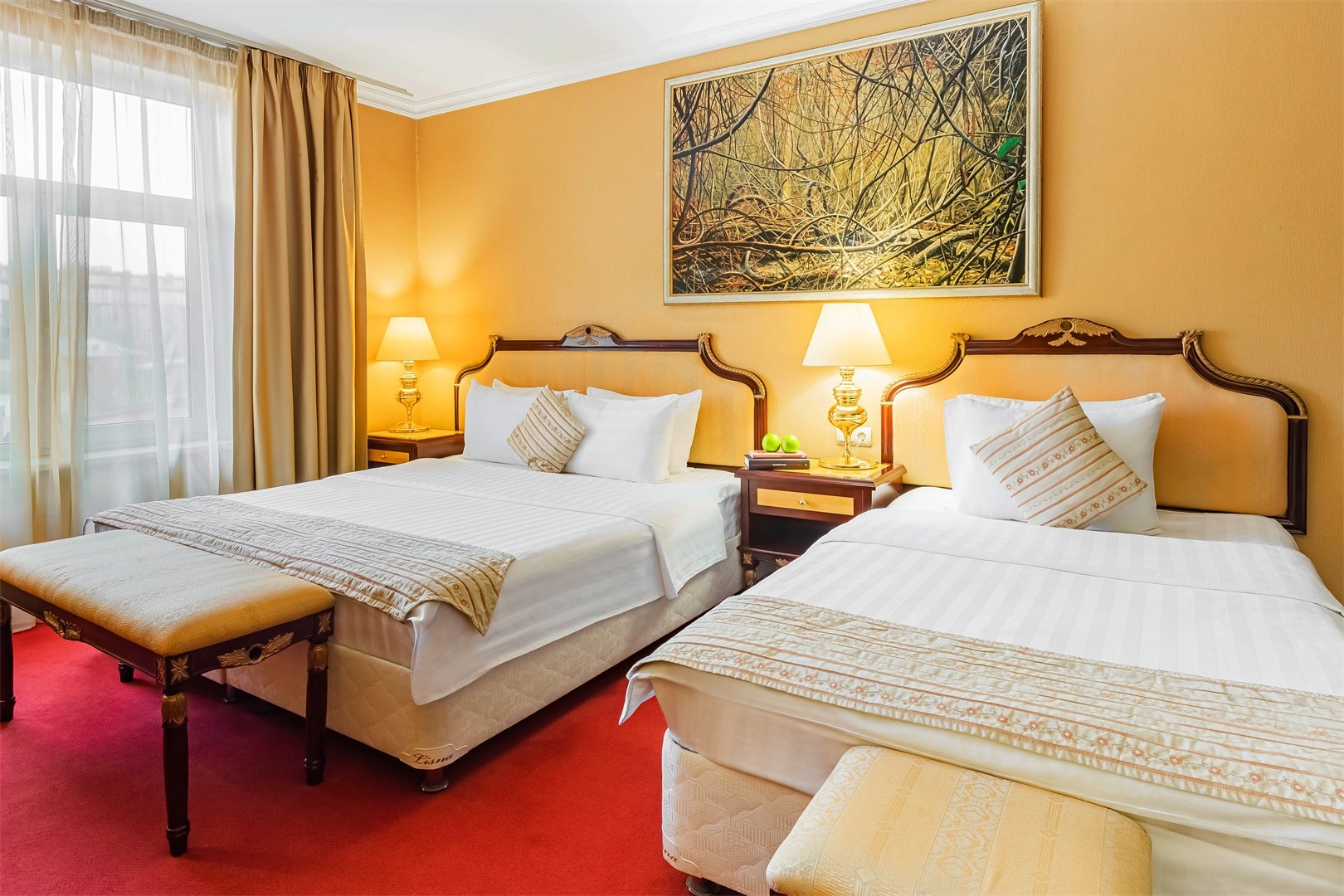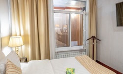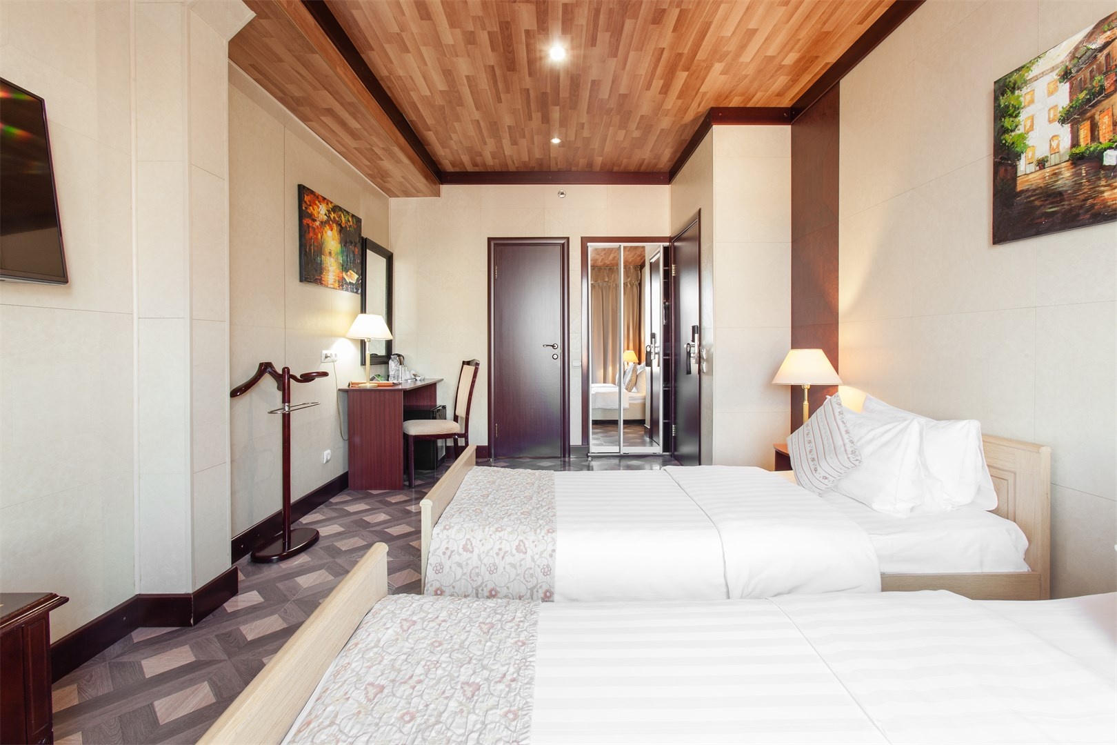 10-15 лет назад, возможно это можно бы было назвать 4-кой, но сейчас…. 1. отель откровенно устал, сильно устал, пора на свалку 2. зачем было делать номера из кладовок реально непонятно, когда у вас окна в коридор - это конечно впечатляет. И да, в описании номера бюджет указано, что окна во внутренний двор, но блин, это просто многоэтажный коридор. 3. кондиционер не работает, тарахтит но ничего не делает. 4. Есть чашки, чай ( только зеленый) но ладно, внимание главное - нет чайника, позвонил, принесли 2, реально, с разницей в 2 минуты. 5. На ресепшен можно позвонить только из вне, внутренний только для антуража. 6. Телевизор тоже не работает, он включается, но картинки нет, только звук. Закройтесь и не позорьтесь пожалуйста, и столицу не позорьте. К персоналу нет претензий, если в выше написанном нет их участия.