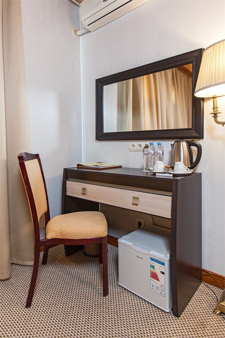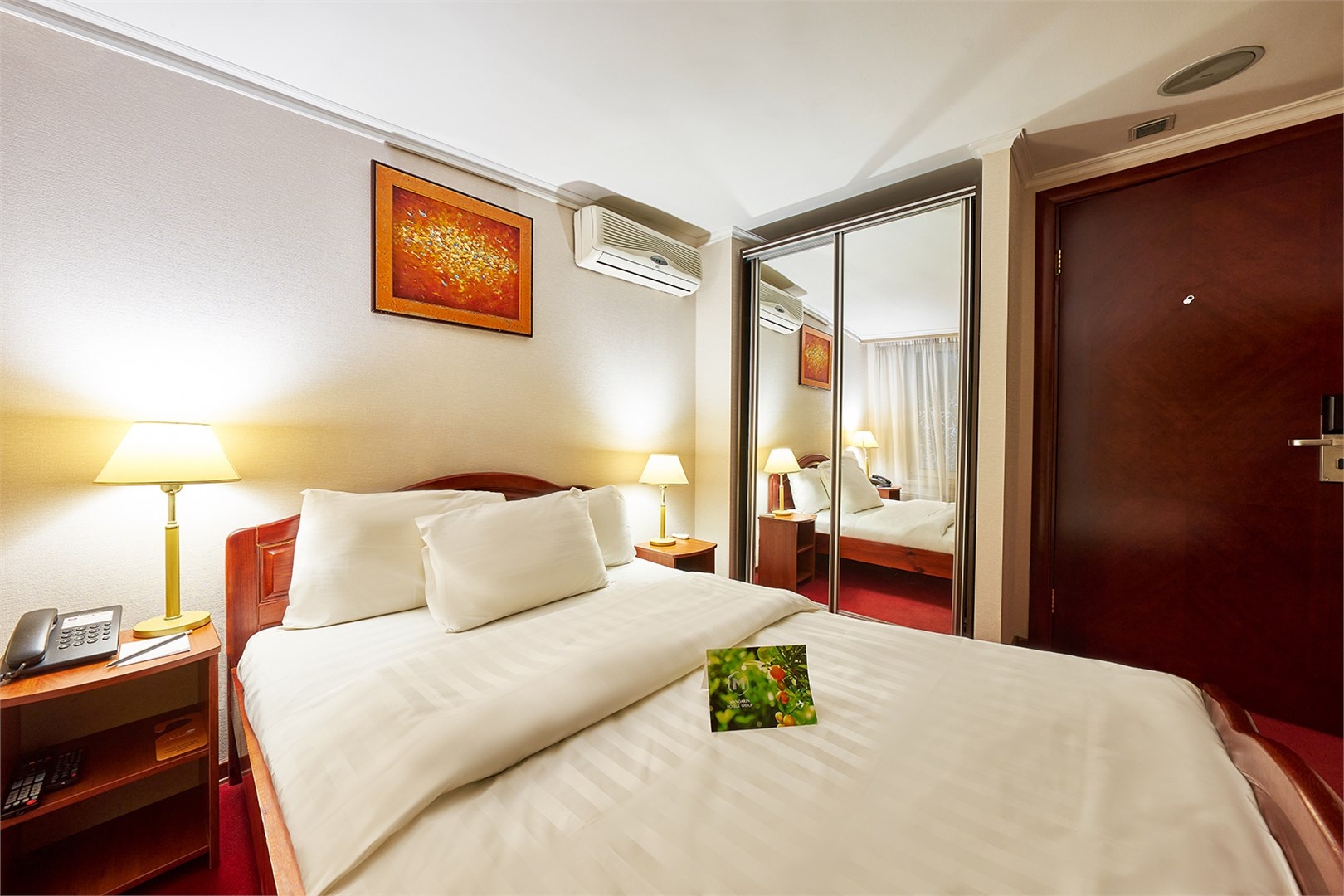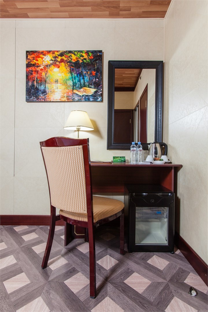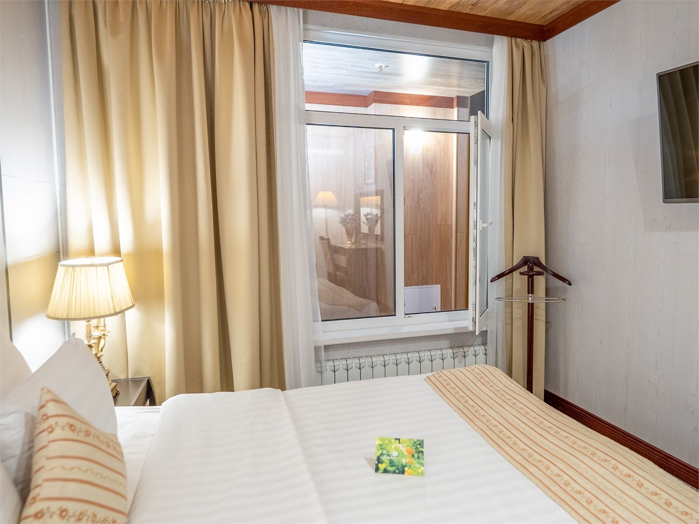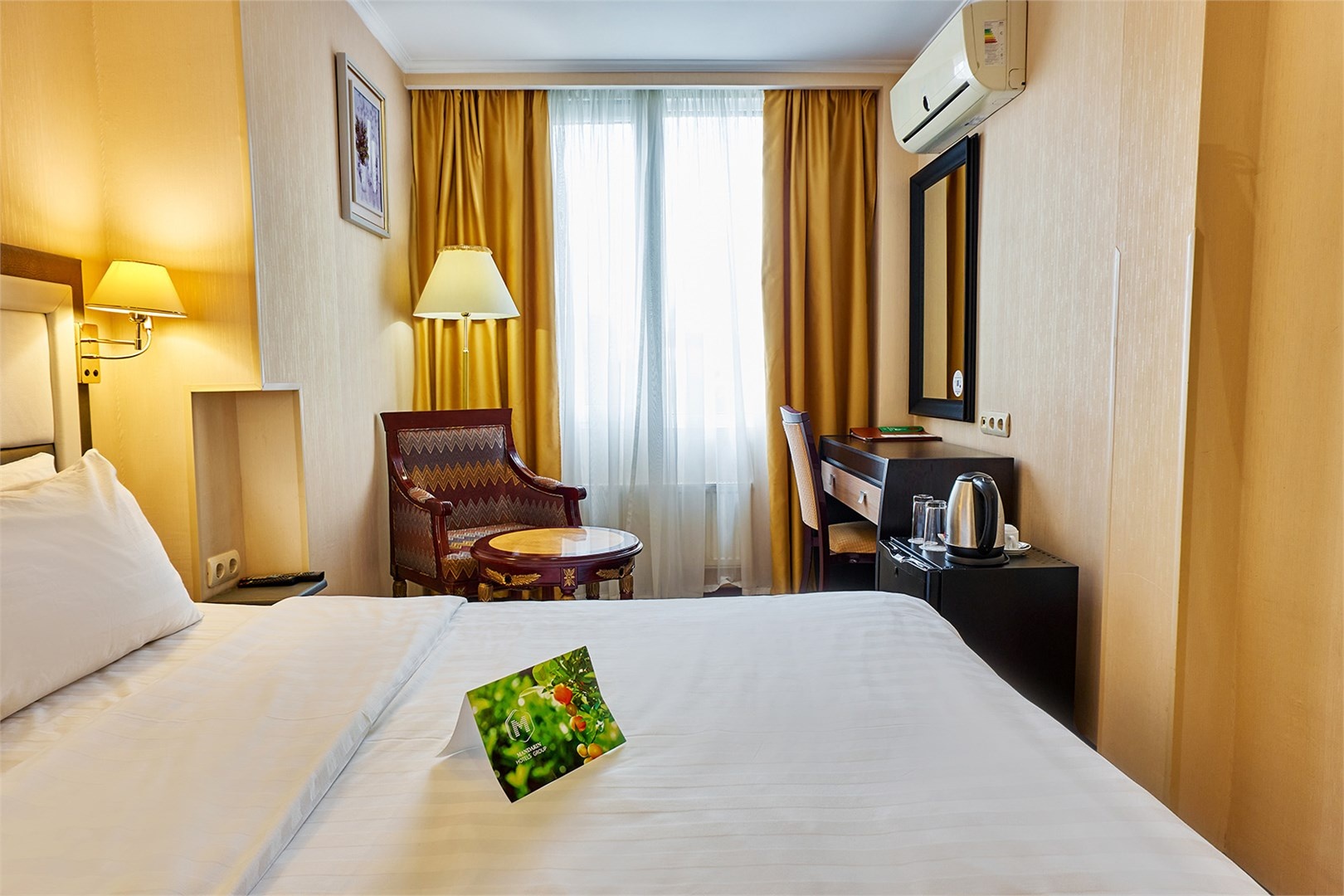 Номера просторные и чистые, с неплохим видом на город. Мебель практичная и удобная.