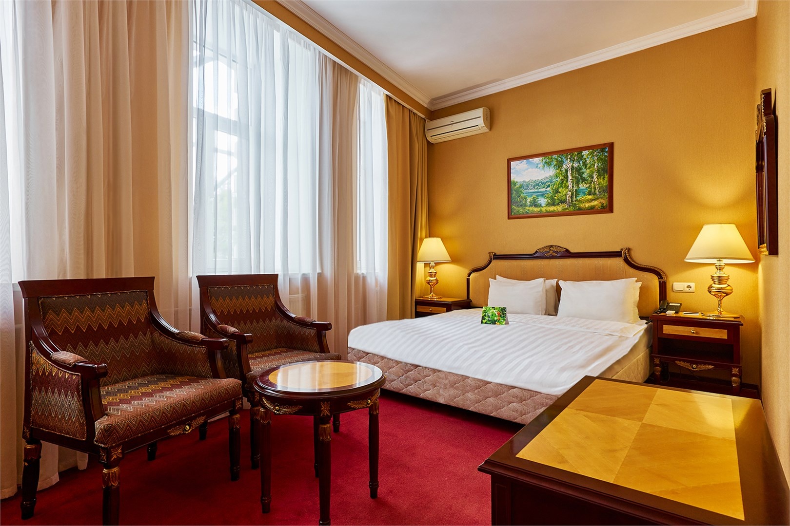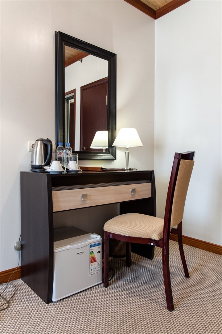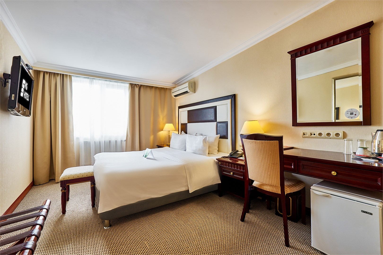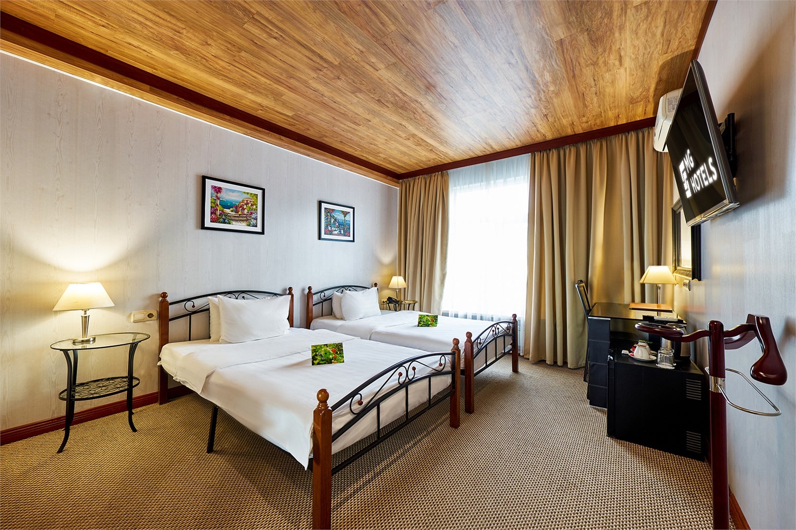 Номера просторные и чистые, с неплохим видом на город. Мебель практичная и удобная.