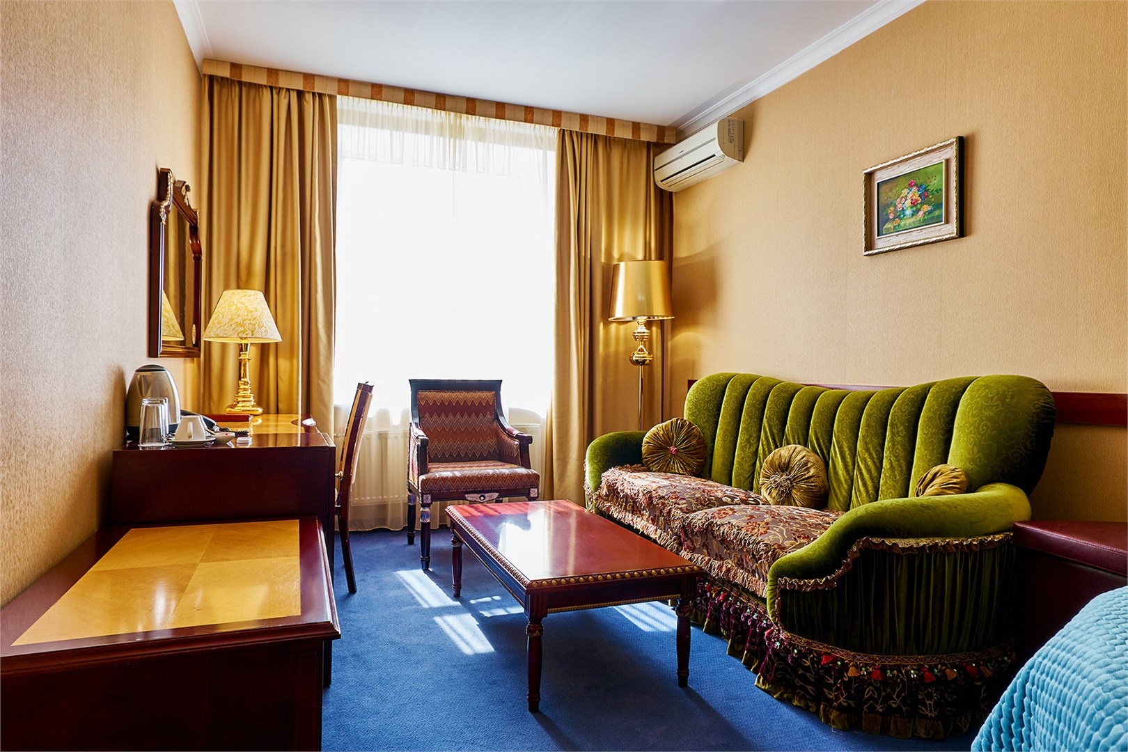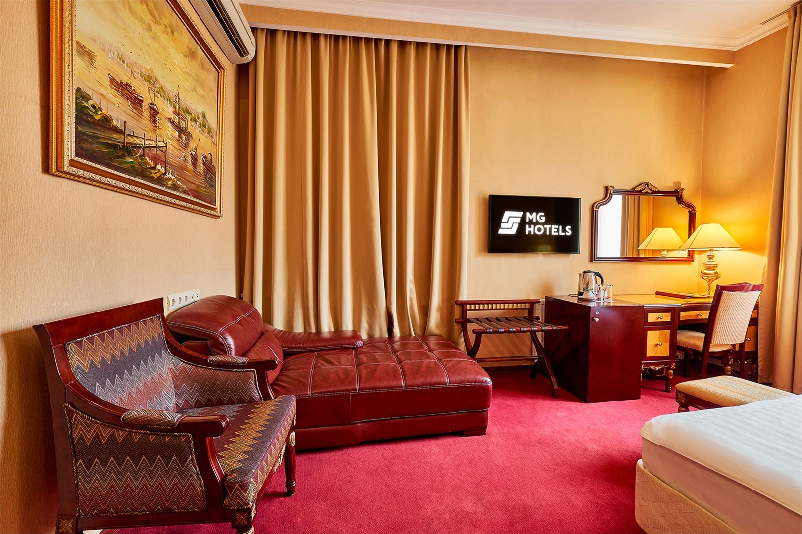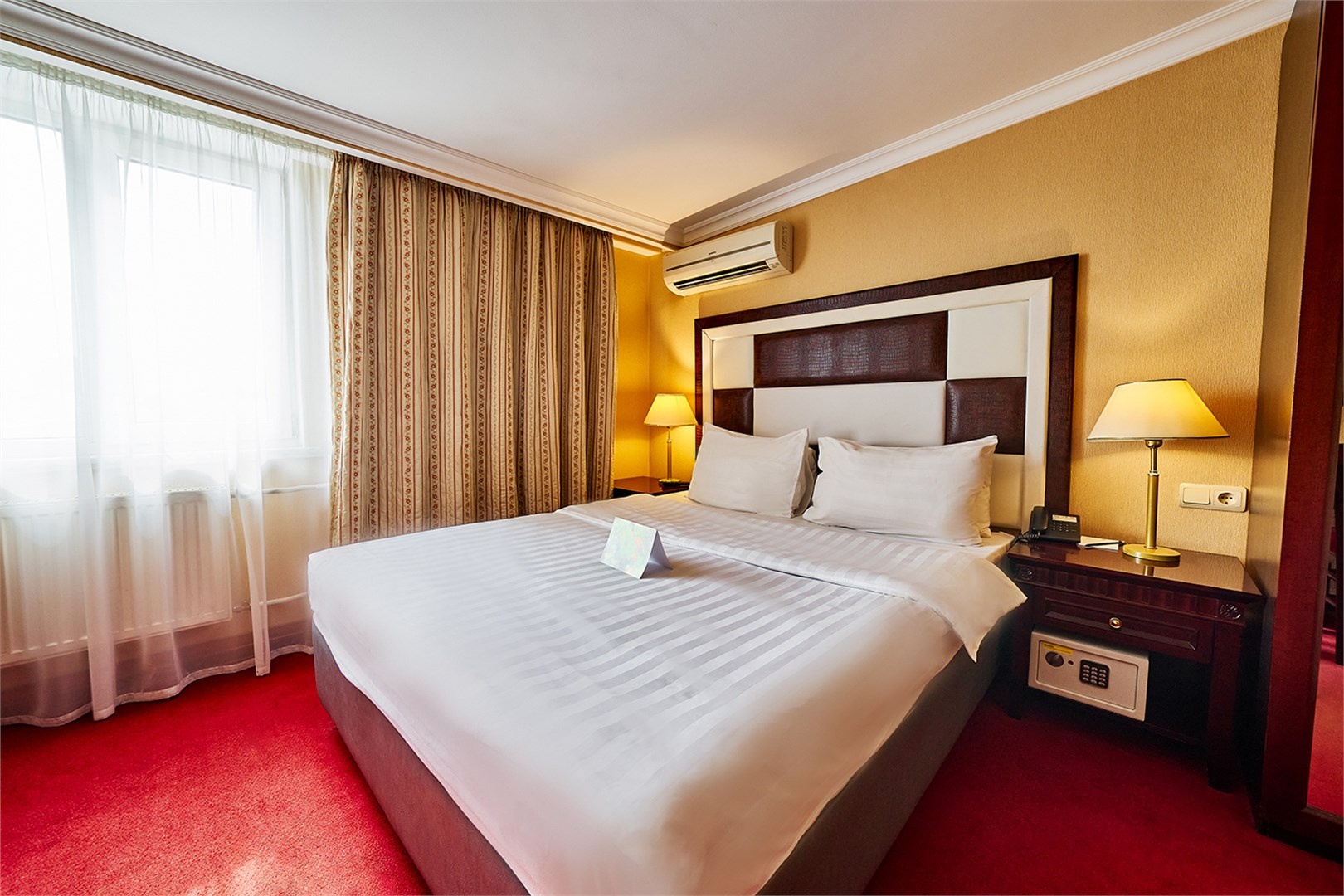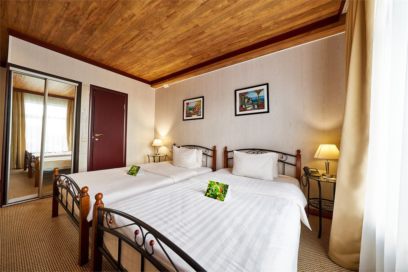 Номера просторные и чистые, с неплохим видом на город. Мебель практичная и удобная.