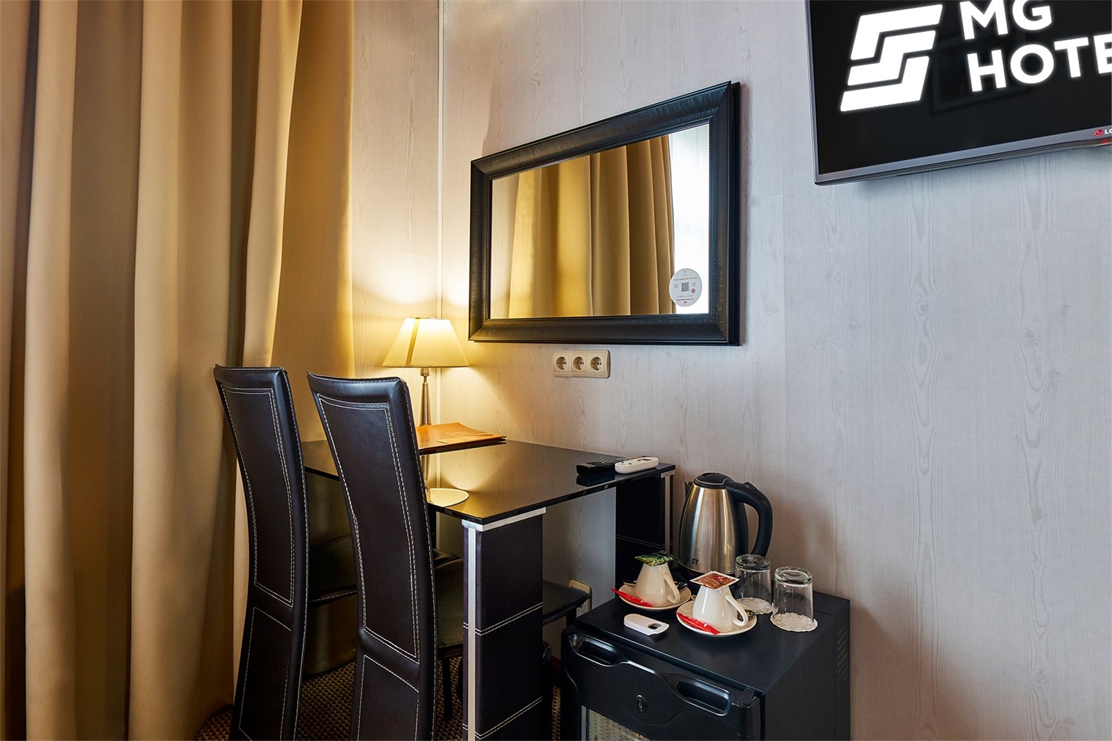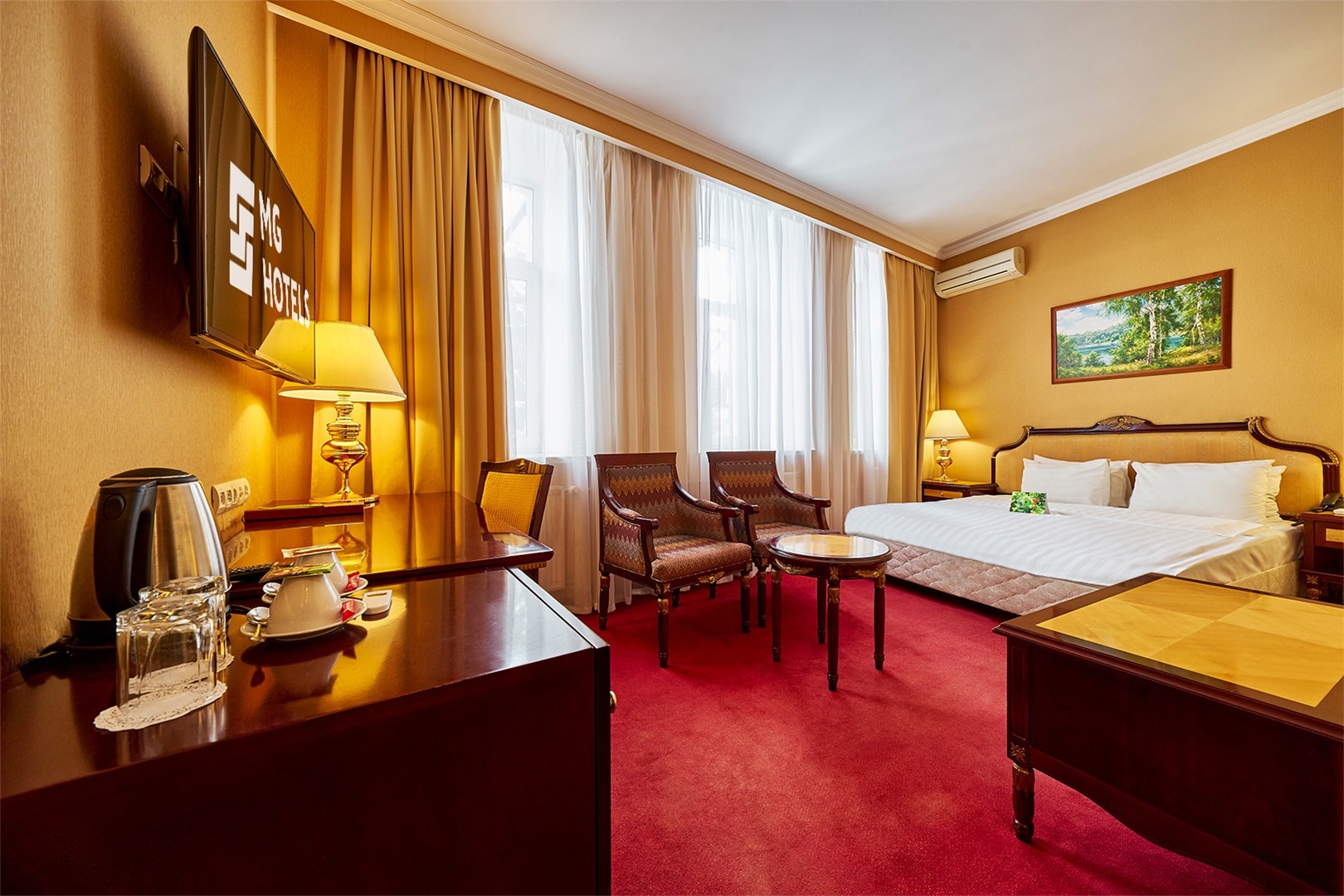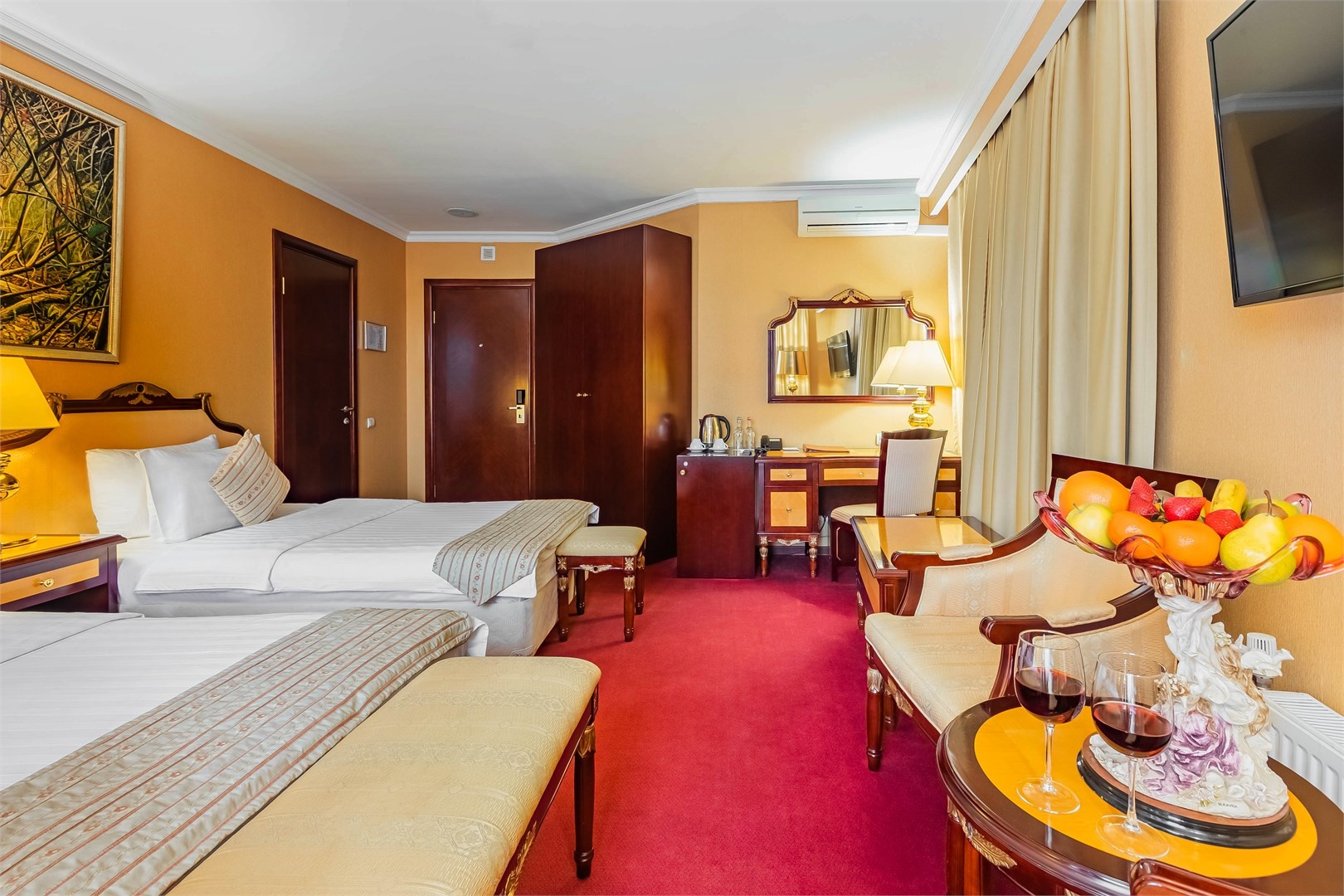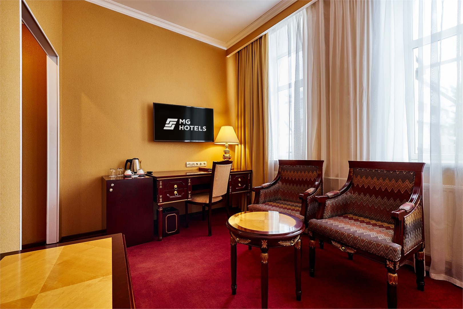 Номера просторные и чистые, с неплохим видом на город. Мебель практичная и удобная.