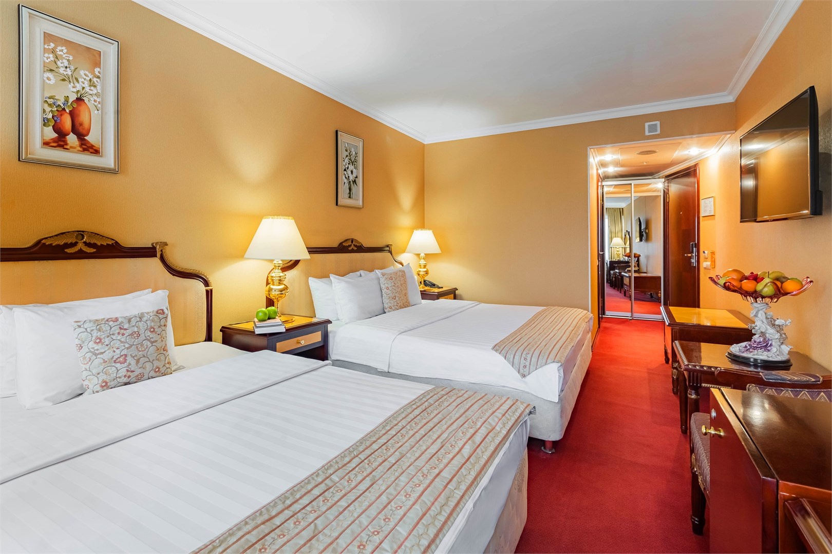 Пожалуй самая плохая гостиница в которой приходилось быть. Заселили в номер с кроватями как в тюрьме. Дешевые банельные матрасы. Про состояние номера вообще молчу, ремонт был лет 30 назад. С наружней стороны стены висел кондиционер, который гудел так, будто сосед стену сверлит. И за этот номер отдали 100€. Благо через день нас переселили в другой номер. Не на много лучше, но лучше. Но четырьмя звездами в этой гостинице даже не пахнет. Никому не советую.