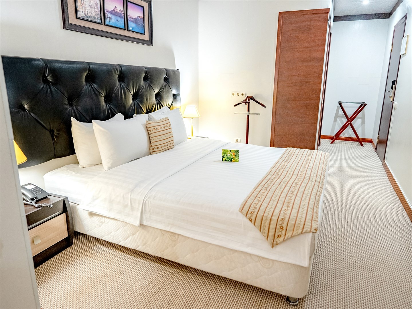 Номер грязный, обои грязные, розетки не работают, потолок низкий и кривой! Ванная в черной плесени , кондиционер внутри грибы уже. Кровать двоенная кому это важно учтите, матрац не один их 2... телек работает нормально, горячая вода есть , расположение это единственный плюс этого отеля. Шторы пыльные. Персонал хороший очень отзывчивый и вежливый, но отель срочно надо отмыть постирать все с хлоркой. Находится там брезгливо даже для мужика
