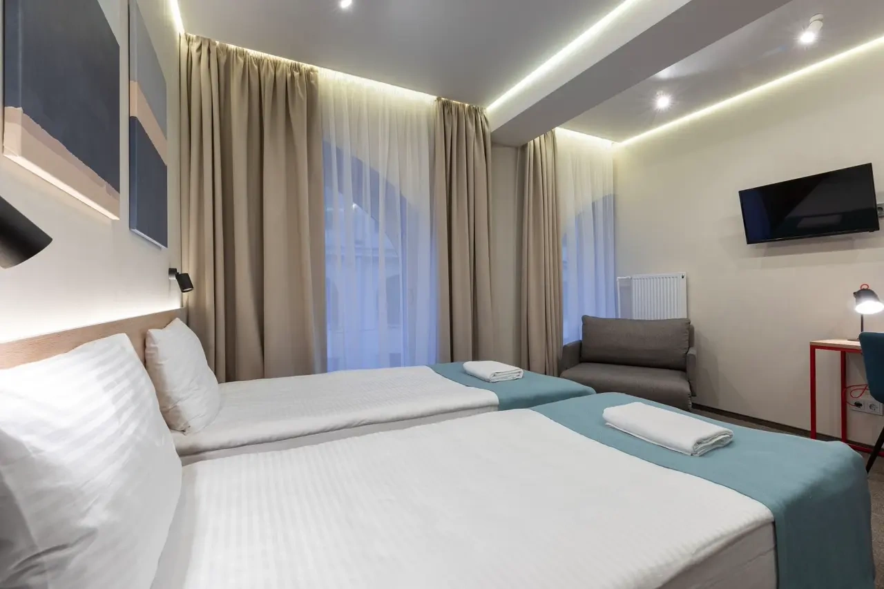 Размещение в отеле осуществляется в соответствии с системой расчетного часа: Время заезда - 14:00 часов местного времени; Время отъезда - 12:00 часов местного времени. Заезд в отель граждан РФ осуществляется по предъявлении ими паспорта гражданина РФ или иного документа удостоверяющего личность в соответствии с Постановлением Правительства РФ от 18.11.2020г. No1083. Заезд в отель иностранных гостей и лиц без гражданства возможен только при наличии документов, необходимых для постановки на миграционный учет (паспорт, виза, миграционная карта). В отеле разрешено проживание с кошками и собаками до 8 кг. Это является дополнительной платной услугой, которая оплачивается при заселении в отель.
