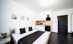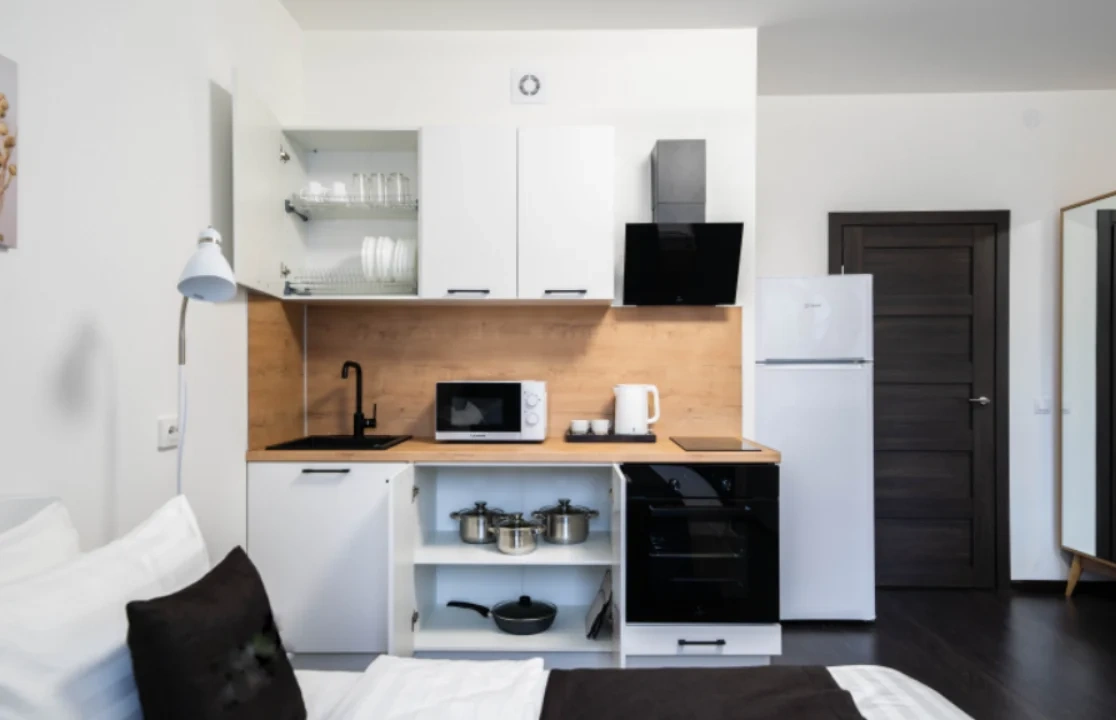 Добро пожаловать в уютную квартиру-студию с современным ремонтом в 10 минутах езды от аэропорта "Пулково". Новый микрорайон с развитой инфраструктурой.