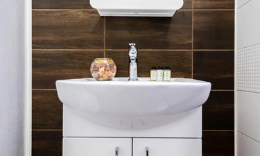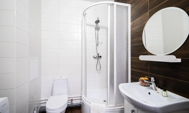 - Набор одноразовых принадлежностей, в который входят: одноразовые тапочки, гель для душа и шампунь.