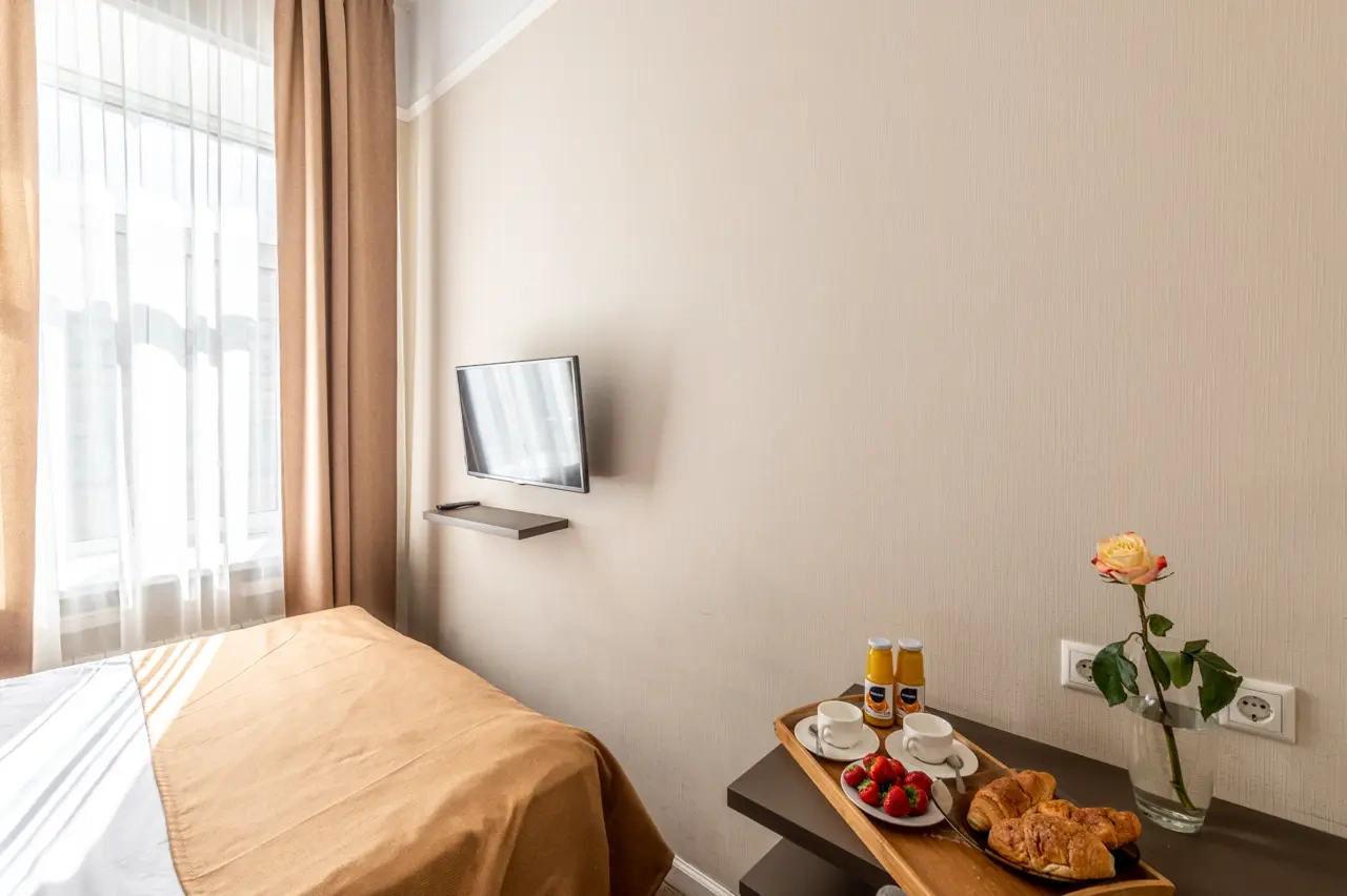 Отель с прекрасным расположением, чистыми и светлыми номерами. Брали проживание с завтраками, выбор их большой, они готовые, упакованные. Без изысков, но вполне приятные. Номера чистые, прибираются каждый день. Очень приветливые и клиентоориентированные администраторы. Проживанием довольны????????