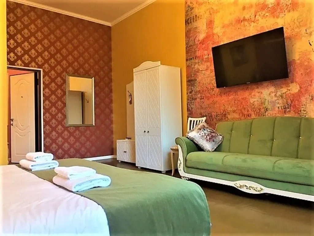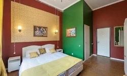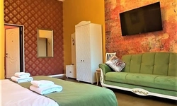 Номер делюкс имеет несколько дизайнерских решений. Благодаря наличию двухспального дивана номер идеально подходит для семейного размещения.