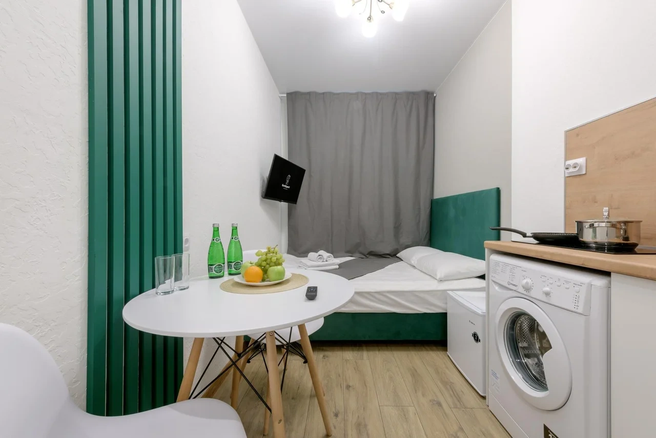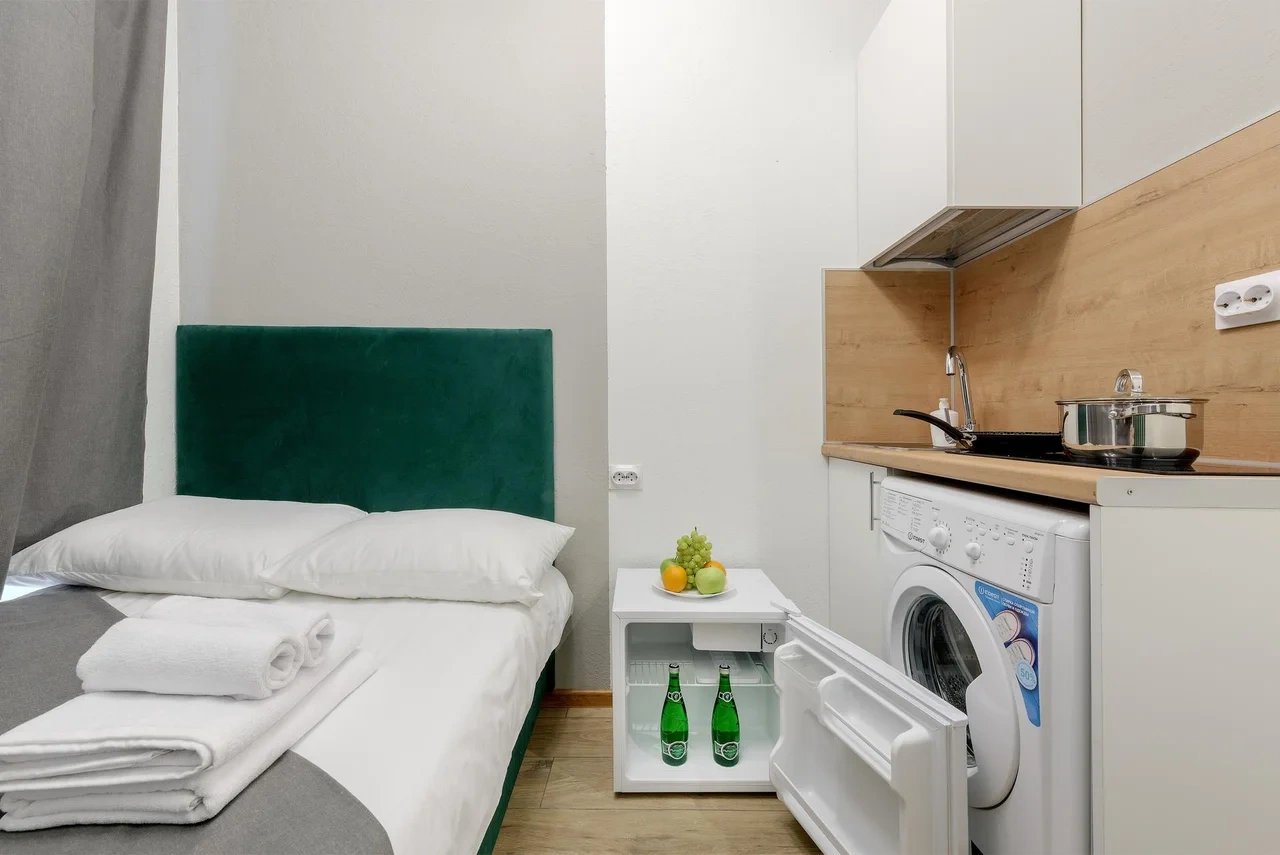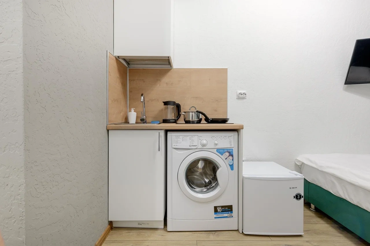- В каждой студии индивидуальная стиральная машина;