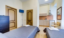 Ужасные апартаменты. Лифт не работает. Номер грязный, посуды толком нет, 2 грязных граненых стакана и полторы ложки. На матрасах спать невозможно - пружины впиваются в спину. Свет отвратительный, все тускло. Бегают тараканы. Горячей воды не было, по контактному номеру не реагируют.