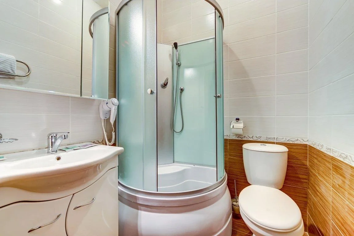 В комнате душно, вентиляция только естественная а не принудительная. Под кроватью валялась бутылка и мусор от предыдущих постояльцев, не работал телевизор, в ванной комнате после помывки просто озеро образуется.