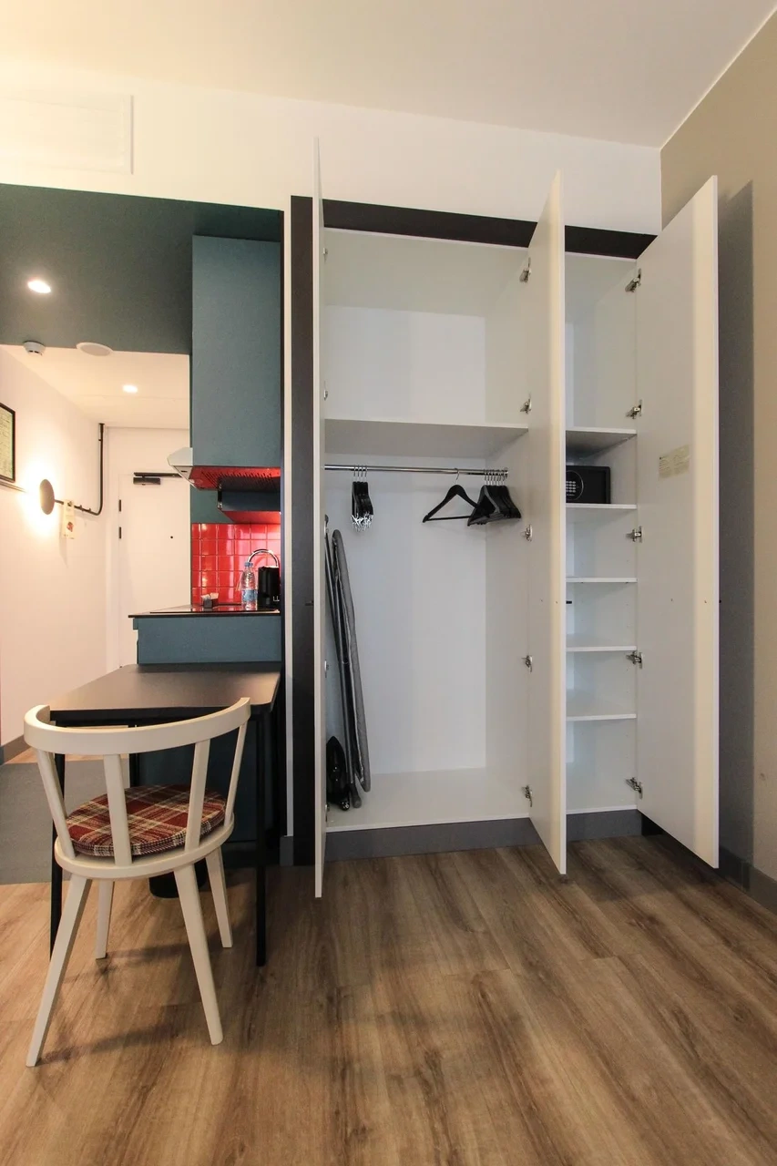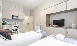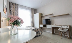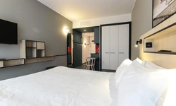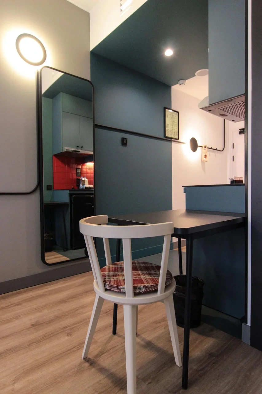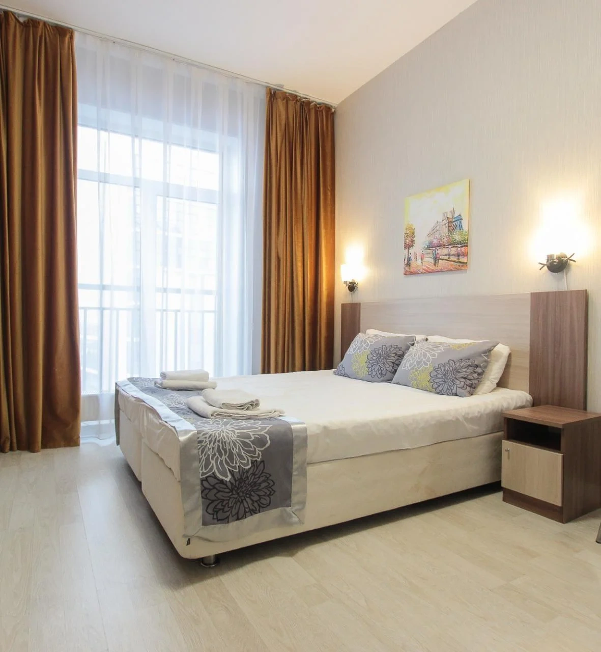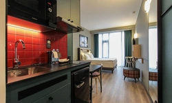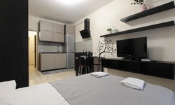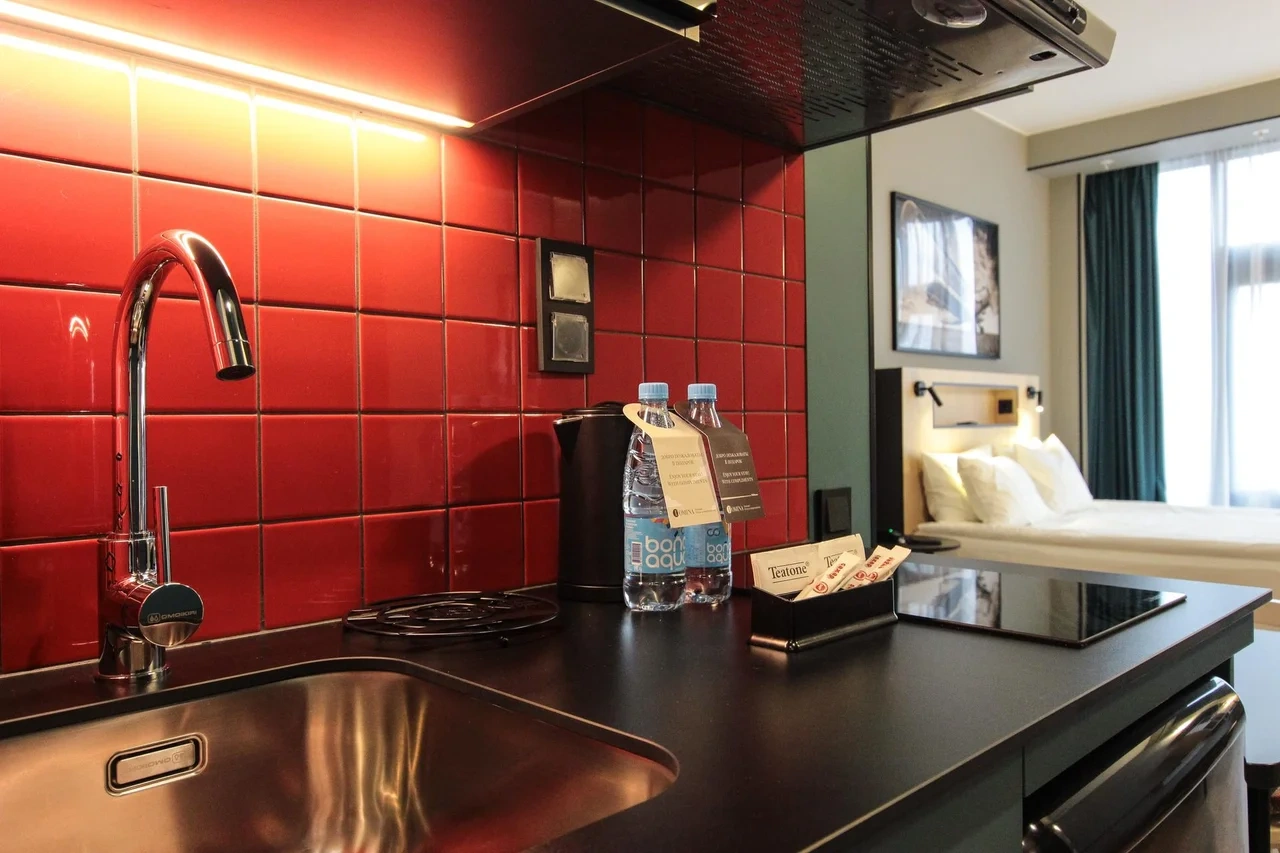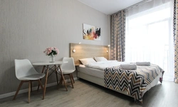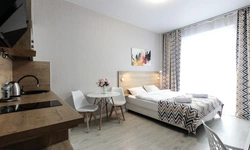 Просторный номер площадью 30 кв.м. с одной двуспальной кроватью. Стильный интерьер и функциональная мини-кухня обеспечивает максимальный комфорт пребывания. Каждый номер оснащен мини-кухней с холодильником, варочной поверхностью и набором посуды, рабочей зоной, беспроводным интернетом и ЖК-телевизором. Ванная комната с душевой кабиной, набором необходимых принадлежностей, включая фен.