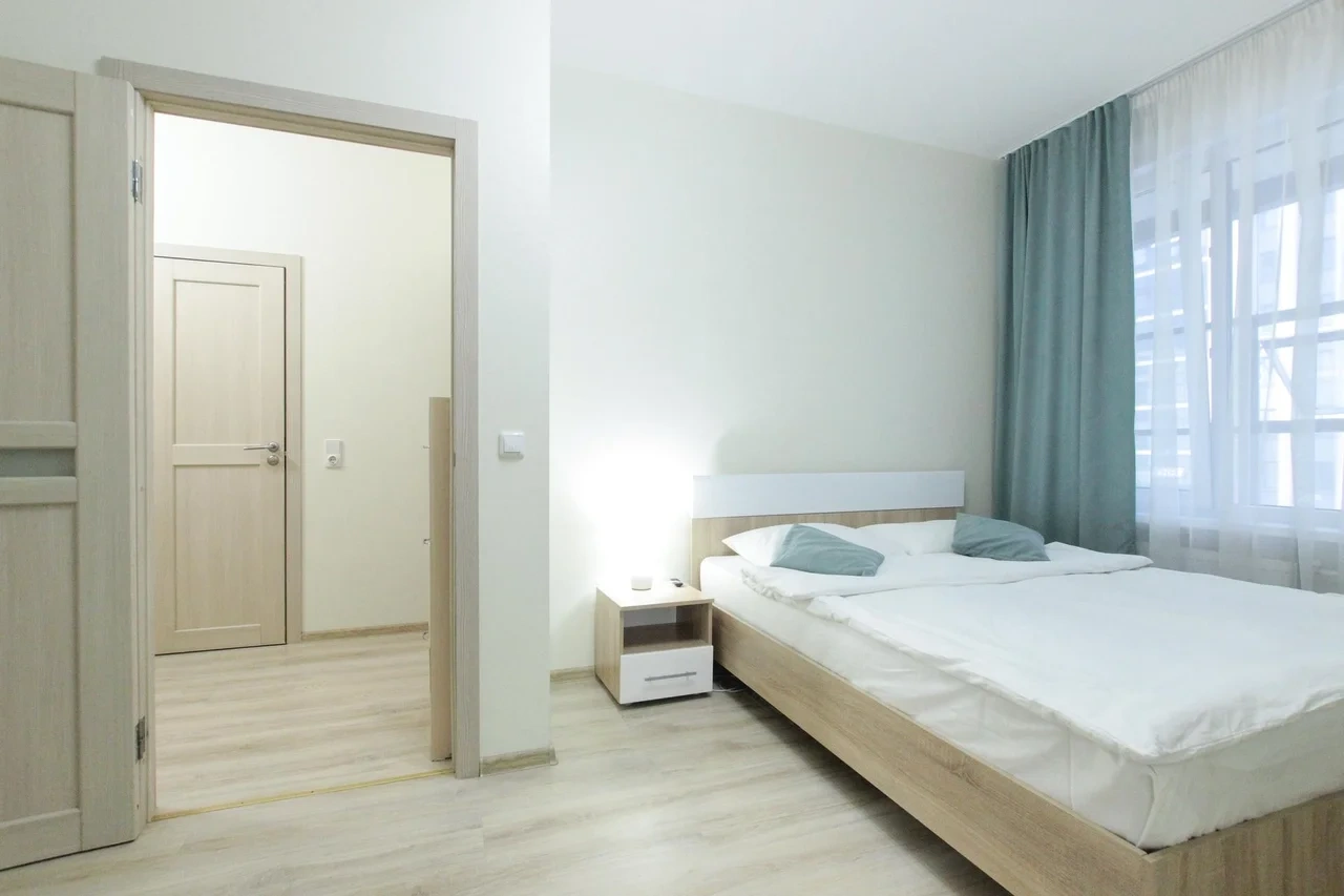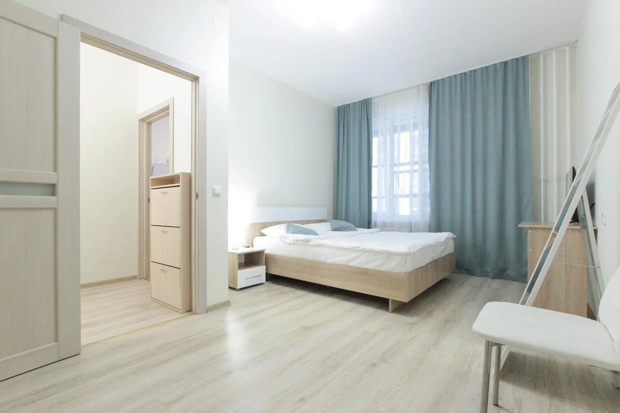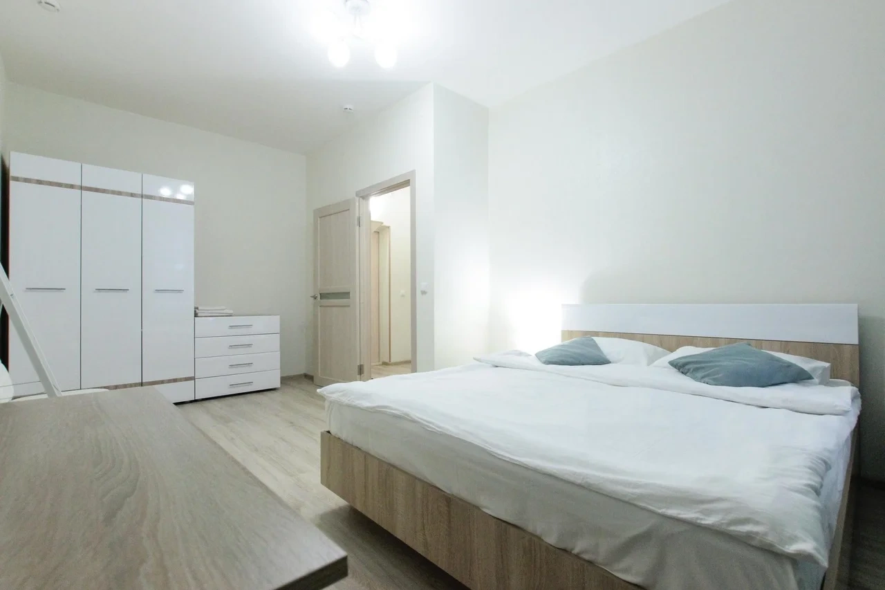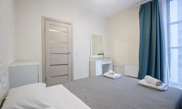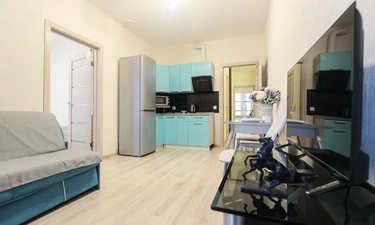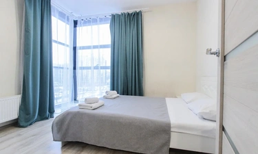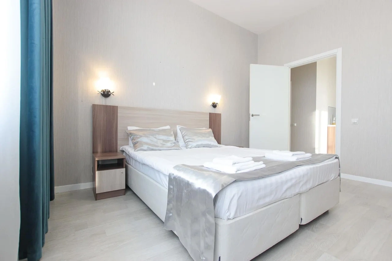 ОБ АПАРТАМЕНТЕ: - Двуспальная кровать 160*200 - Свежее и приятное постельное белье - Шторы blackout для крепкого сна в дневное время и в период белых ночей. - Безлимитный WI-FI. - Телевизор. - Стиральная машинка. - Сушилка. - Утюг с доской. - Фен. - Кухонный гарнитур с варочной поверхностью, холодильником, микроволновкой, чайником, набором посуды для готовки и сервировки. - Удобная обеденная зона. - Чай/кофе, сахар. - Комплект свежих полотенец, одноразовые тапочки, зубные наборы, гигиенические принадлежности.