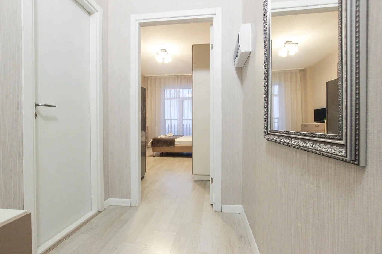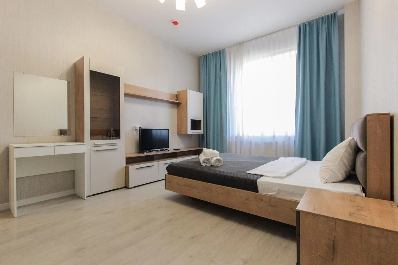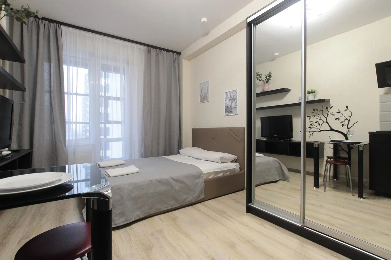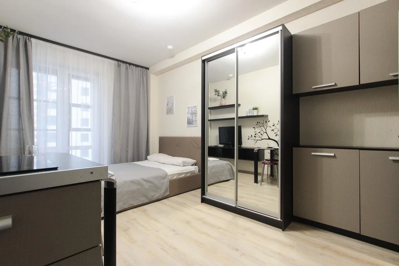 предлагает комфортабельную, современную студию - уютное место для Вашего отдыха . В квартире есть все необходимое для комфортного проживания: — кровать с ортопедическим матрасом; — постельное белье и полотенца; — гигиенические принадлежности, косметические средства и тапочки; — холодильник, электрическая плита, электрочайник, микроволновая печь; — водонагреватель; — телевизор; — кондиционер; — стиральная машина; — утюг с гладильной доской, фен, сушилка для белья; — электроплита; — посуда, моющие средства; — чай, кофе, сахар; — скоростной Wi-Fi. Комплекс с развитой и комфортной инфраструктурой: имеется все необходимое для комфортного и безопасного проживания. Круглосуточные магазины, пешеходные зоны для отдыха и прогулок (оборудованные фонарями и скамейками), аптеки, кафе, рестораны и кальянные. Рядом с домом есть места для парковки авто, а при необходимости, на нулевом этаже, расположена охраняемая подземная платная парковка. Финишная уборка включена в стоимость (при длительном проживании обязательна еженедельная уборка с заменой белья). Будем ждать вас в гости! Вам понравится.