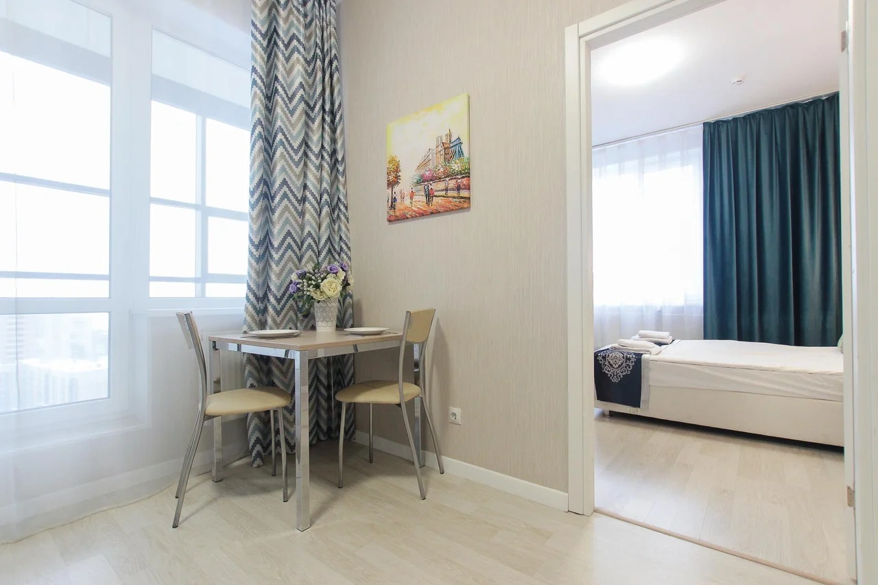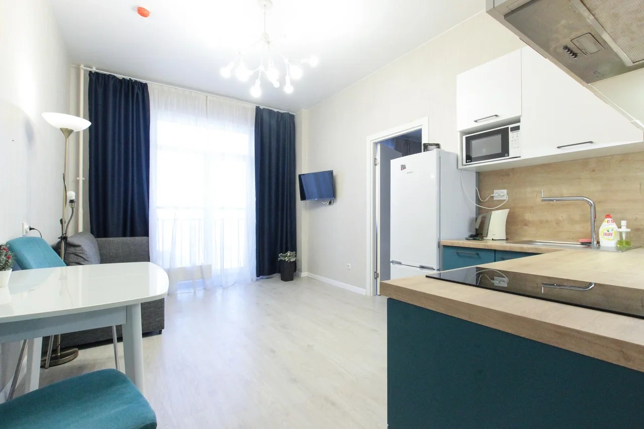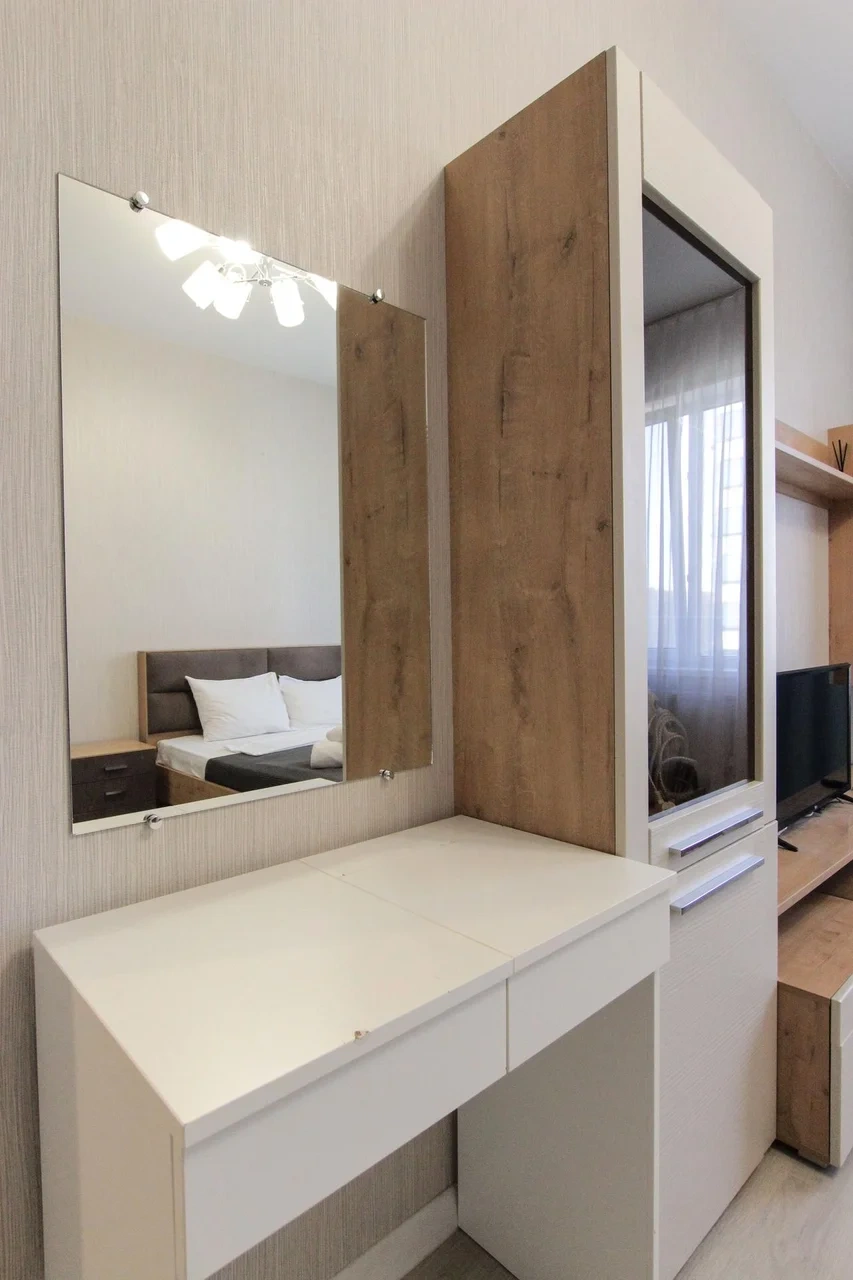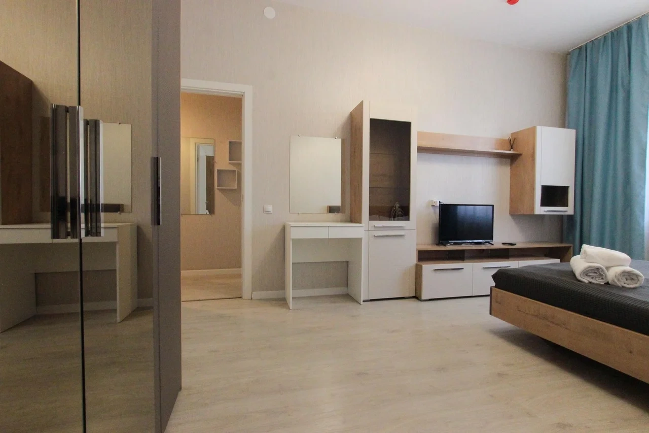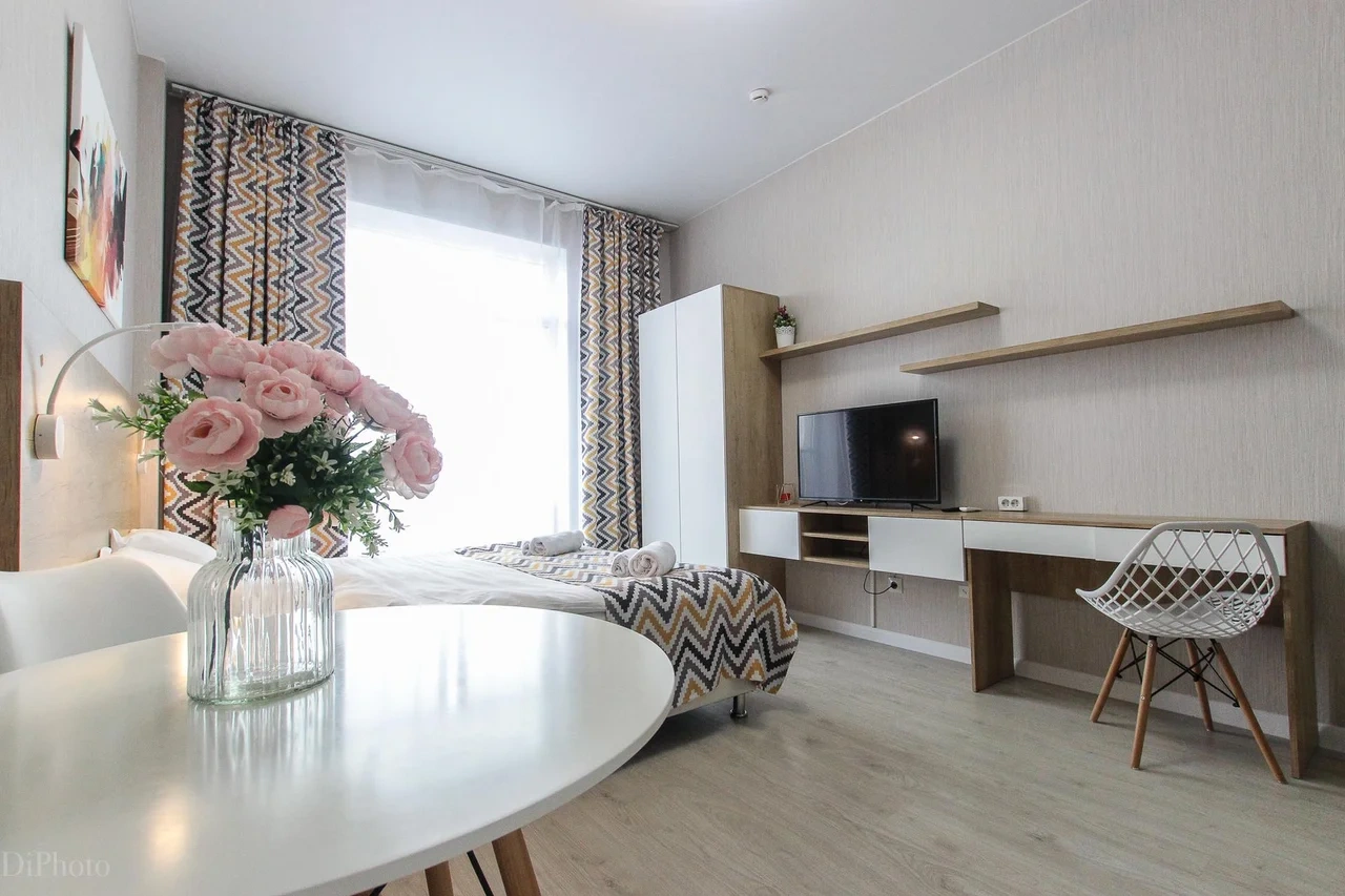 предлагает комфортабельную, современную студию - уютное место для Вашего отдыха . В квартире есть все необходимое для комфортного проживания: — кровать с ортопедическим матрасом; — постельное белье и полотенца; — гигиенические принадлежности, косметические средства и тапочки; — холодильник, электрическая плита, электрочайник, микроволновая печь; — водонагреватель; — телевизор; — кондиционер; — стиральная машина; — утюг с гладильной доской, фен, сушилка для белья; — электроплита; — посуда, моющие средства; — чай, кофе, сахар; — скоростной Wi-Fi. Комплекс с развитой и комфортной инфраструктурой: имеется все необходимое для комфортного и безопасного проживания. Круглосуточные магазины, пешеходные зоны для отдыха и прогулок (оборудованные фонарями и скамейками), аптеки, кафе, рестораны и кальянные. Рядом с домом есть места для парковки авто, а при необходимости, на нулевом этаже, расположена охраняемая подземная платная парковка. Финишная уборка включена в стоимость (при длительном проживании обязательна еженедельная уборка с заменой белья). Будем ждать вас в гости! Вам понравится.