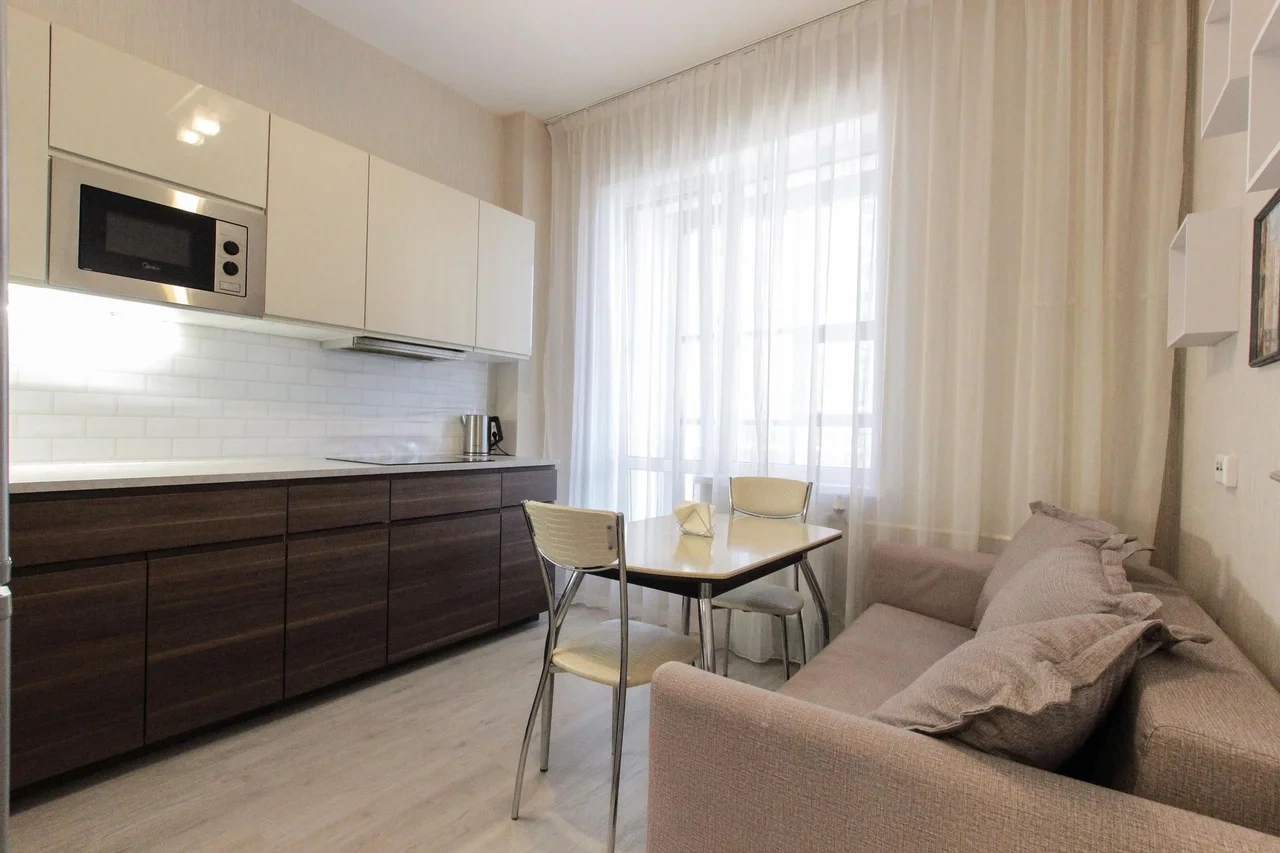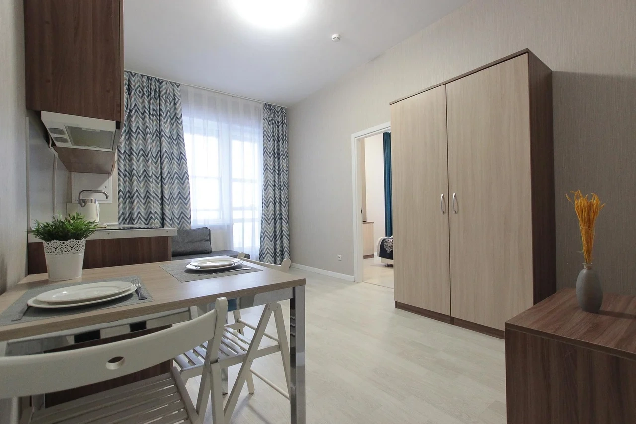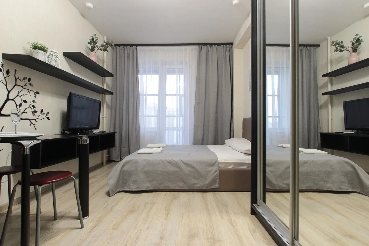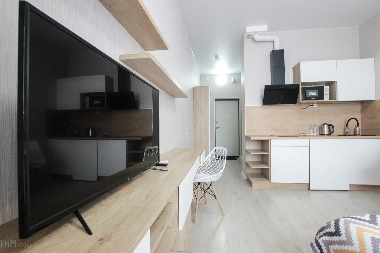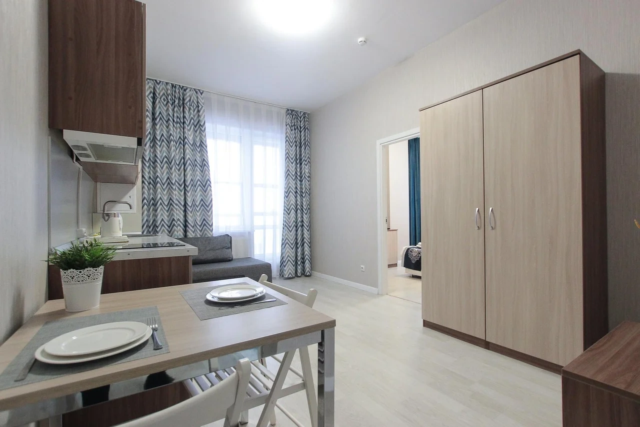 предлагает комфортабельную, современную студию - уютное место для Вашего отдыха . В квартире есть все необходимое для комфортного проживания: — кровать с ортопедическим матрасом; — постельное белье и полотенца; — гигиенические принадлежности, косметические средства и тапочки; — холодильник, электрическая плита, электрочайник, микроволновая печь; — водонагреватель; — телевизор; — кондиционер; — стиральная машина; — утюг с гладильной доской, фен, сушилка для белья; — электроплита; — посуда, моющие средства; — чай, кофе, сахар; — скоростной Wi-Fi. Комплекс с развитой и комфортной инфраструктурой: имеется все необходимое для комфортного и безопасного проживания. Круглосуточные магазины, пешеходные зоны для отдыха и прогулок (оборудованные фонарями и скамейками), аптеки, кафе, рестораны и кальянные. Рядом с домом есть места для парковки авто, а при необходимости, на нулевом этаже, расположена охраняемая подземная платная парковка. Финишная уборка включена в стоимость (при длительном проживании обязательна еженедельная уборка с заменой белья). Будем ждать вас в гости! Вам понравится.