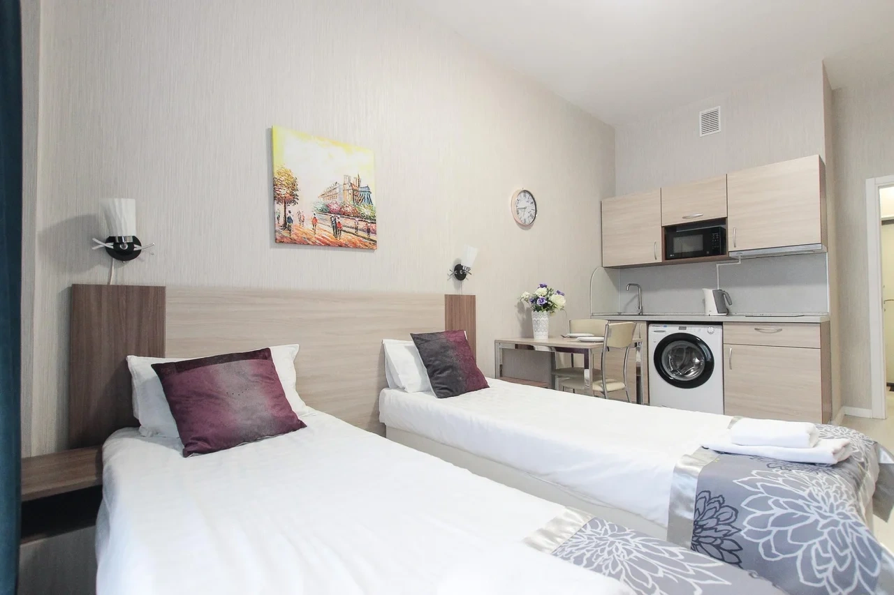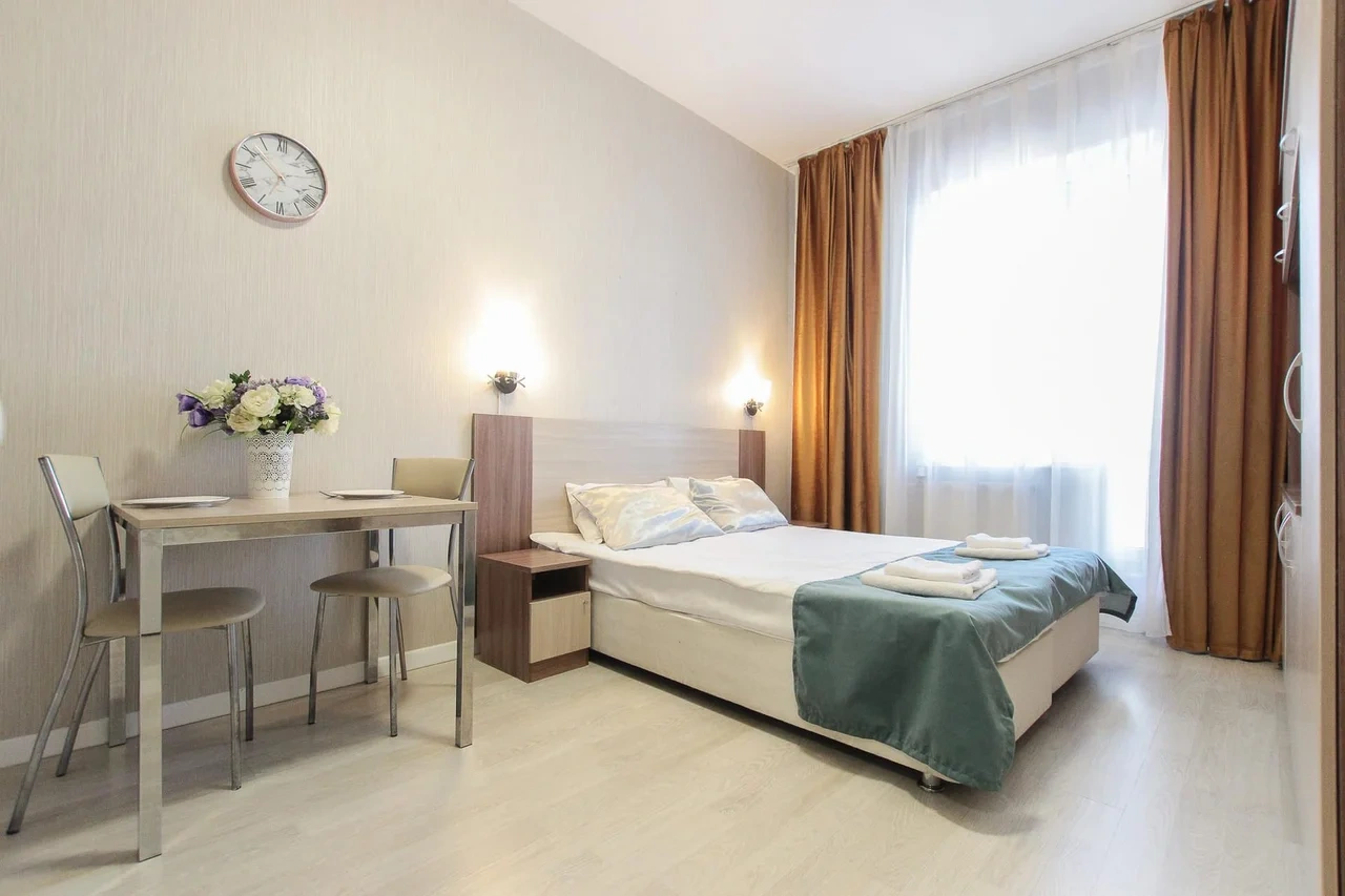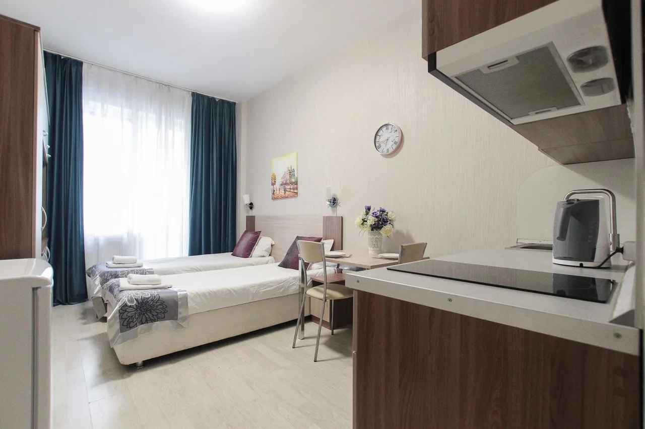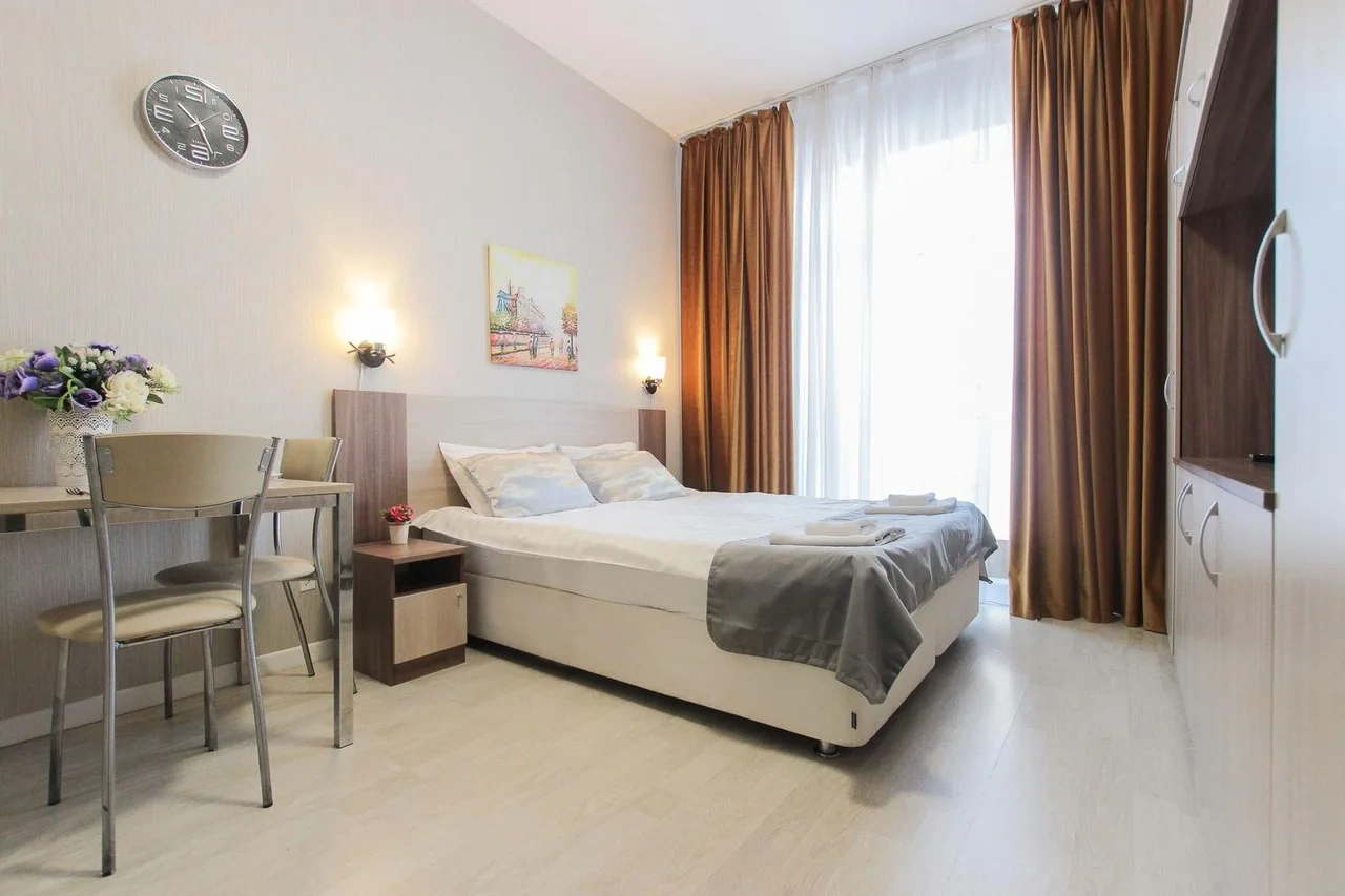 Апартаменты находятся в Санкт-Петербурге, рядом с благоустроенным и просторным Пулковским парком. Интерьер апартаментов выполнен в современном стиле, они обустроены мебелью с комфортом для приятного отдыха гостей. В числе удобств имеется Wi-fi, ЖК-телевизор, собственная ванная комната, набор постельного белья. Одним из преимуществ является наличие панорамного балкона, откуда видно город. Кухня оборудована бытовой техникой и посудой. Перекусить или попробовать новые блюда гости смогут в ресторане «Пулково Парк» или «Лофт». Апарт-отель «Luna Pulkovo Apart» расположен в Московском районе Санкт-Петербурга. Представленные 25 номеров в светлых тонах, с комфортной мягкой мебелью имеют все необходимые удобства для уютного проживания или ночлега, в том числе и собственную ванную комнату c комплектом полотенец и тапочек, средствами личной гигиены. На кухне есть холодильник, микроволновая печь. В этом доме есть магазин «Магнит», «Пятёрочка», «Fix Price». Дом располагается в парковой зоне, где гости могут заняться пешей ходьбой, бегом. Ближайшее метро «Звёздная» - 1,23 км. Расстояние до жд вокзала — 8,6 км, до аэропорта — 3,1 км. В номере: спальня, кухня, двуспальная кровать, вешалка, центральное отопление, гладильные принадлежности, розетка возле кровати, деревянный или паркетный пол, услуга «звонок-будильник», неперьевая подушка, корзины для мусора, белье, гипоаллергенная подушка, гипоаллергенный, телевизор, кабельное телевидение, посуда, микроволновая печь, электрочайник, газовая плита, кофемашина, холодильник, кухня, бутилированная вода, обеденный уголок, бокалы для вина, высокий стул для ребенка, рабочий стол, гардероб, детские кроватки, вентилятор, утюг, сушилка для одежды, балкон, вид на город, красивый вид, вид во внутренний дворик, вид на озеро, вид на сад, антибактериальный гель для рук, вход по ключу, датчик дыма. В ванной: туалет, ванна, душ, средства личной гигиены, тапочки, фен, стиральная машина, набор полотенец, шампунь, чистящие средства, туалетная бумага, мыло, зубная щетка, высокий туалет, низкая раковина. Стильные апартаменты выполнены в светлых и спокойных тонах и оснащены всем необходимым для комфортного проживания. Среди удобств плазменный телевизор, бесплатный Wi-Fi и собственная ванная комната. Современная кухня оборудована индукционной плитой, холодильником и микроволновой печью. В распоряжении гостей удобная обеденная зона и набор посуды. В ближайших зданиях находятся разнообразные кафе и рестораны. В 300 метрах располагается «Пулковский парк», в 750 метрах - «Сквер Раисы Штрейс», а в 400 метрах - торговый центр. До железнодорожной станции «Предпортовая» - 3 километра, до аэропорта «Пулково» - 8 километров.