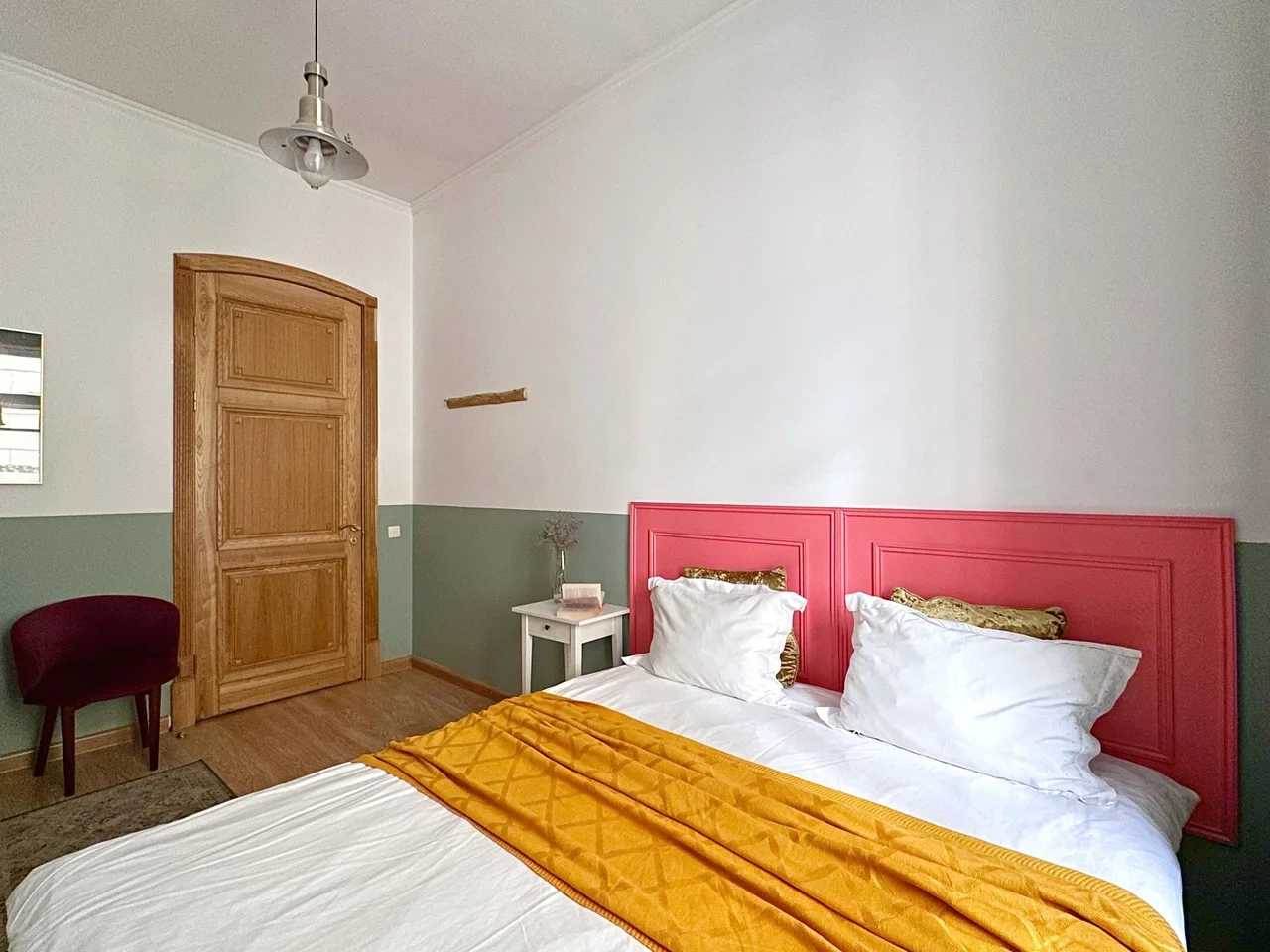 Уютный номер отличается воздушным дизайном и функциональностью. В номере есть двуспальная кровать, стол, стул, кровать. Номер оборудован зеркалом и вешалкой с плечиками для одежды. Освещение включает: основной свет и настольную лампу. Гостям предоставляется бесплатный WI-FI, тапочки, постельное белье и полотенца. Душ и туалет в общем доступе.