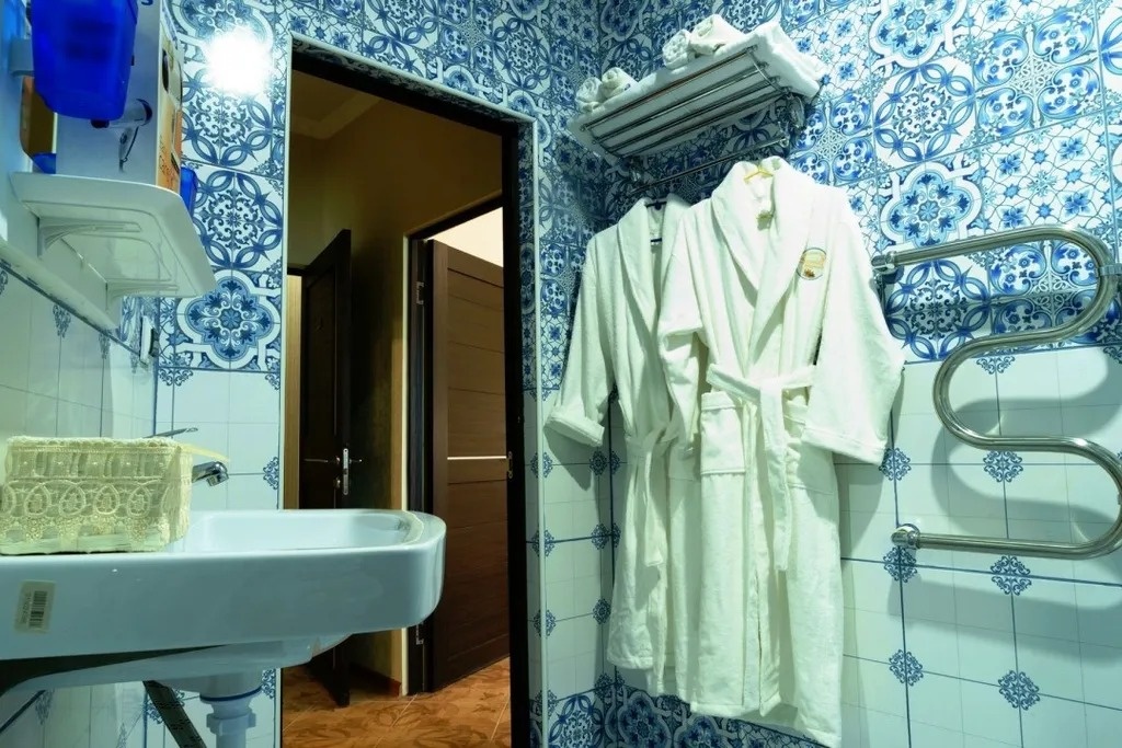 В номере нет даже чайника, мебель уставшая, звукоизоляции никакой, в ванной воняет мочой и грязная плитка, слив нужно заливать средством, научите горничных убираться! Халаты и полотенца в пятнах.