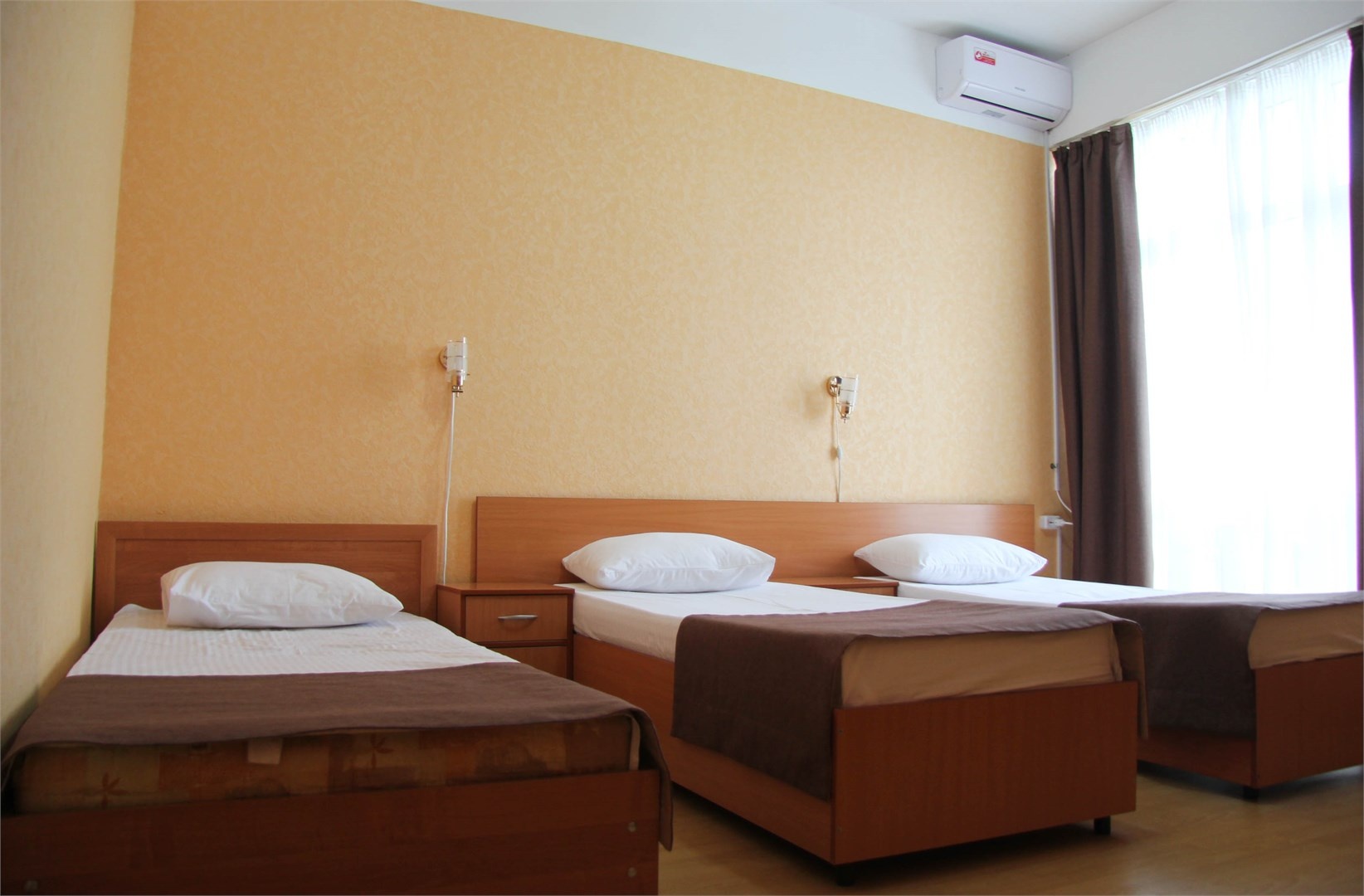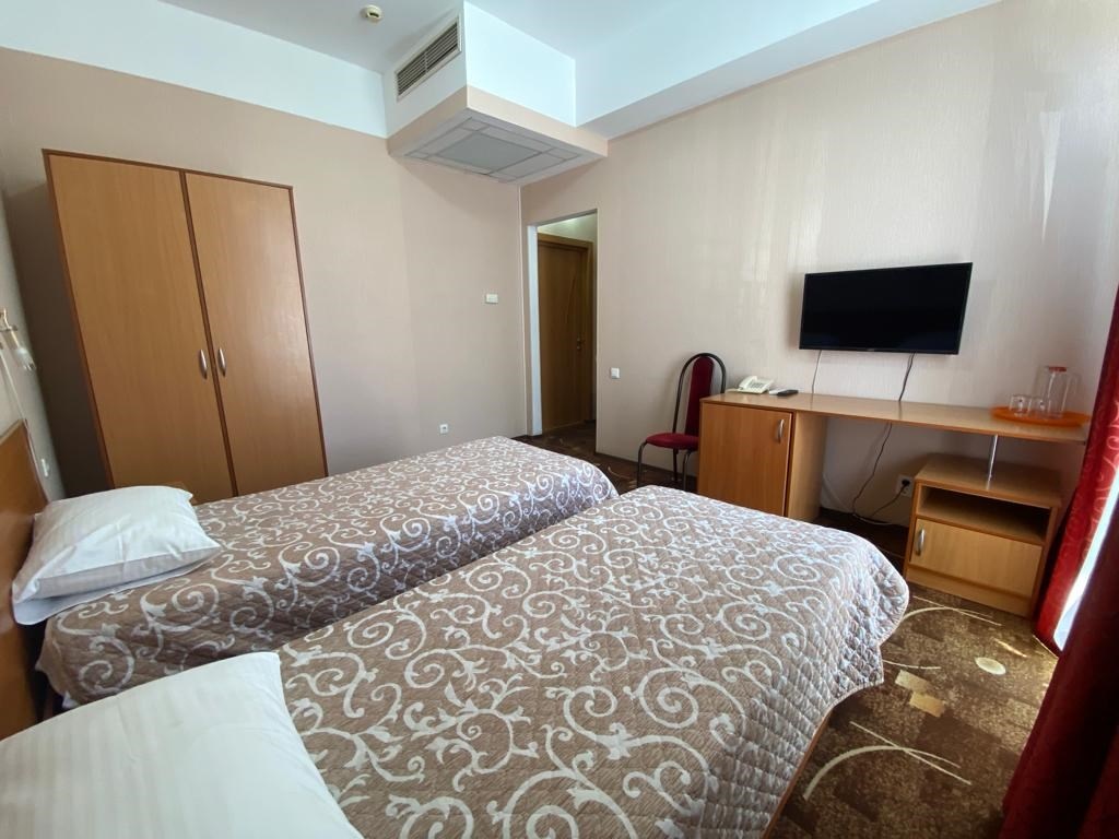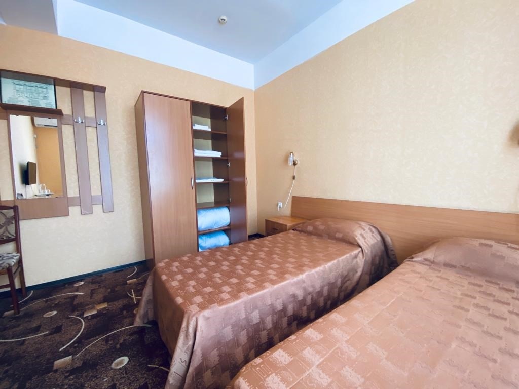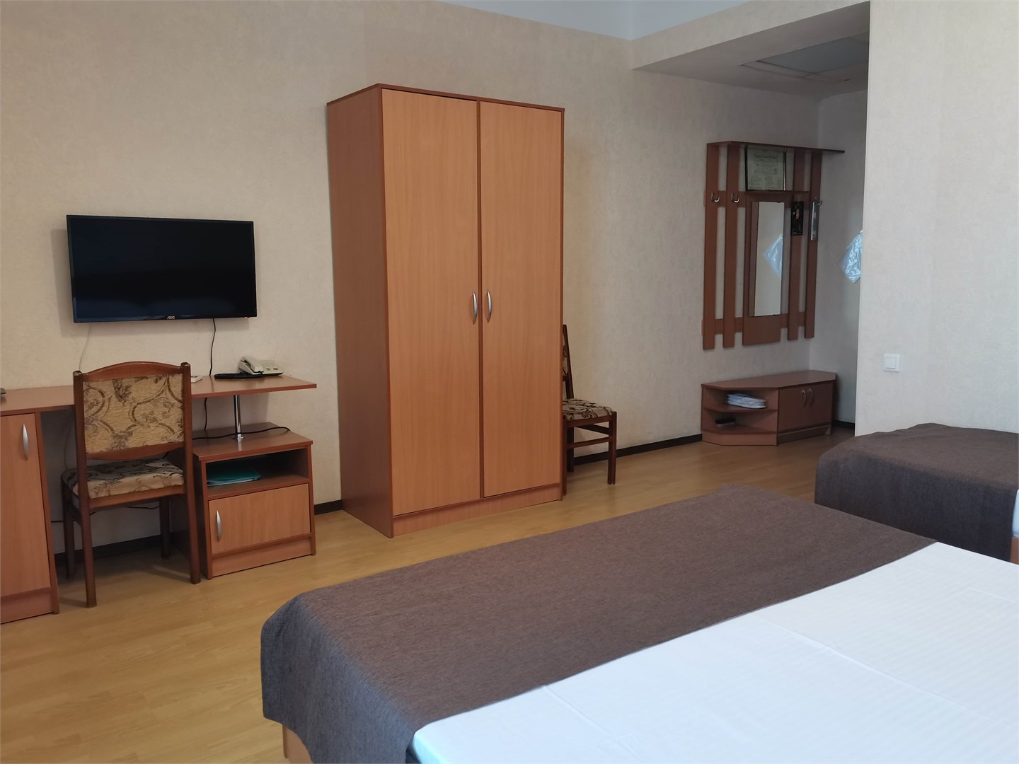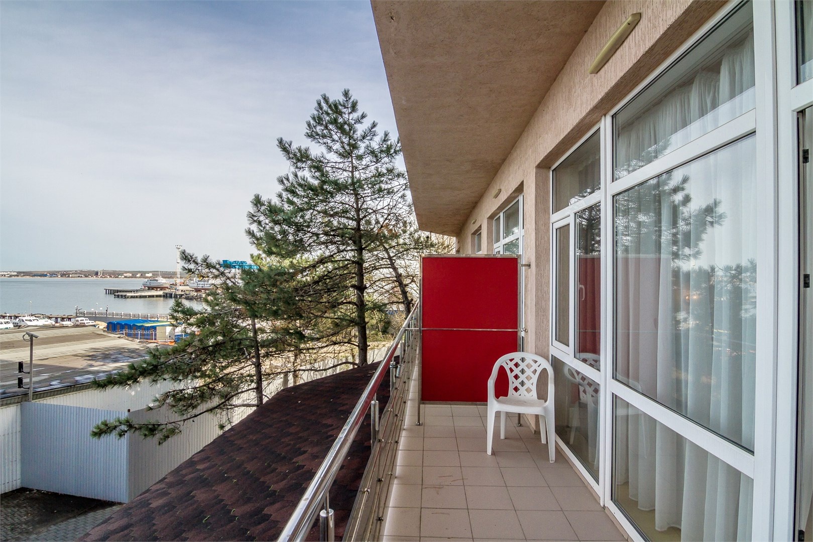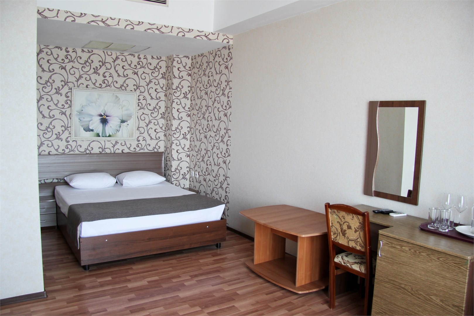 Двухместный номер с видом на море. Отдыхали в августе 2023г. Номер просторный, огромное окно и терраса с мебелью. Отель не новый, но косметический ремонт свежий, матрас удобный, что очень порадовало. Белье белоснежное, сплит, телевизор, посуда для чая, чайник, интернет- все работало. Кулер с водой, гладильная доска с утюгом на этаже. Персонал вежлив. В общем мы остались всем довольны. Рядом много кафе и набережная близко.