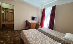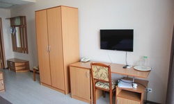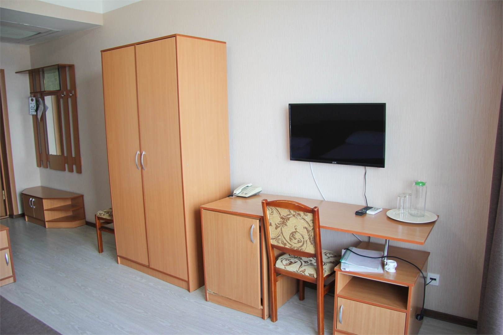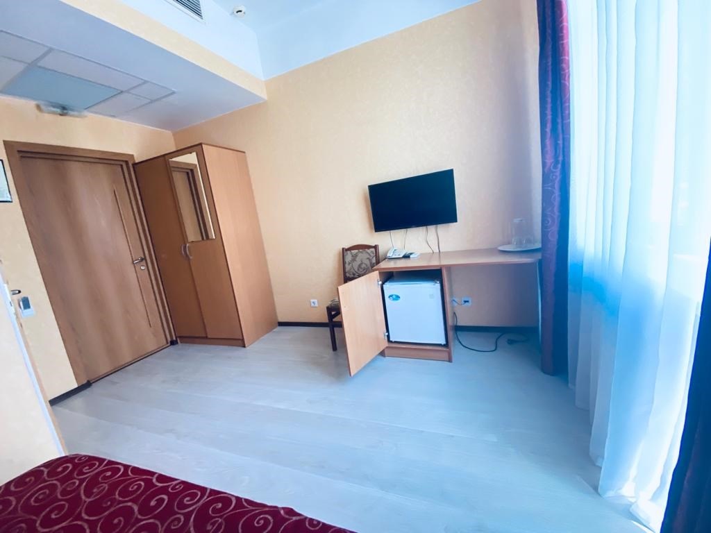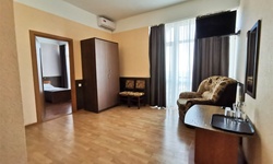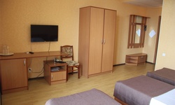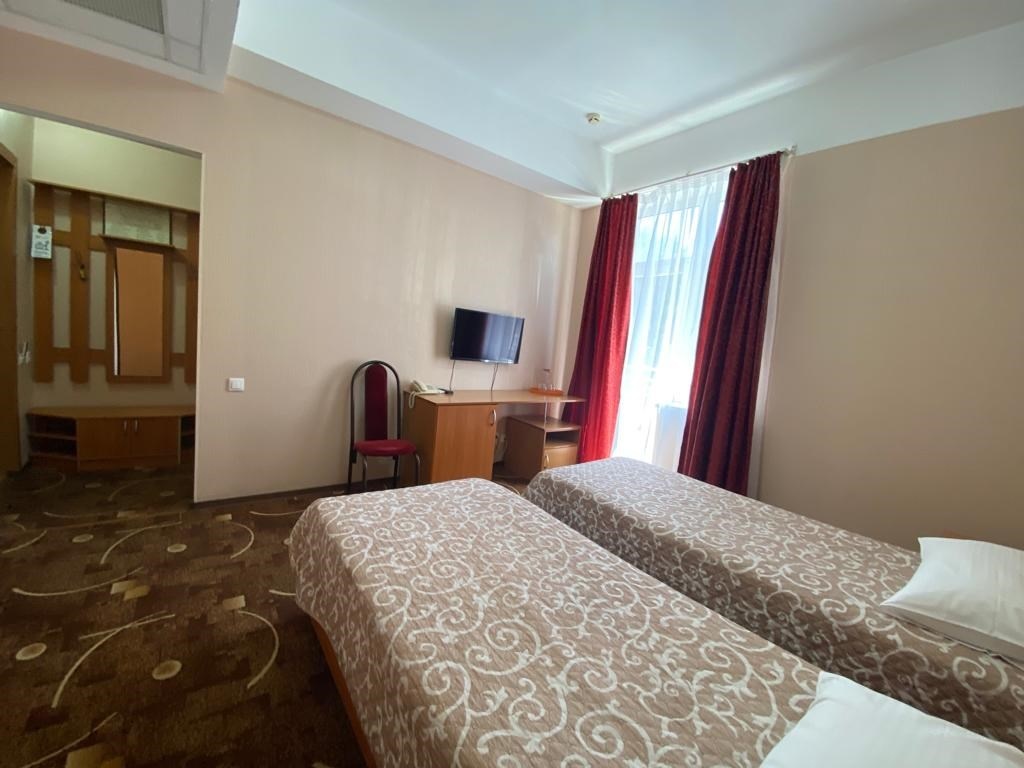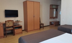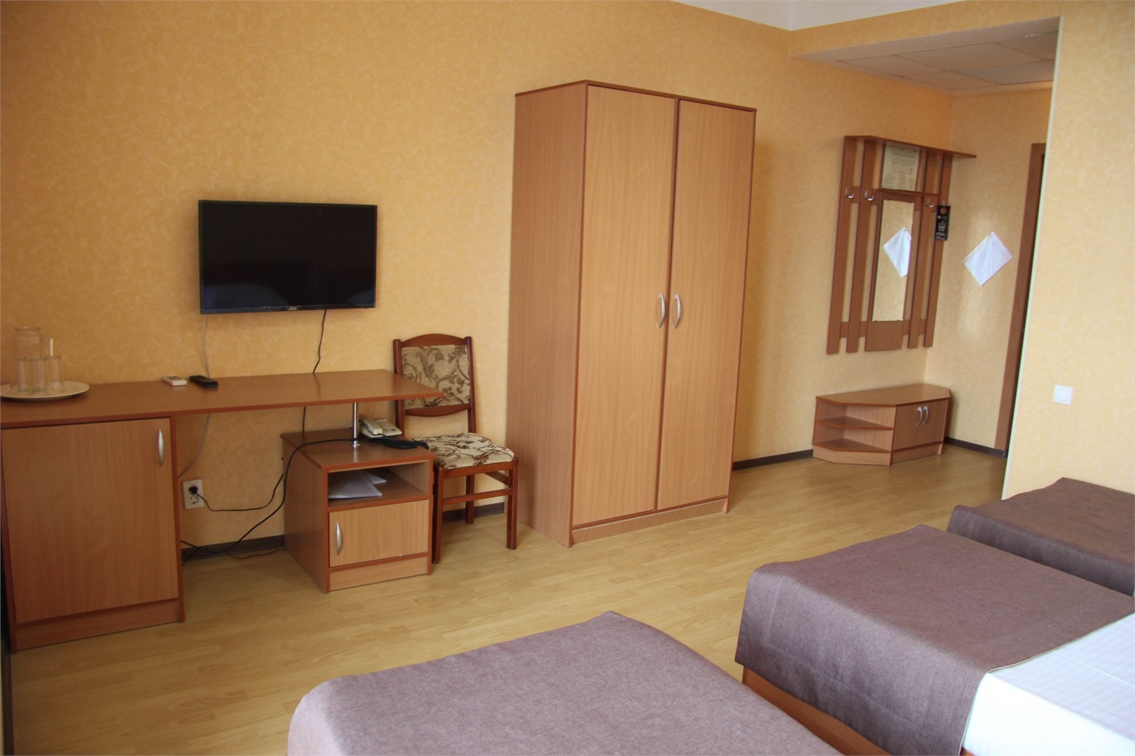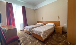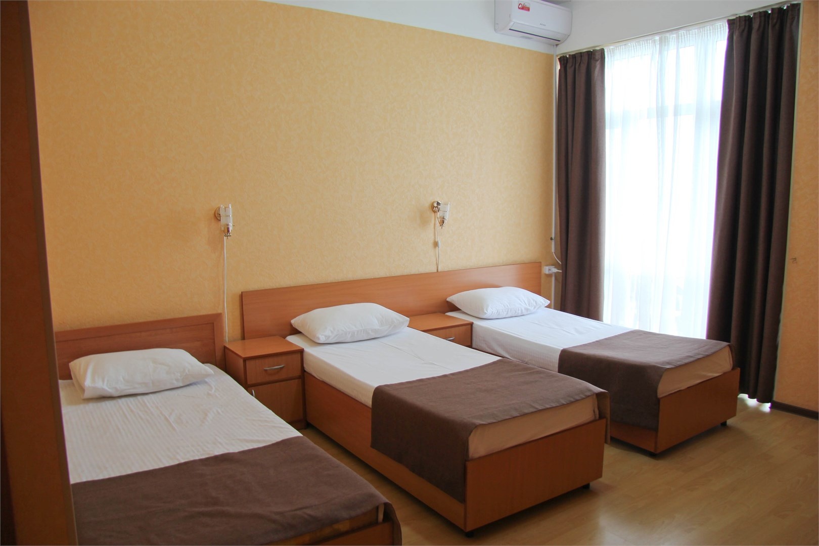 Двухместный номер с видом на море. Отдыхали в августе 2023г. Номер просторный, огромное окно и терраса с мебелью. Отель не новый, но косметический ремонт свежий, матрас удобный, что очень порадовало. Белье белоснежное, сплит, телевизор, посуда для чая, чайник, интернет- все работало. Кулер с водой, гладильная доска с утюгом на этаже. Персонал вежлив. В общем мы остались всем довольны. Рядом много кафе и набережная близко.