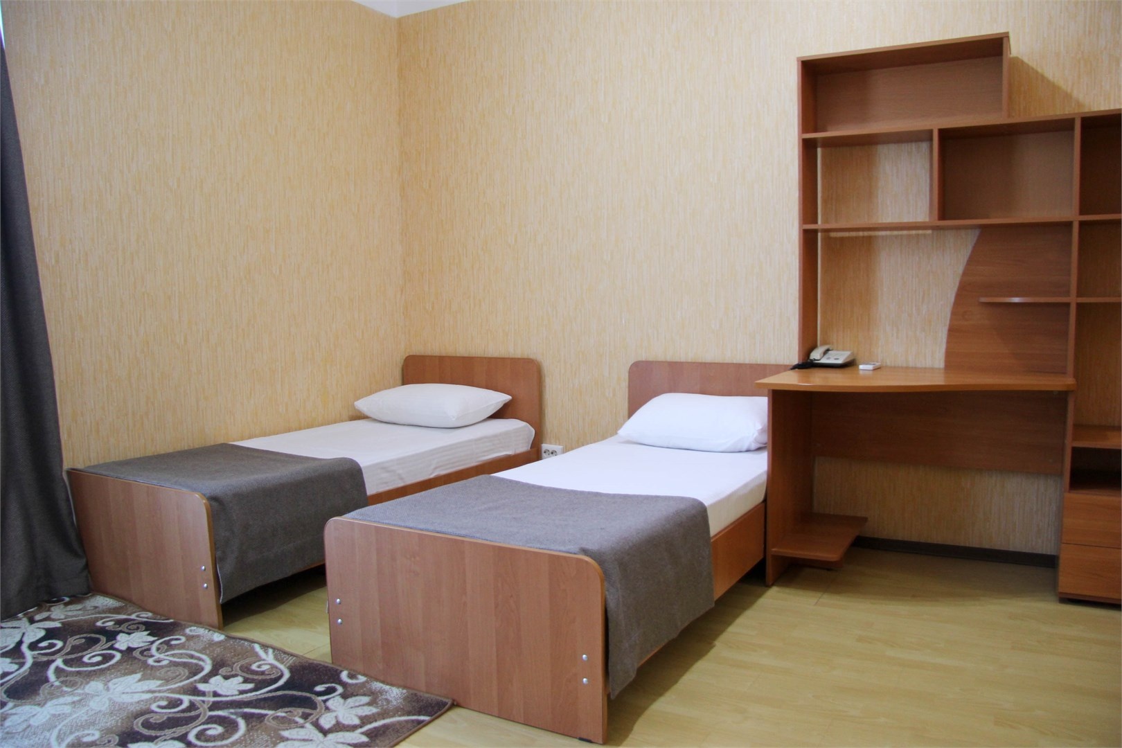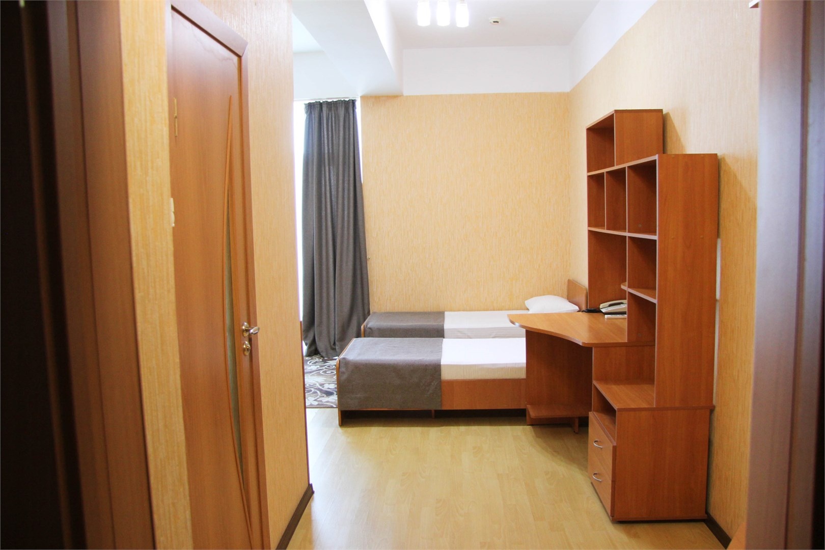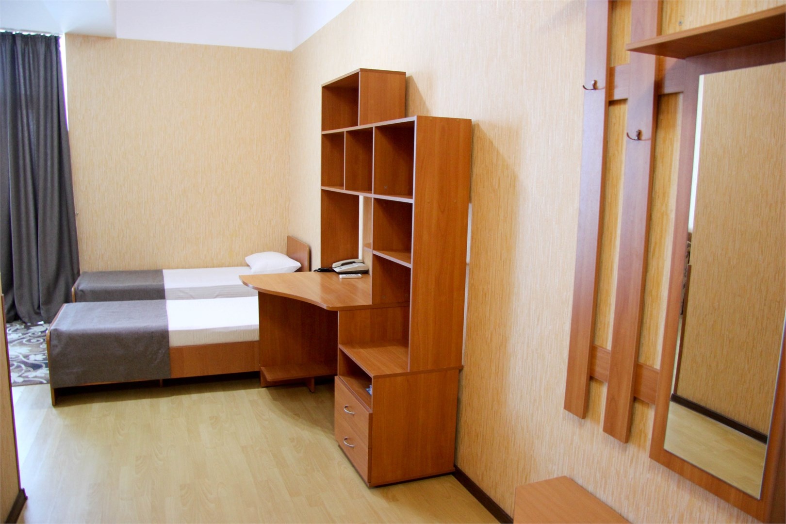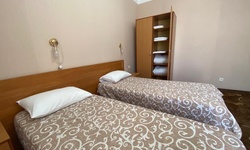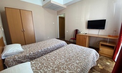 Вместо номера с одной кроватью нам предоставили номер с двумя. В номере мебель - из далекого советского командировочного прошлого (может это и плюс?:-) Простыни узкие, матрац в старых пятнах крови, пододеяльники надевали сами, один оказался драным. Завтрак был предложен в пластиковых контейнерах, кофе отвратительный. Из стока раковины для умывания убрана решетка, несет канализацией, сток в душе заструднен, в чаше скапливается вода.