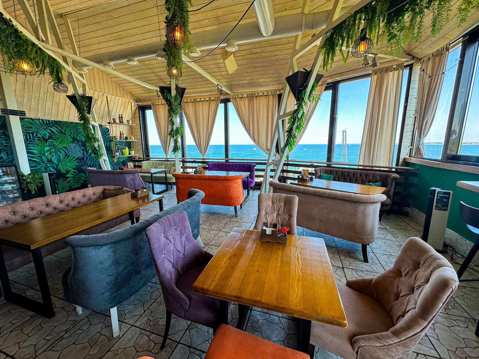 Расположение отличное,ю первая линия, рядом кафе, столовые по-близости, море, парк