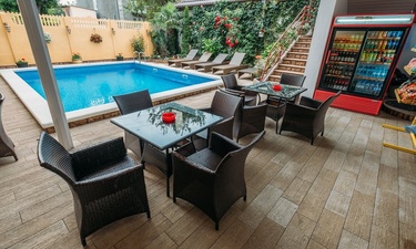 Хороший но не большой бассейн, территория ухожена но двор маленький( впрочем места всем хватоло)
