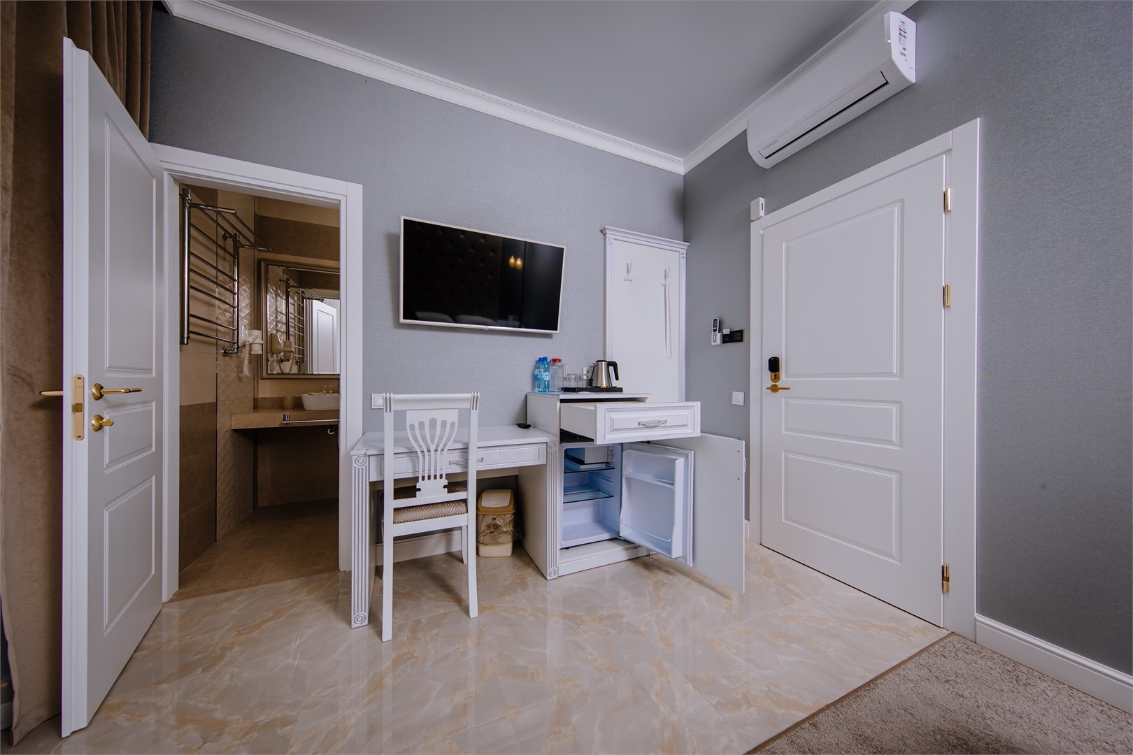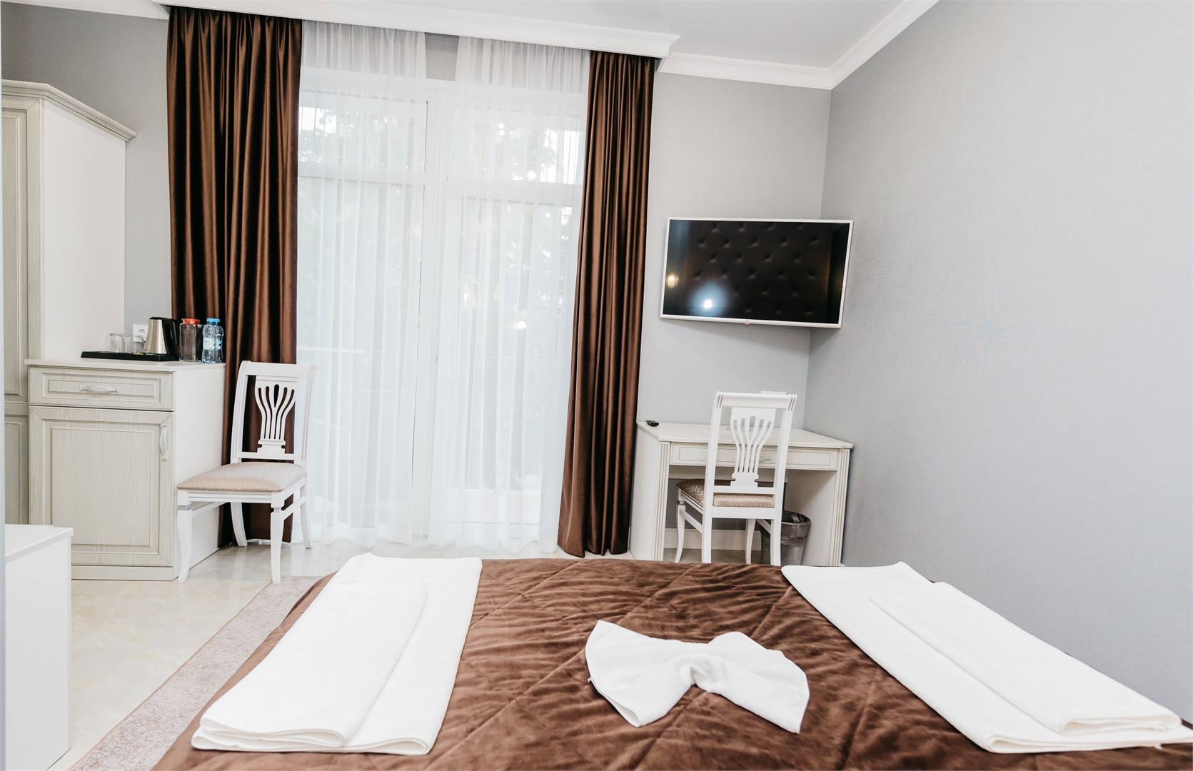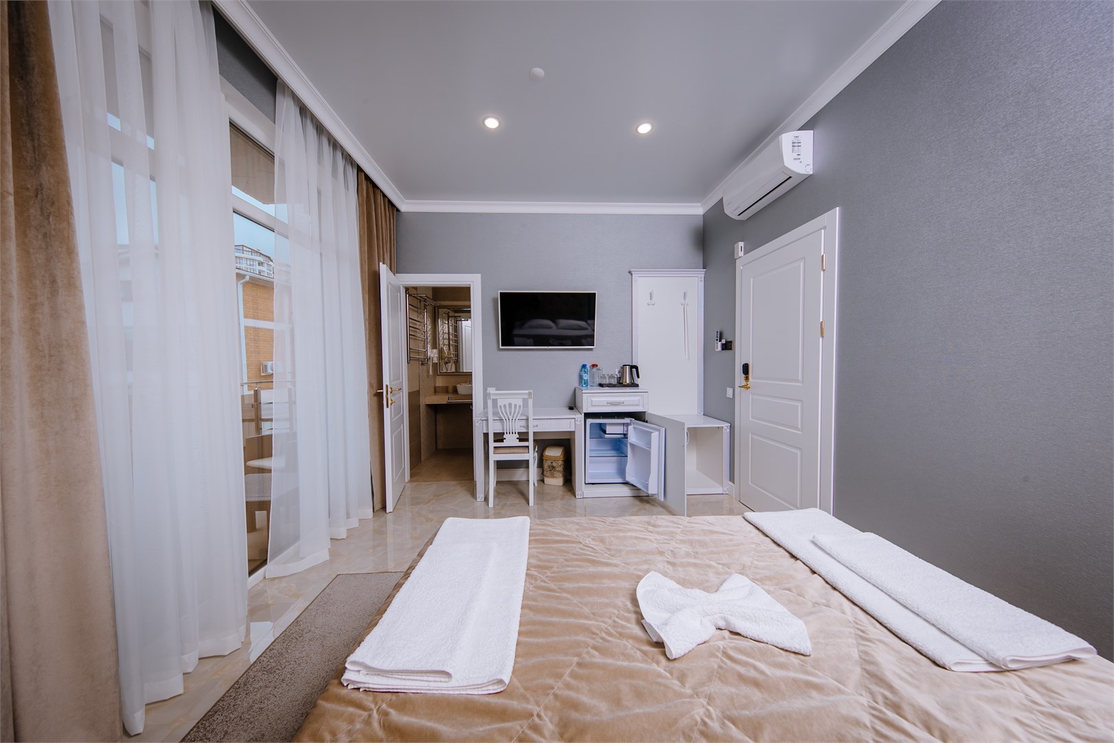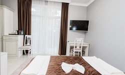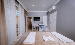 В распоряжении отдыхающих комфортабельные двухместные номера, оснащенные современной мебелью и техникой, индивидуальной душевой, бесплатным интернетом и кондиционером.