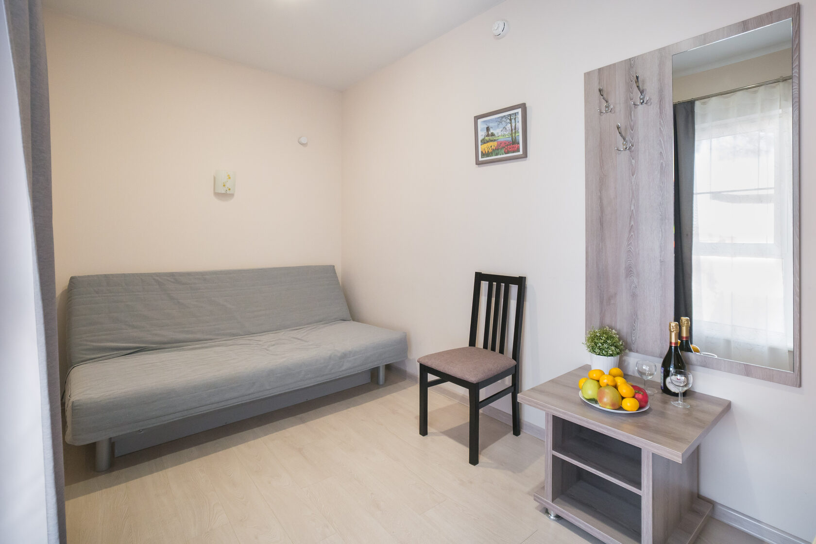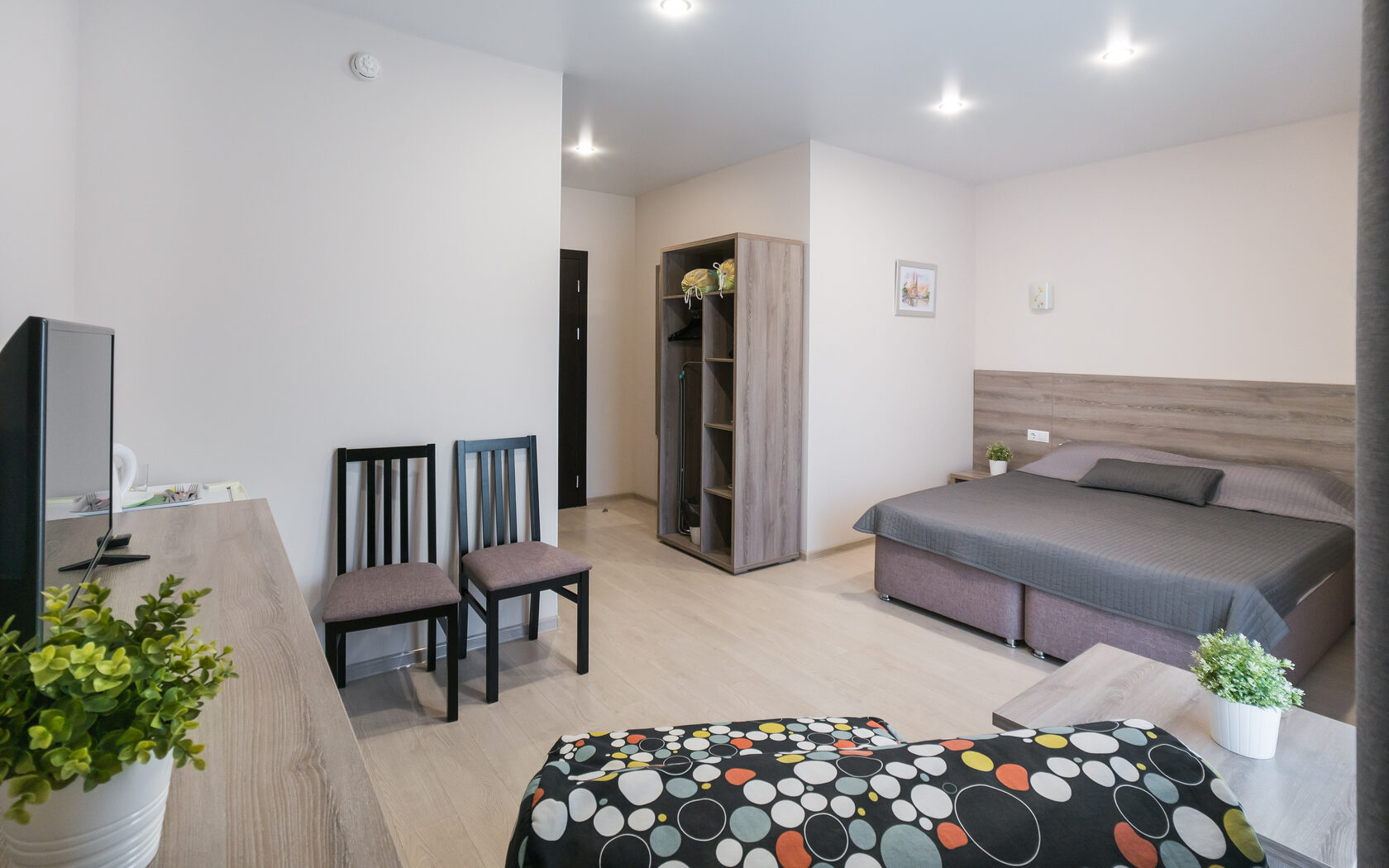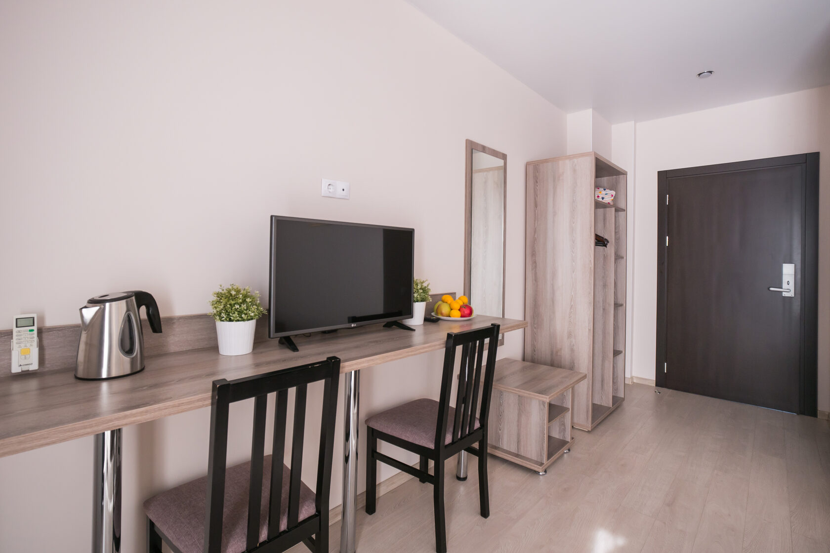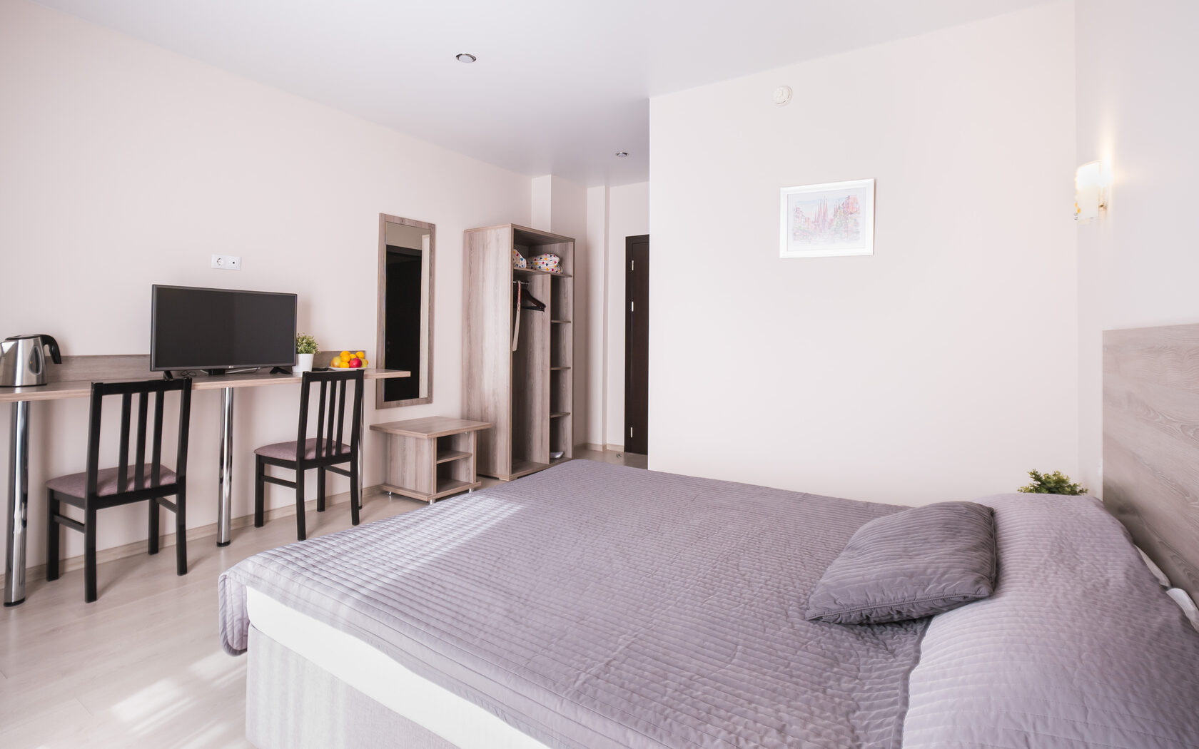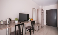 Очень чистенький отель. В номере всё есть, включая фен, посуду, чайник. Хороший матрас - выспались. Из минусов: в душе нет полочки для принадлежностей, одна розетка на чайник и холодильник. Включили чайник и потом забыли включить холодильник, увидели только утром - молочка скисла(( Нужен тройник.