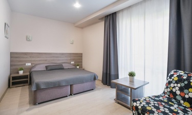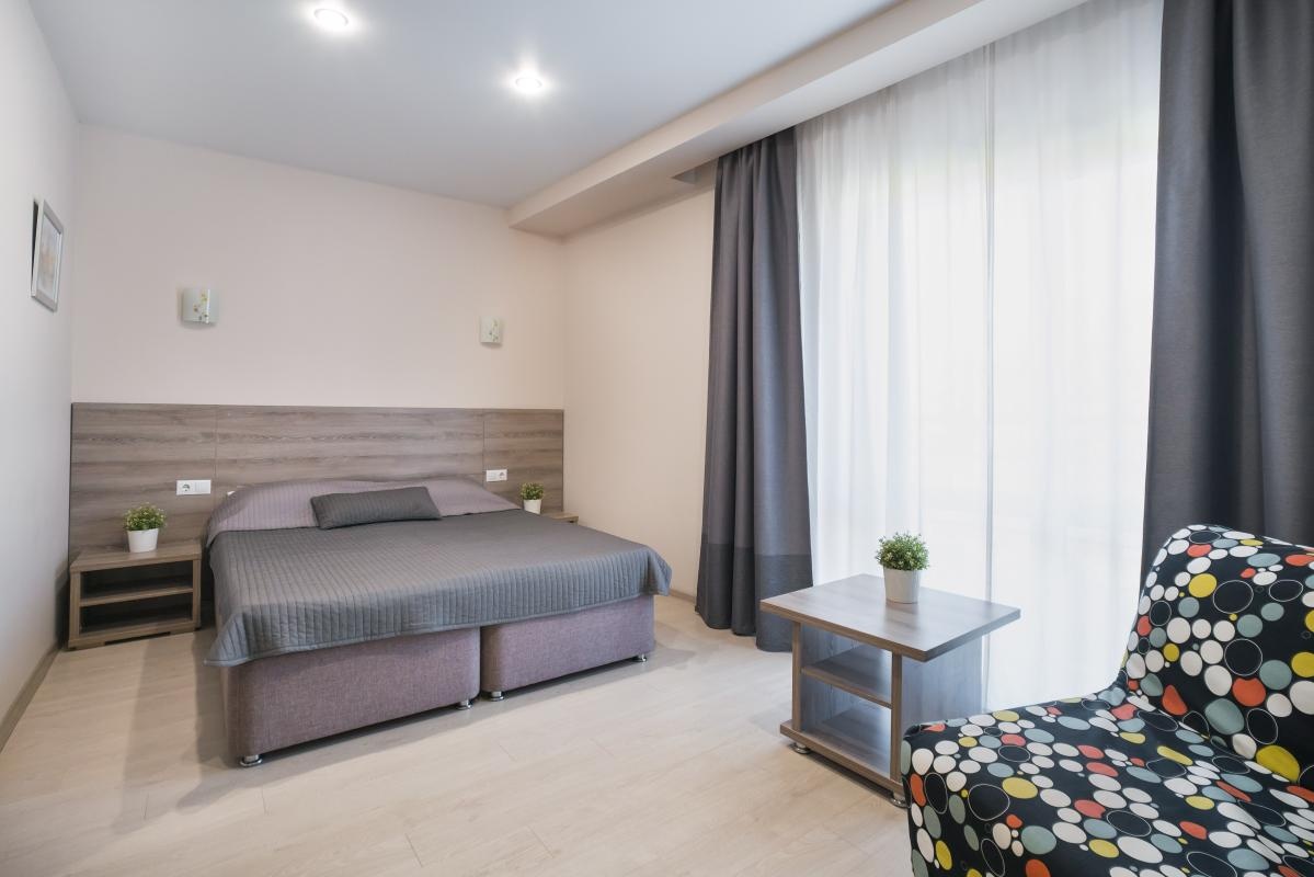 Номер отличный, есть все возможные удобства, хорошая звукоизоляция(а это важно, так как под окнами оживленная улица, где постоянно с басами машины курсируют). До моря, кафе, магазинов аптек от 2х до 5 минут пешком. Безопасность с ключом картой от калитки и номера, камеры в холлах. Очень внимательная, улыбчивая и вежливая администратор.