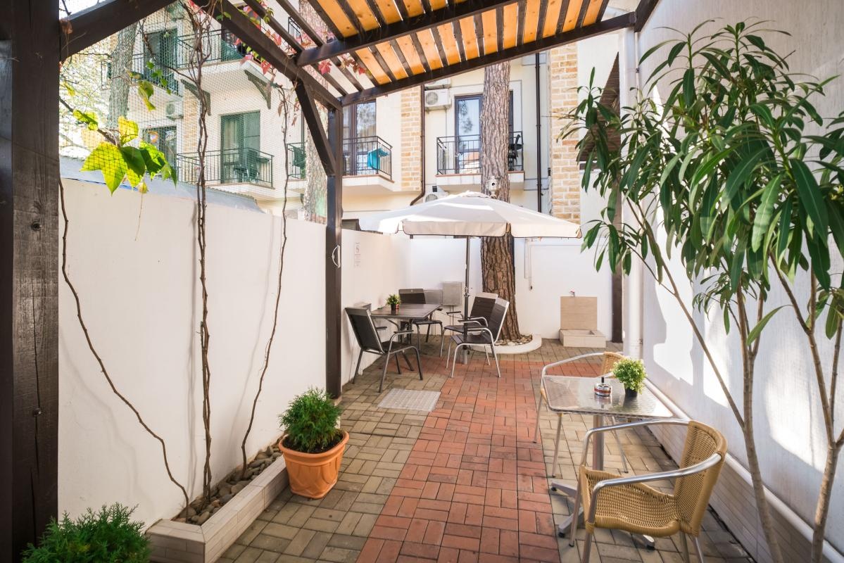Расположение гостиницы очень удачное, до моря и набережной идти 3-4 минуты. Кафе/рестораны, магазины в пешей доступности. До центрального рынка идти минут 15-20, до автовокзала минут 25.