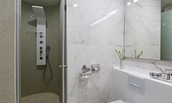 Большая душевая - отдельная любовь. Кстати, вода сразу горячая, ждать, пока нагреется, не нужно.