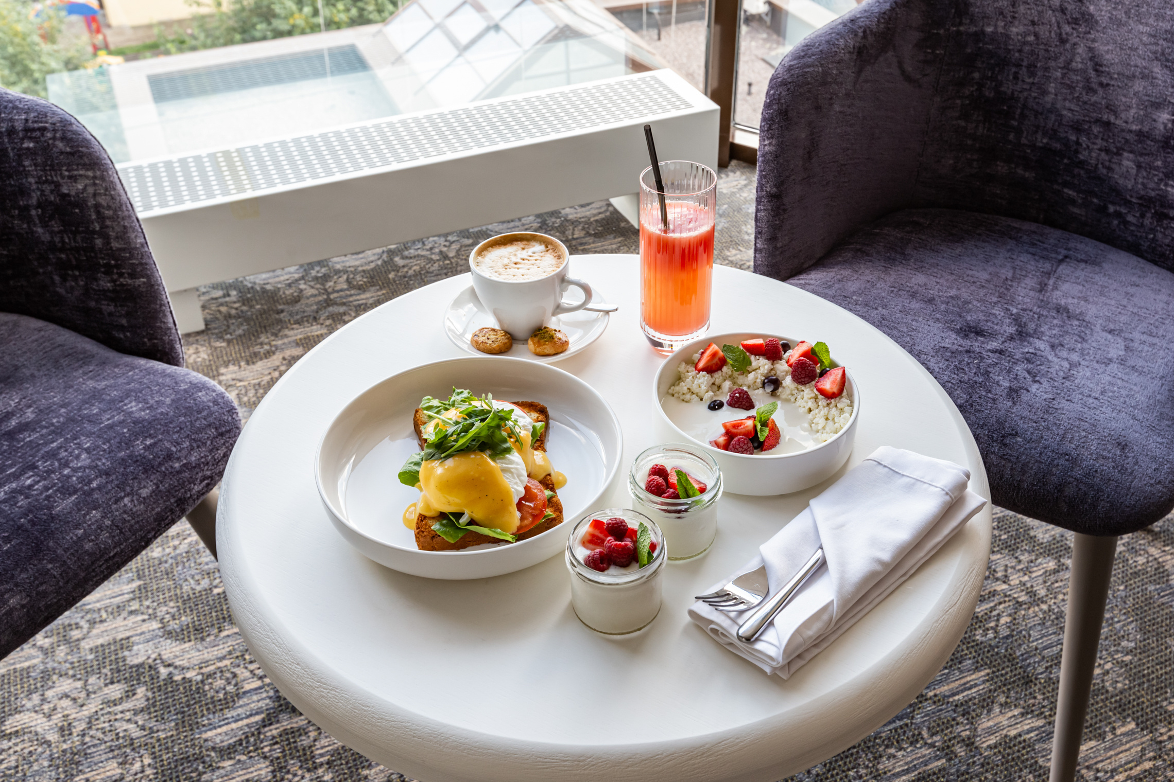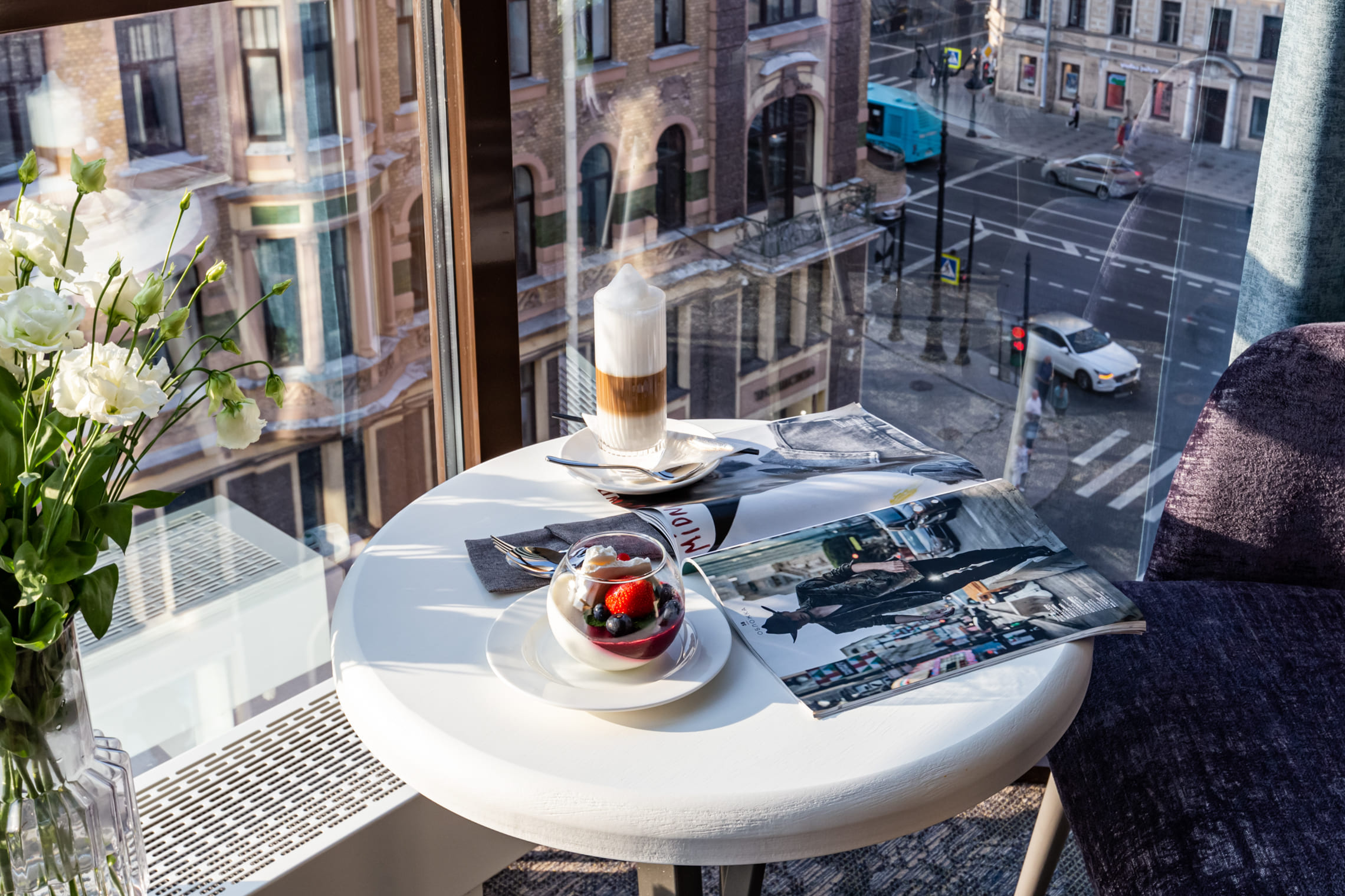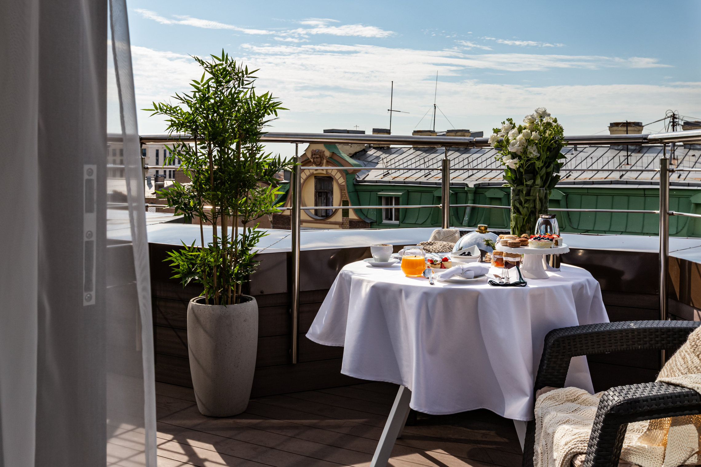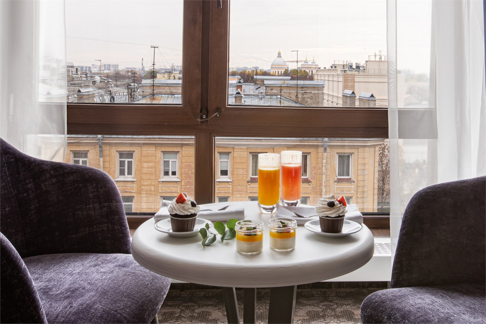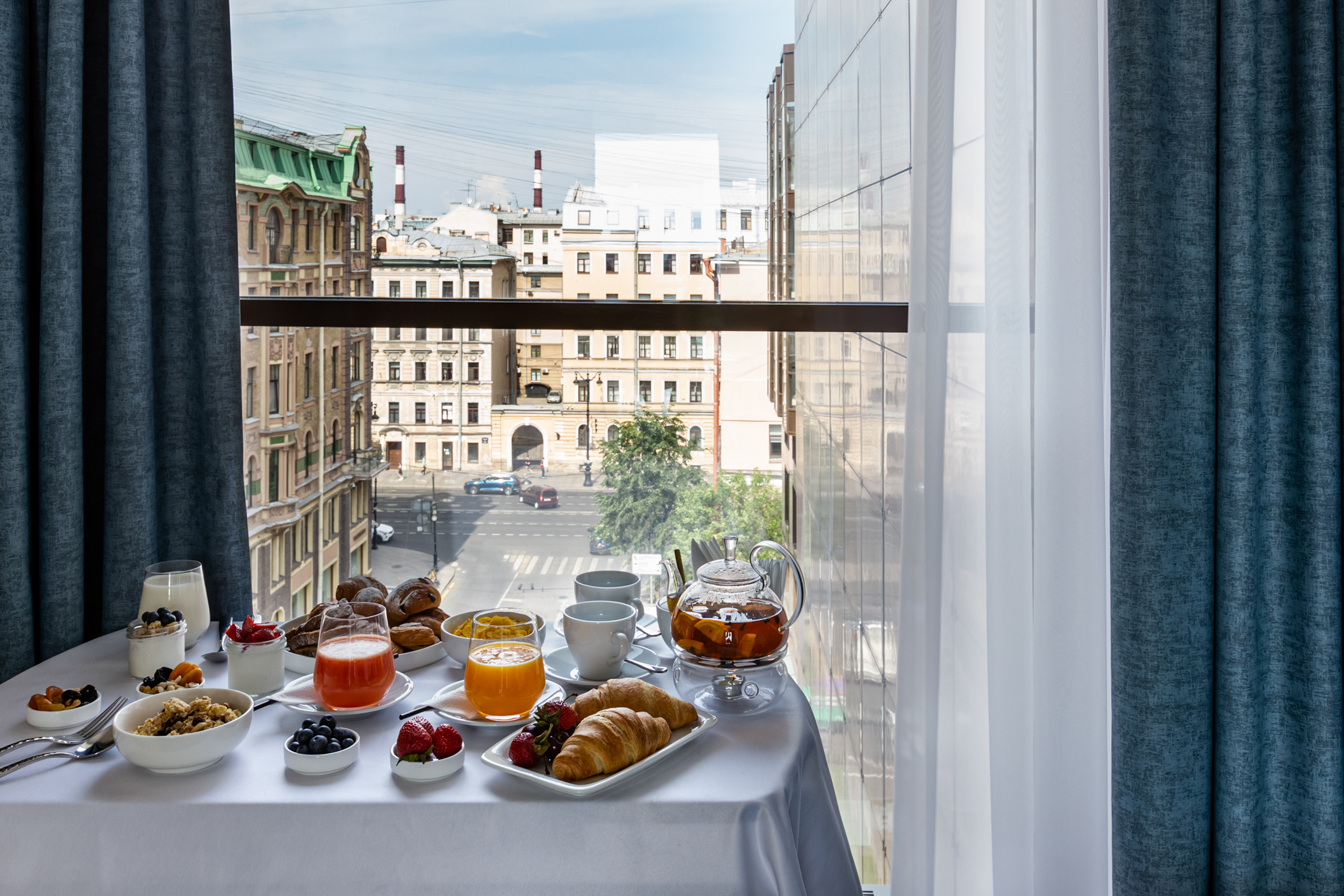 Ежедневно в ресторане отеля проходят завтраки в формате «шведский стол». Также гости могут заказать завтрак в номер по меню a la carte. В выходные и праздничные дни во время завтрака гостей угощают игристым без ограничений.
