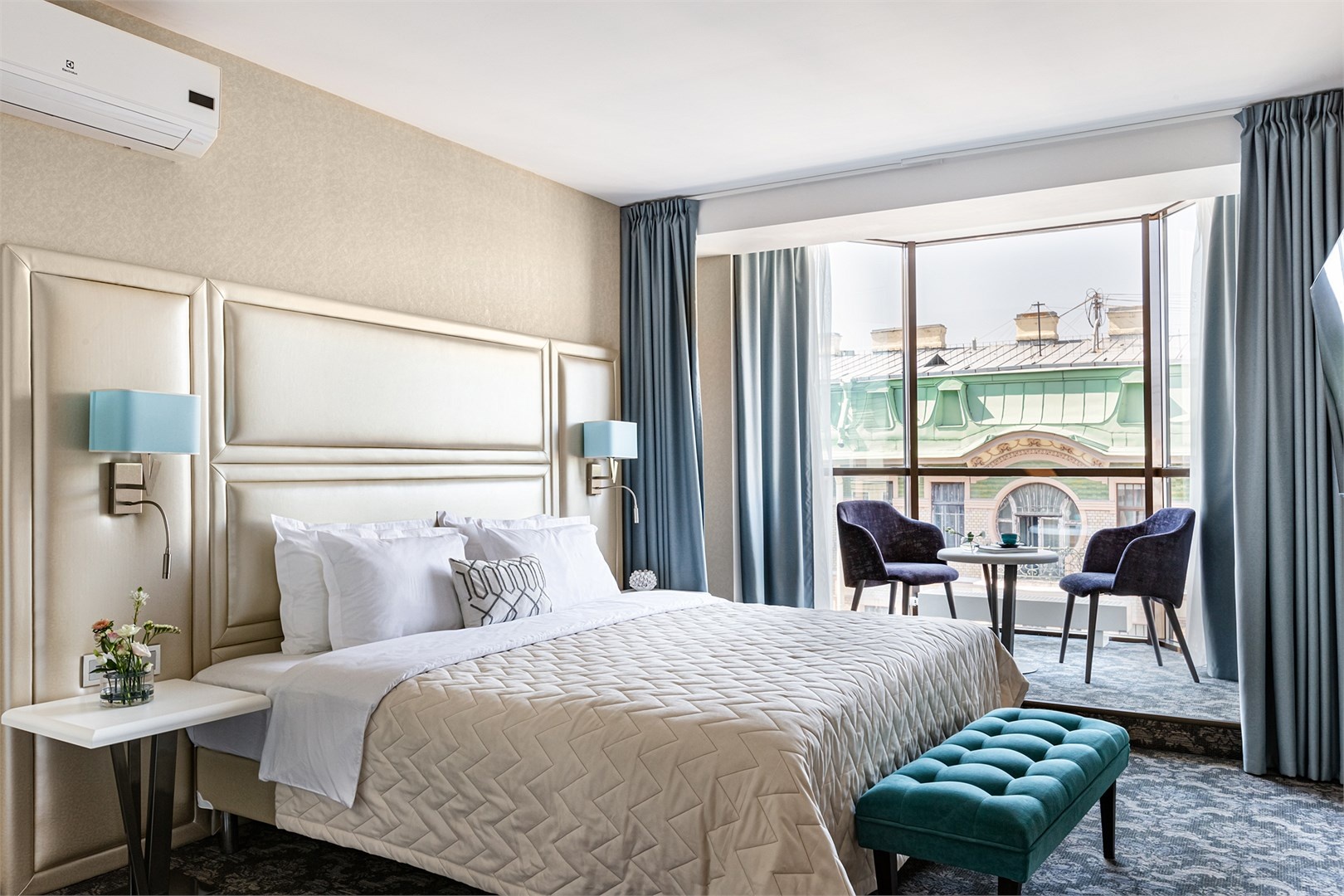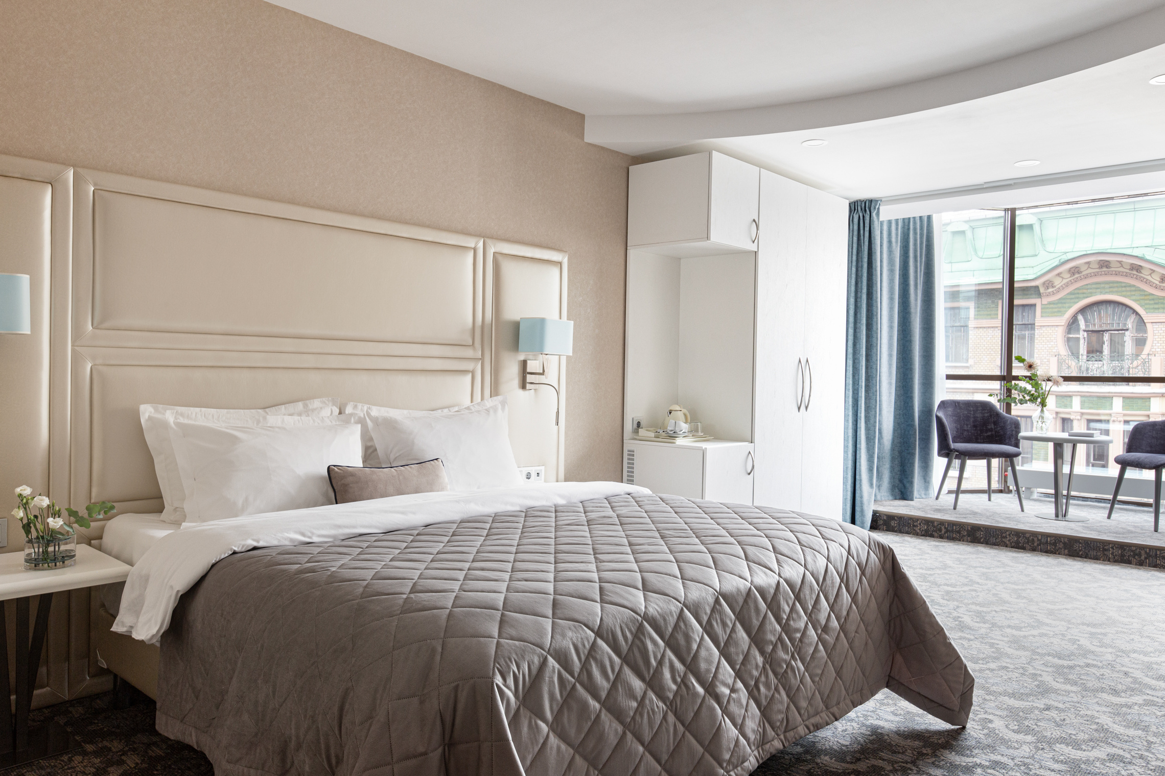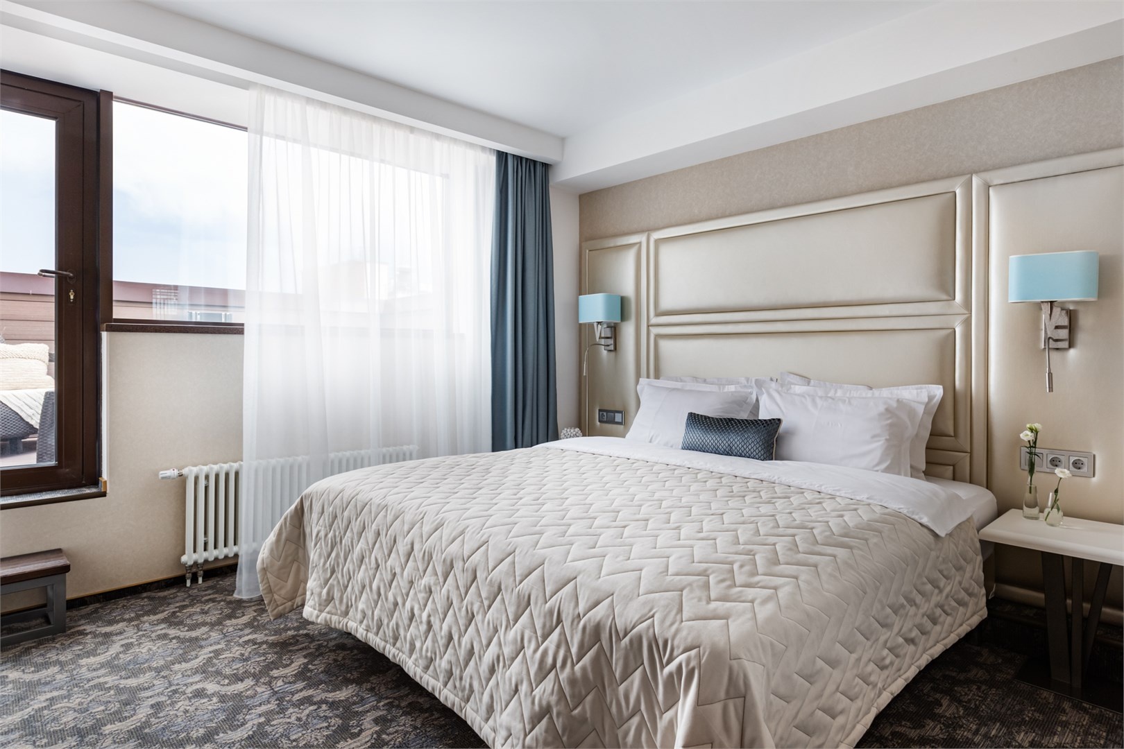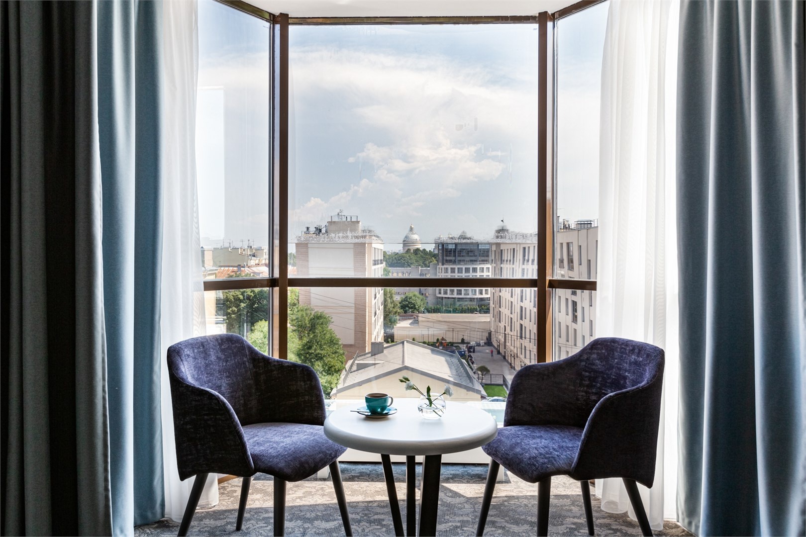 Преимущественно представлены номера с панорамным видом на город, имеются номера с эркерами и террасами, также представлены номера для гостей с ограниченными возможностями. Оснащение зависит от выбранной категории номера.