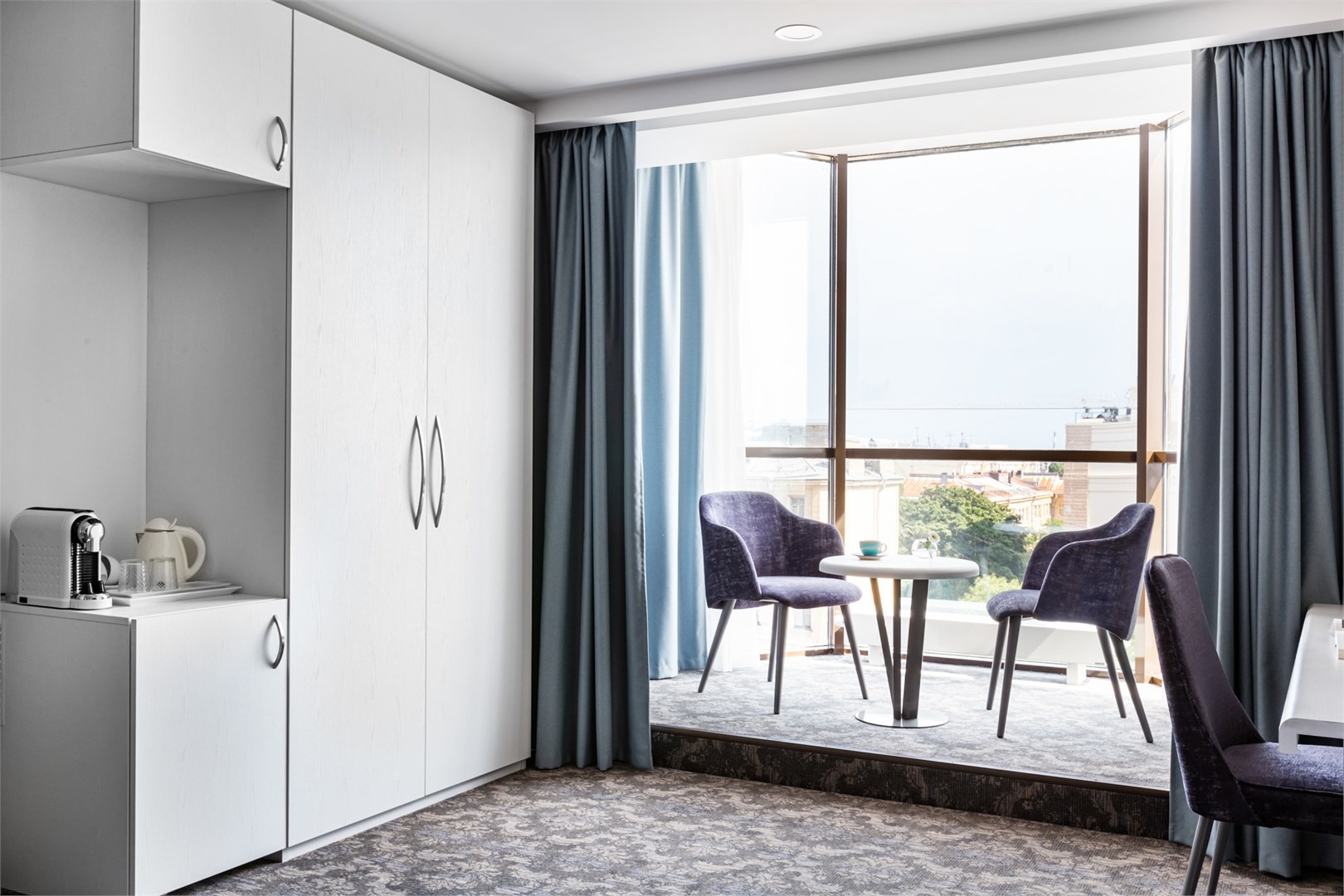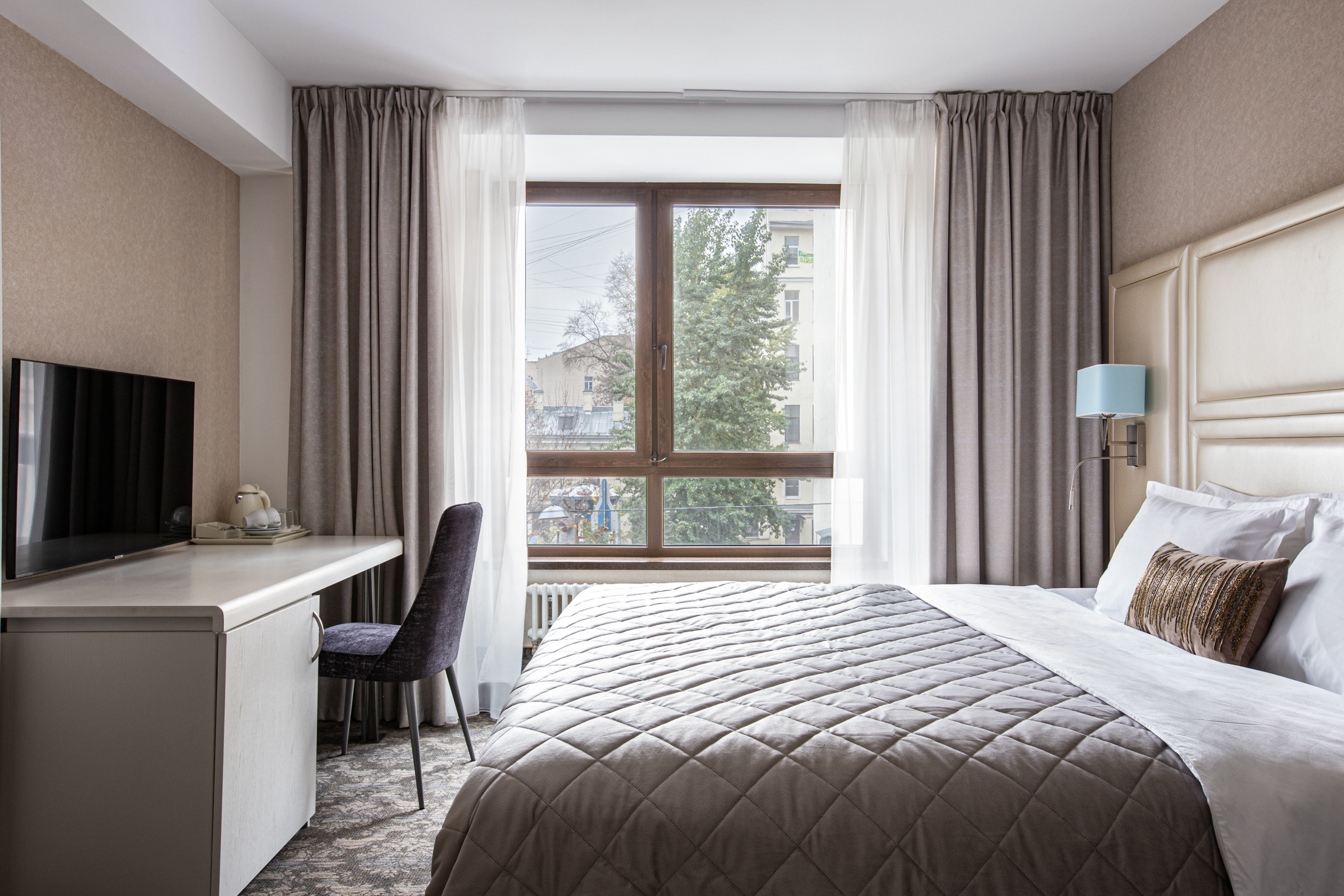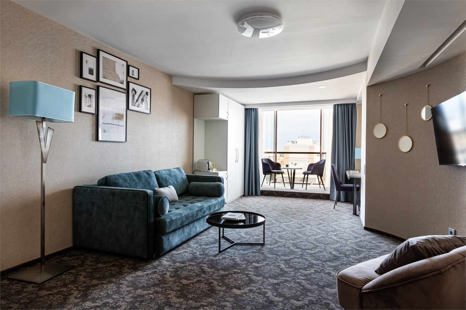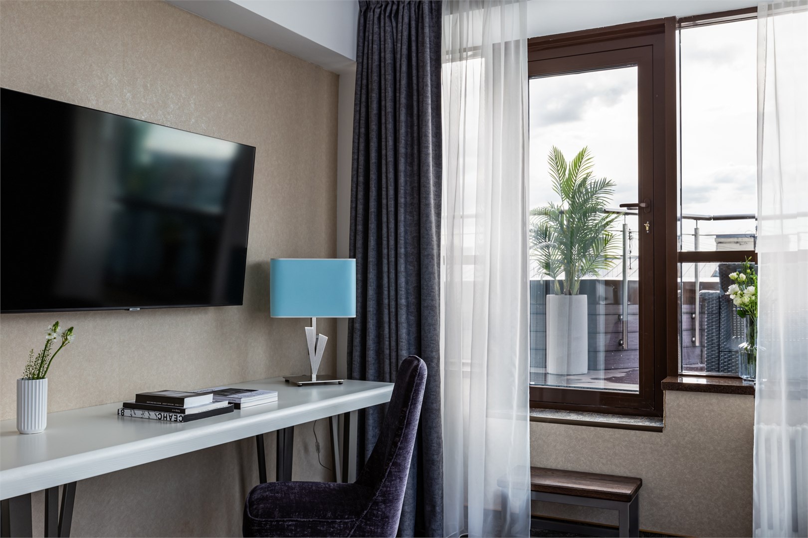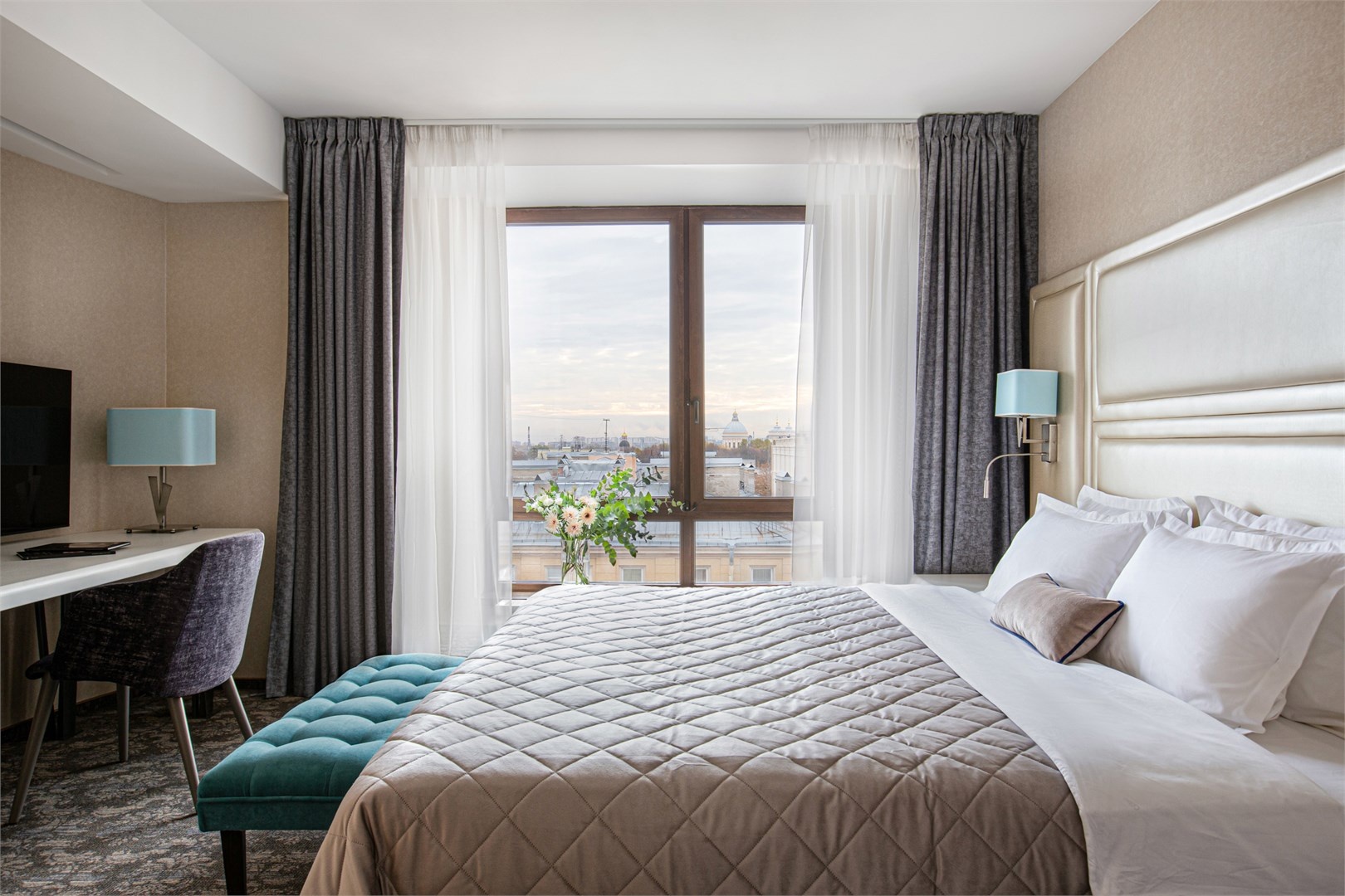 Преимущественно представлены номера с панорамным видом на город, имеются номера с эркерами и террасами, также представлены номера для гостей с ограниченными возможностями. Оснащение зависит от выбранной категории номера.