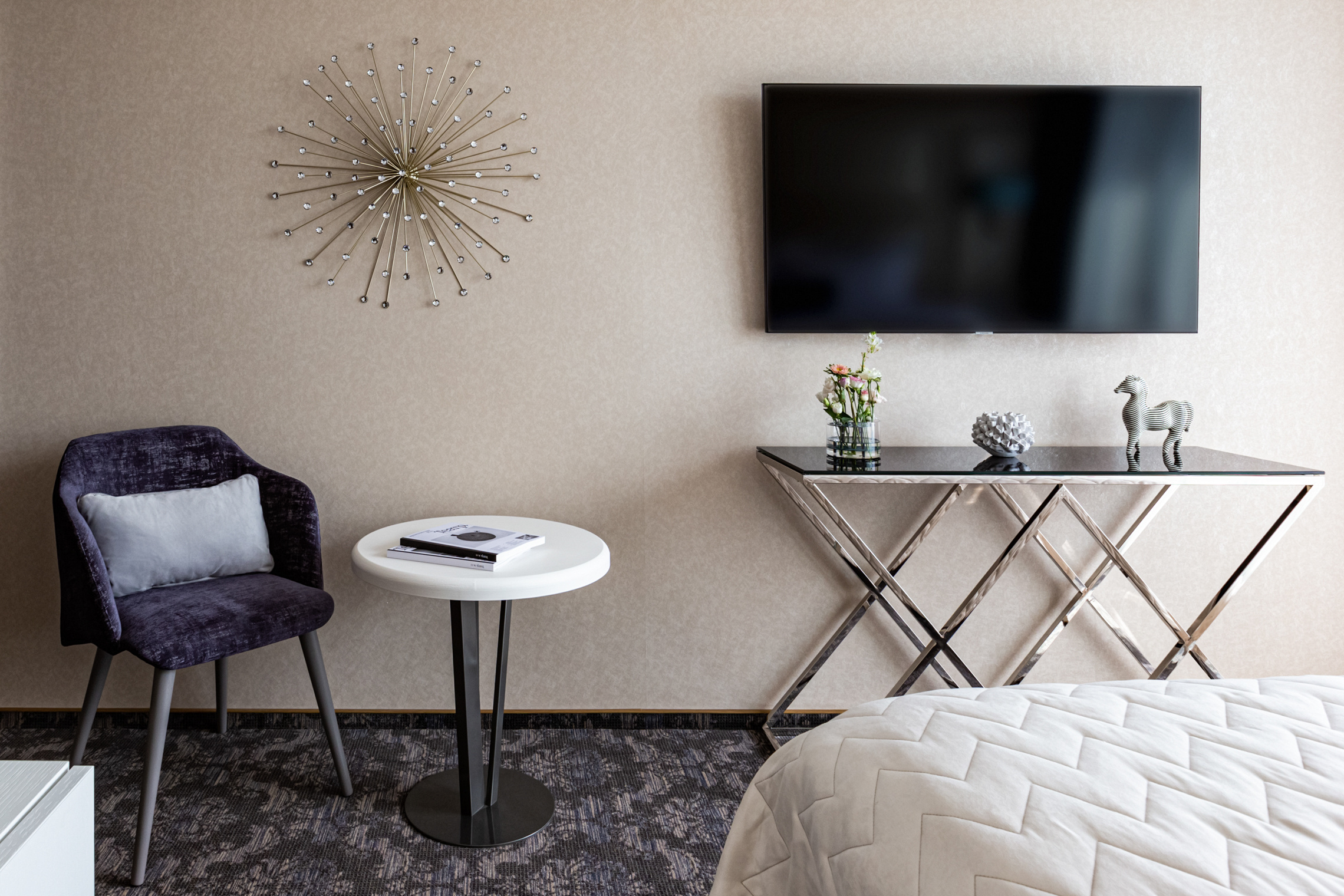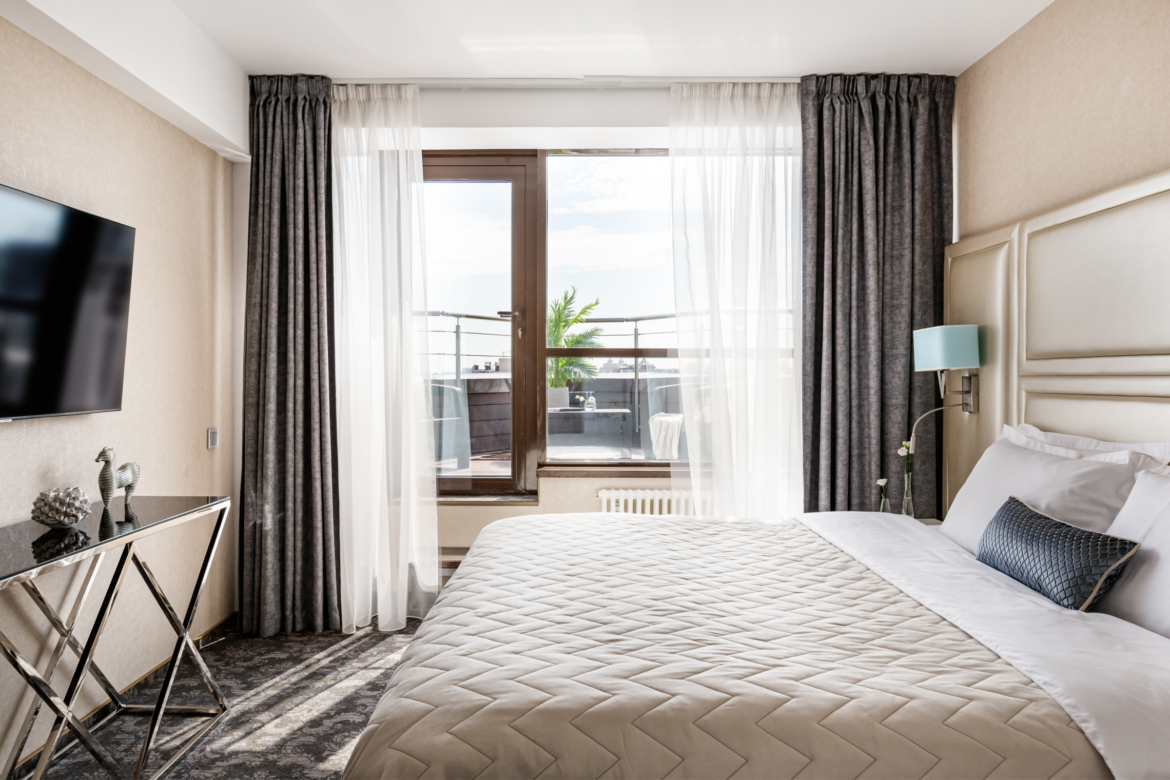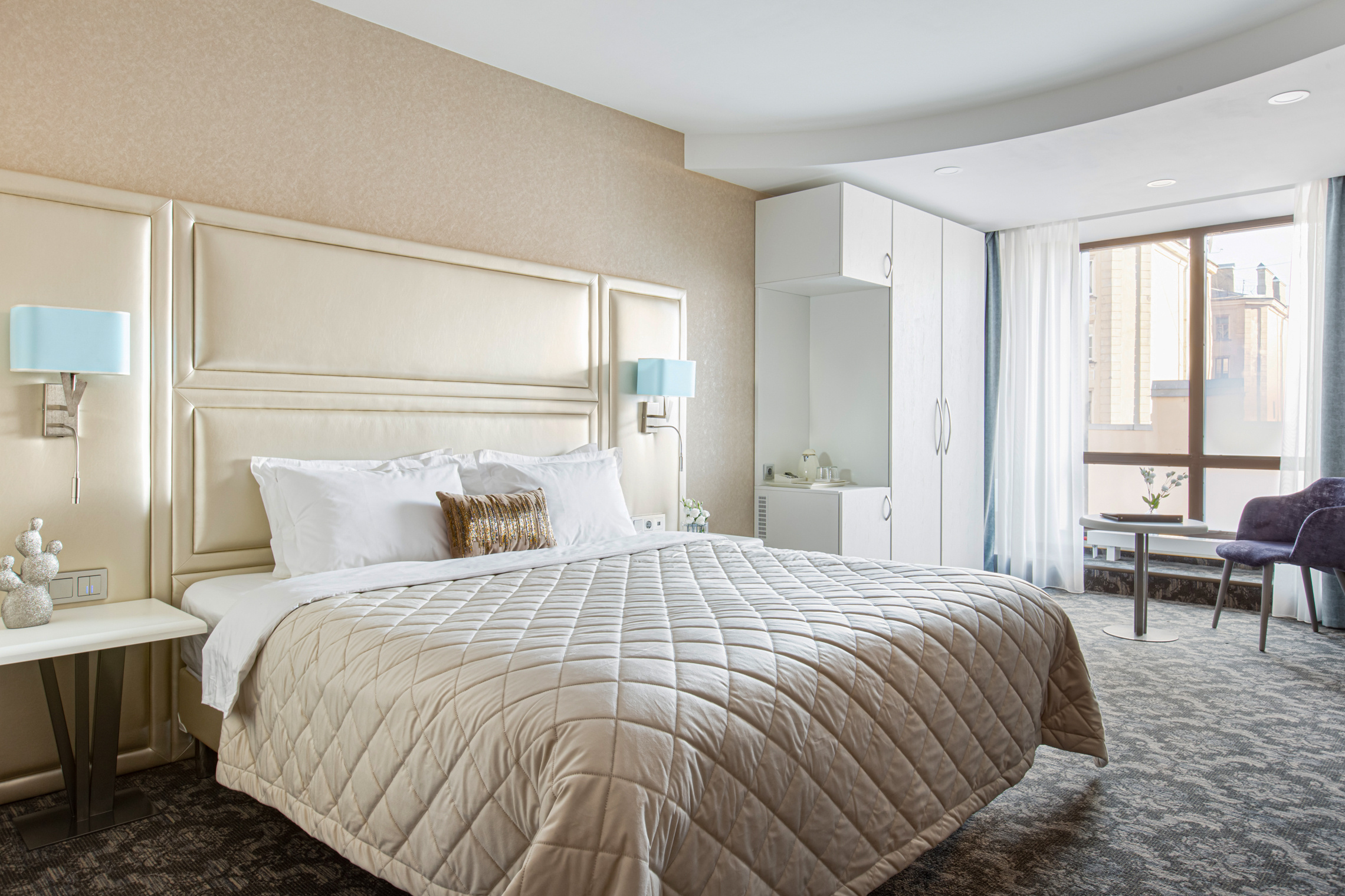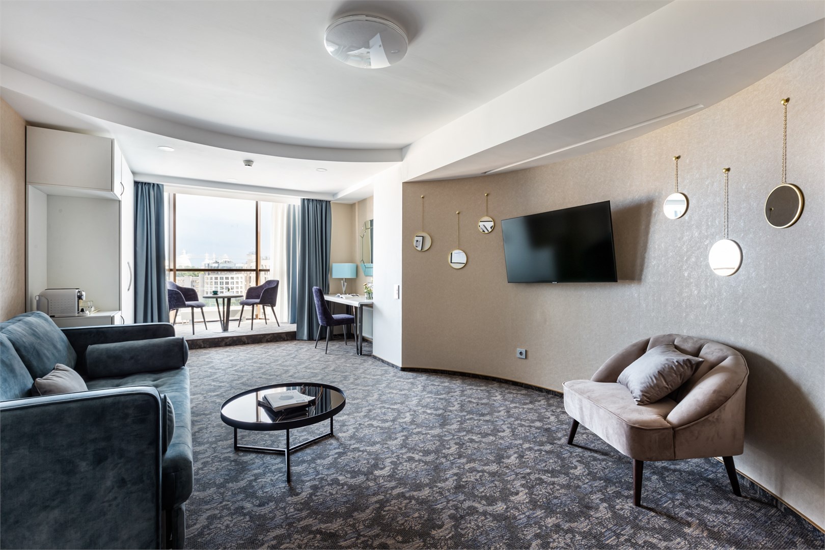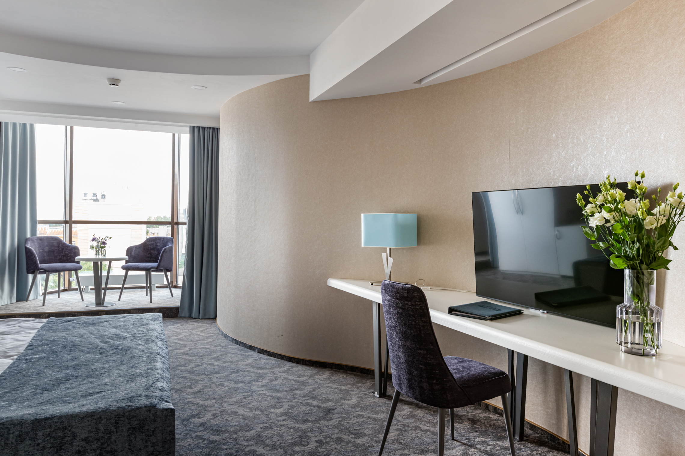 Преимущественно представлены номера с панорамным видом на город, имеются номера с эркерами и террасами, также представлены номера для гостей с ограниченными возможностями. Оснащение зависит от выбранной категории номера.