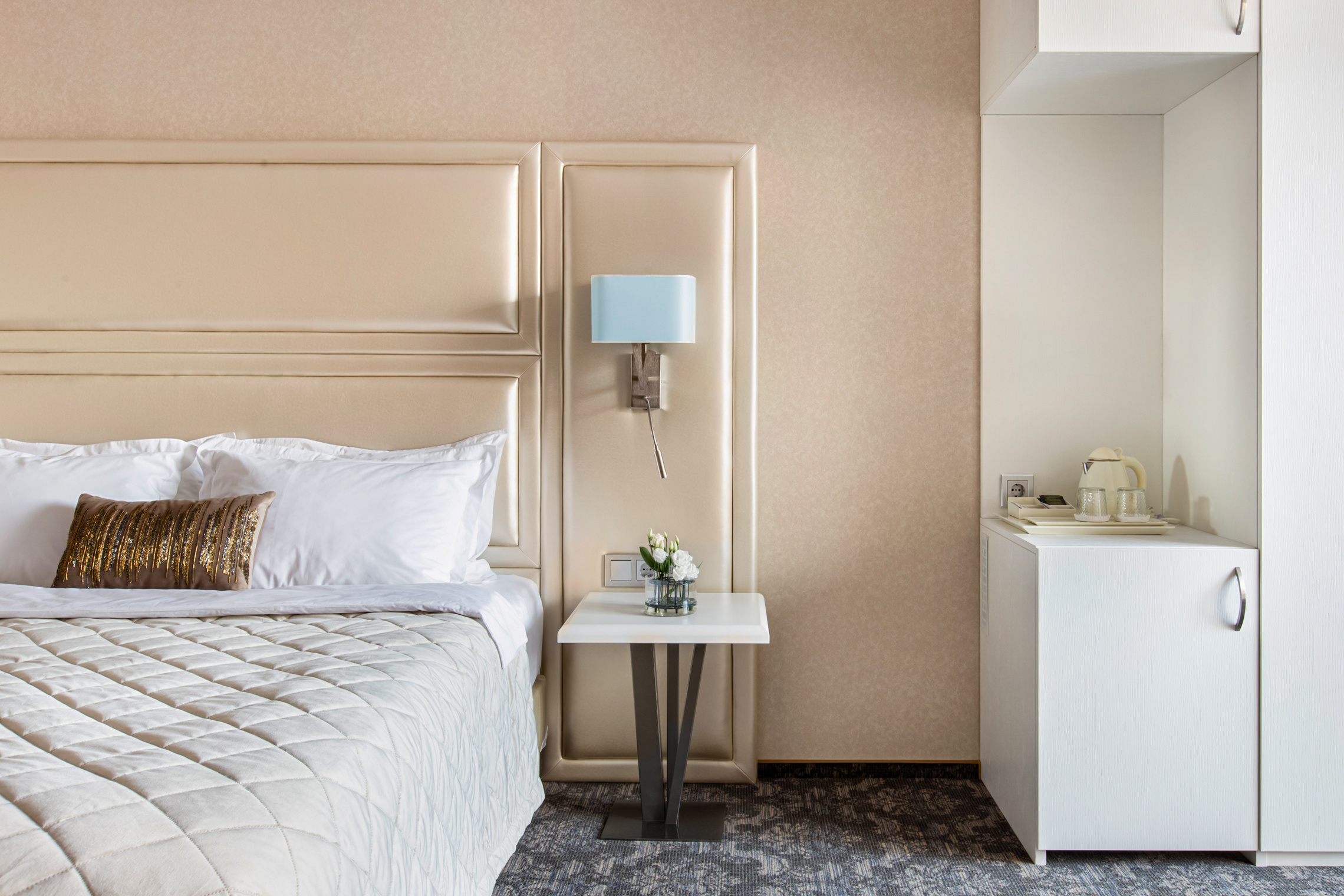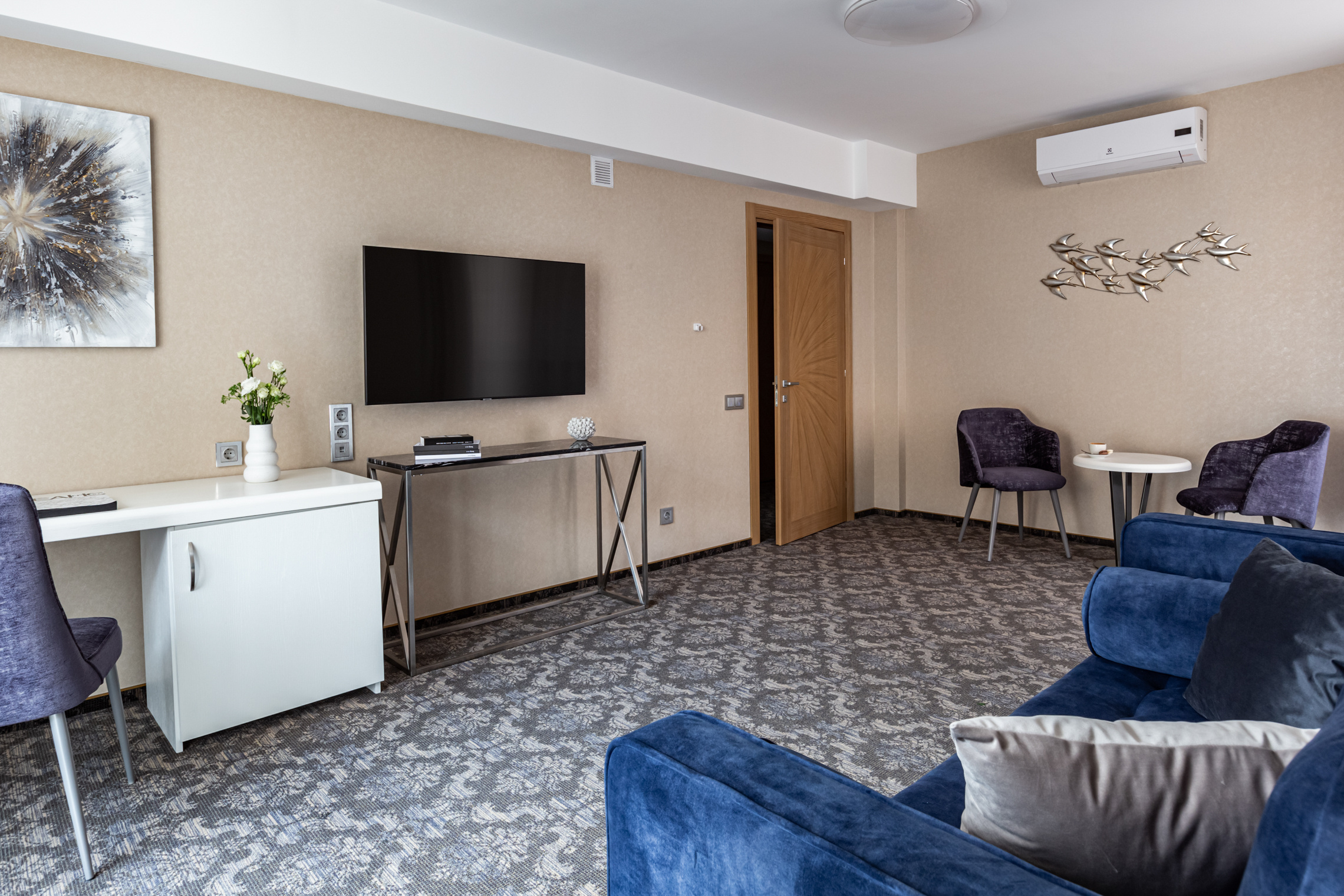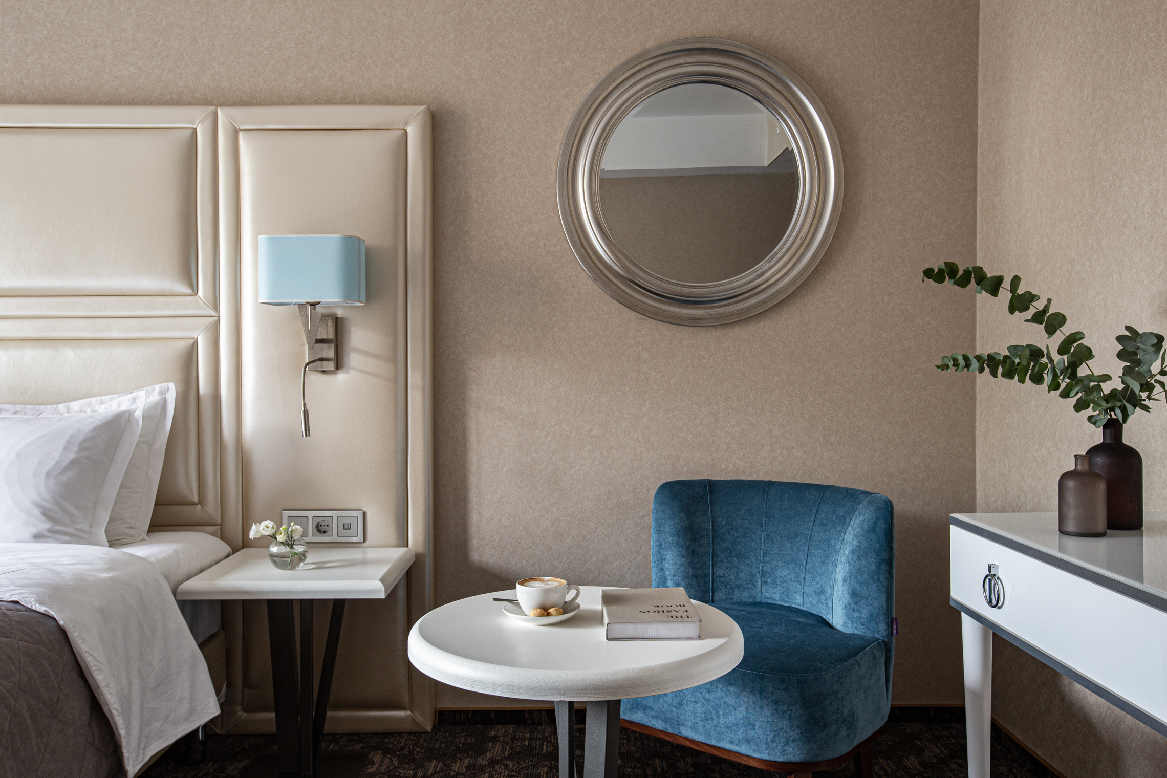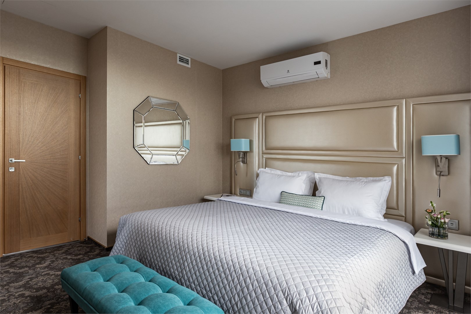 Номер делюкс, который нам предоставили, оказался очень просторным и уютным. Мы были приятно удивлены современным ремонтом и стильным дизайном — все было выполнено с большим вкусом и вниманием к деталям.