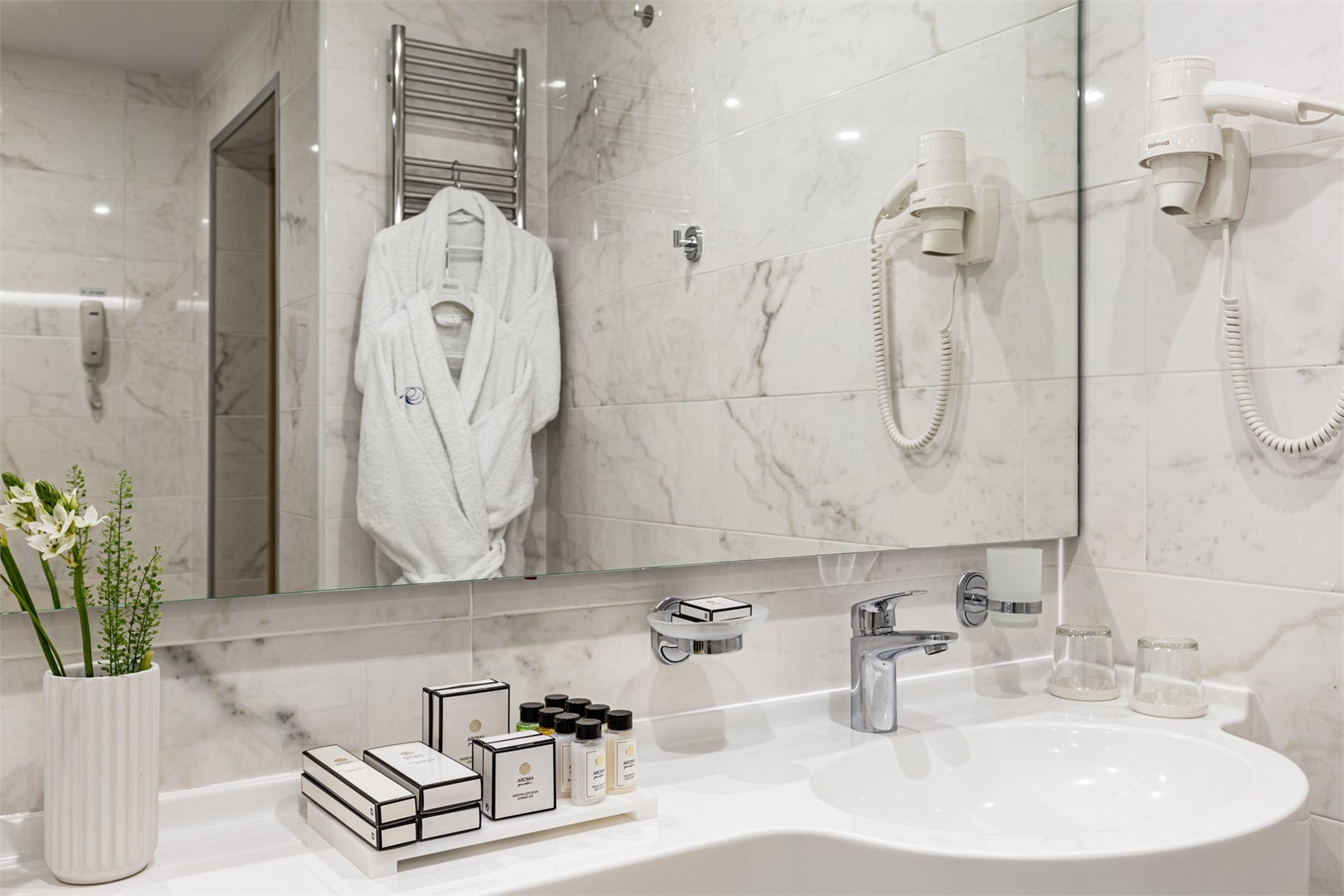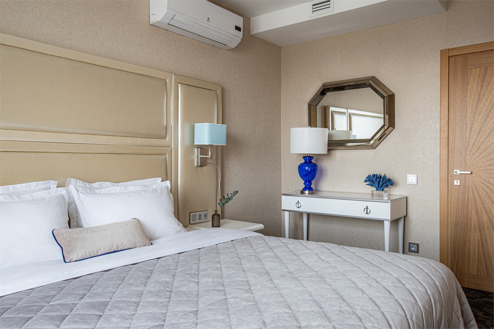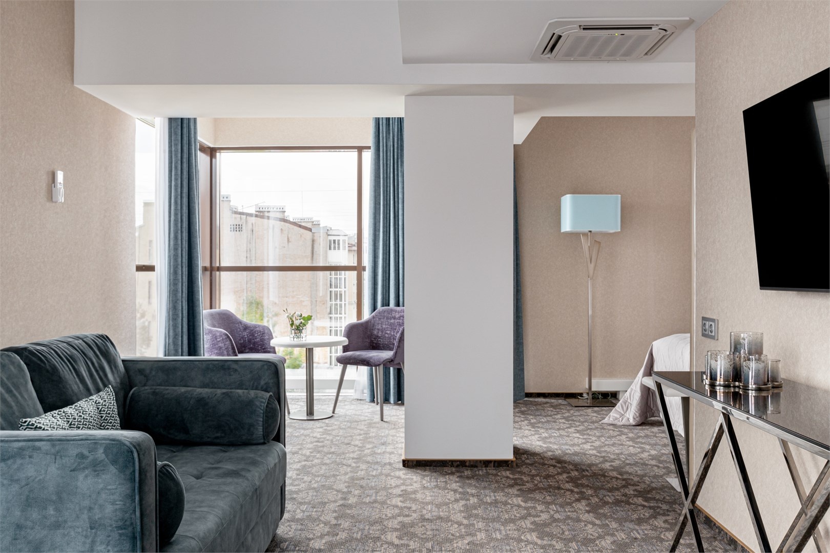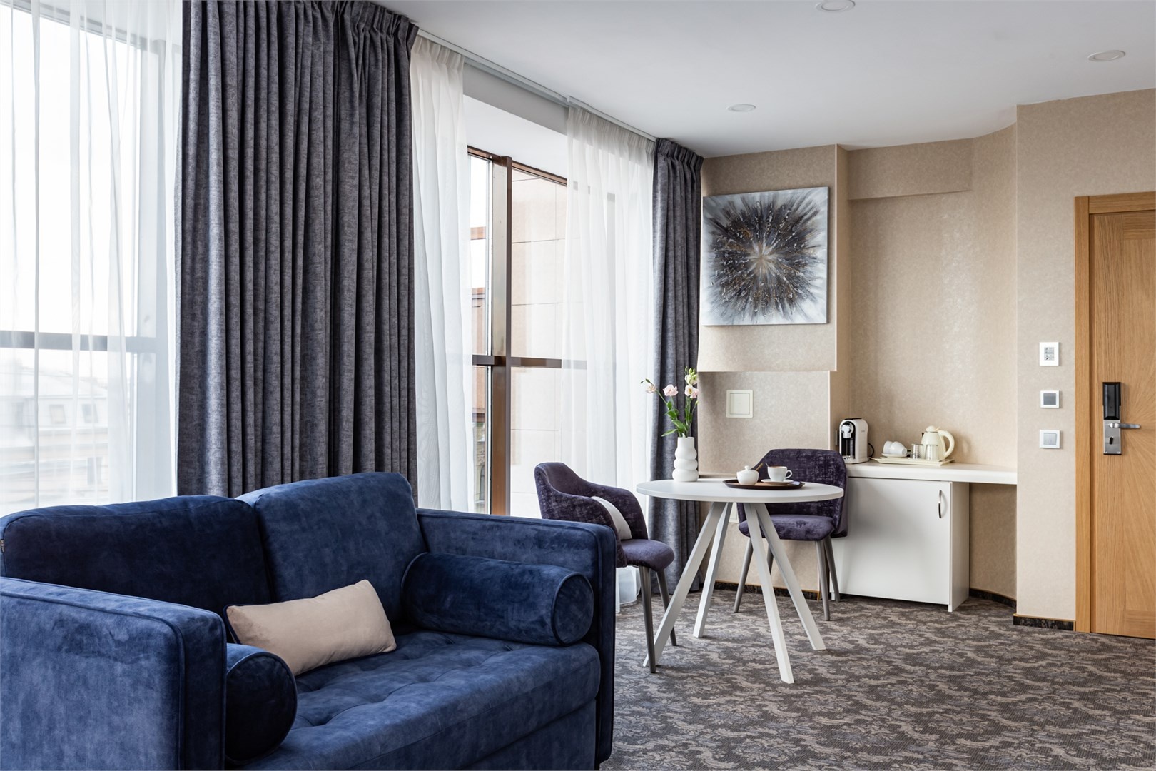 Номер делюкс, который нам предоставили, оказался очень просторным и уютным. Мы были приятно удивлены современным ремонтом и стильным дизайном — все было выполнено с большим вкусом и вниманием к деталям.