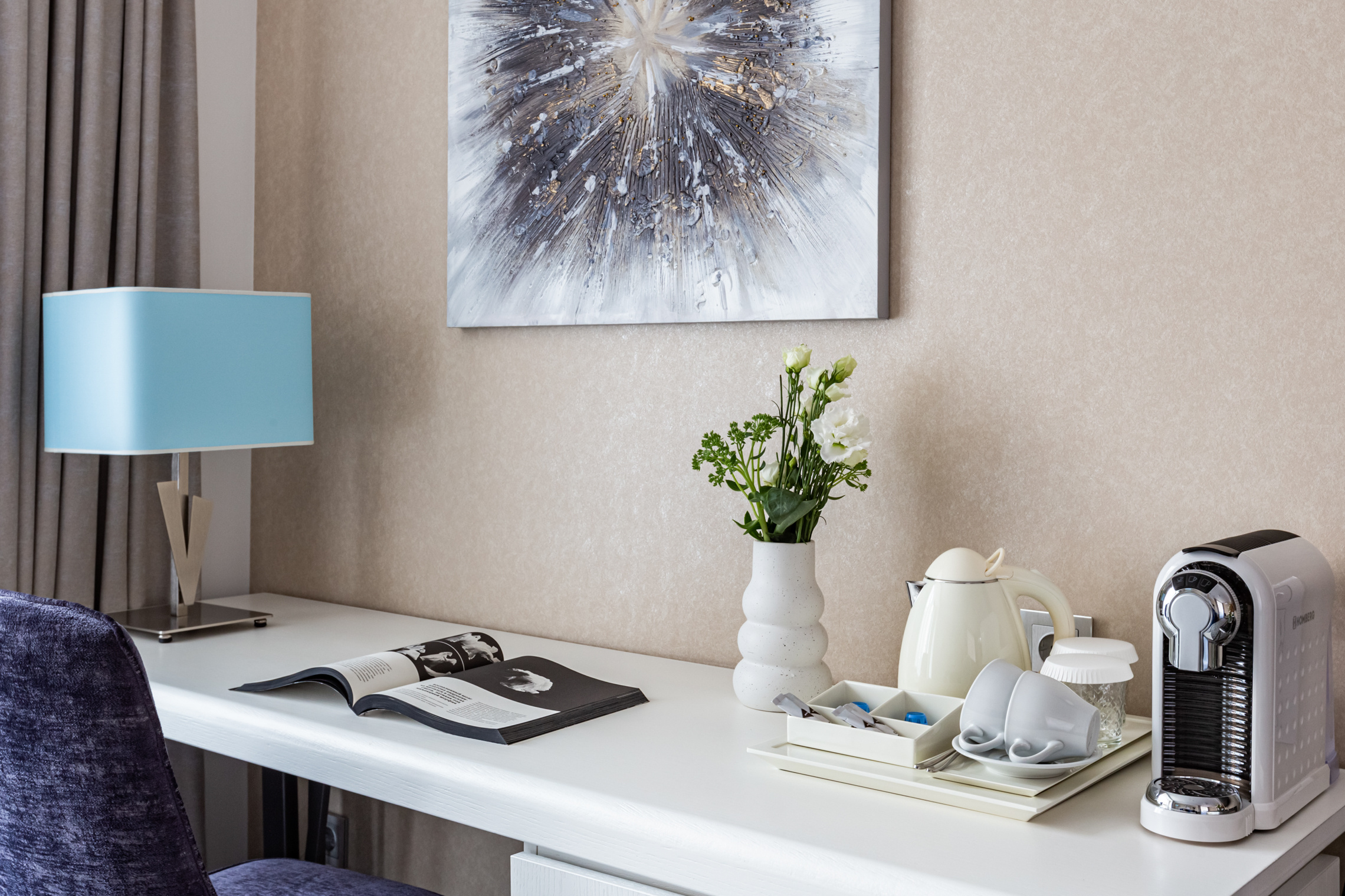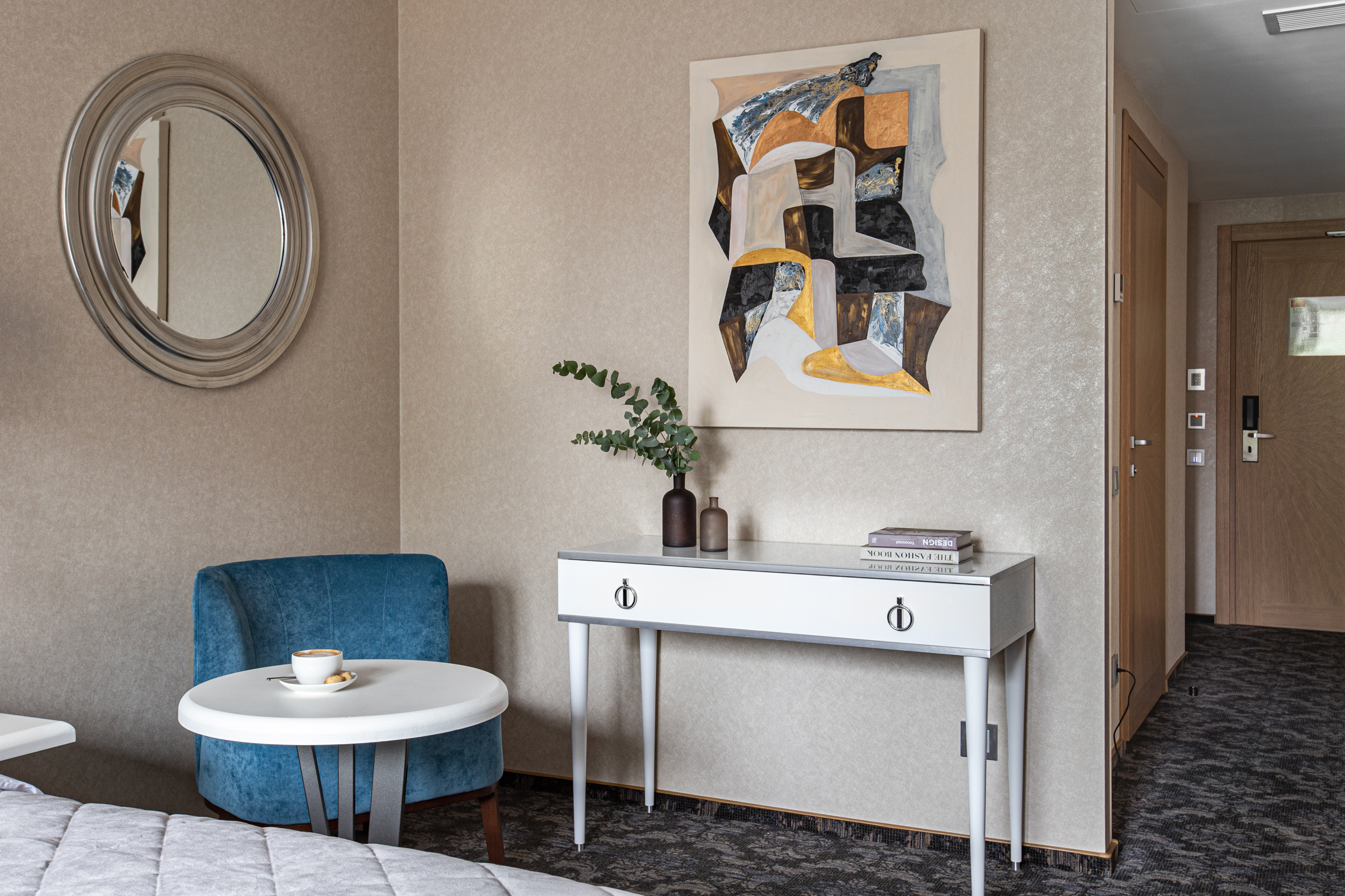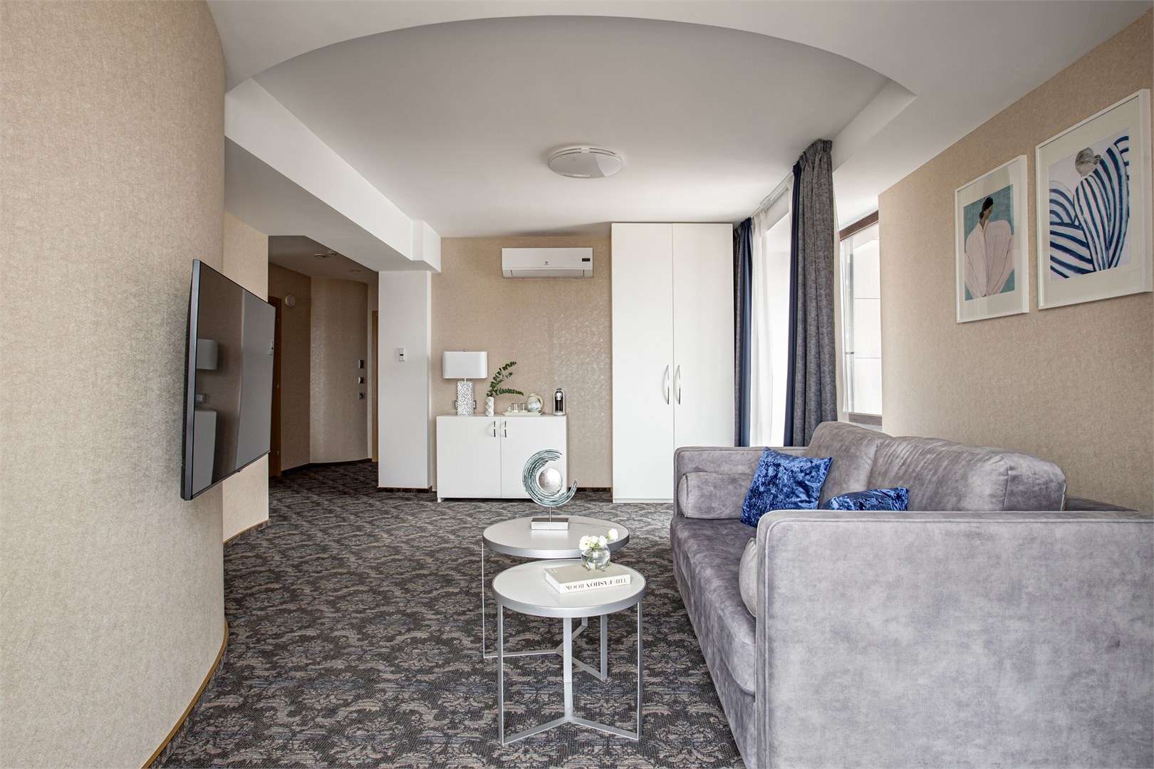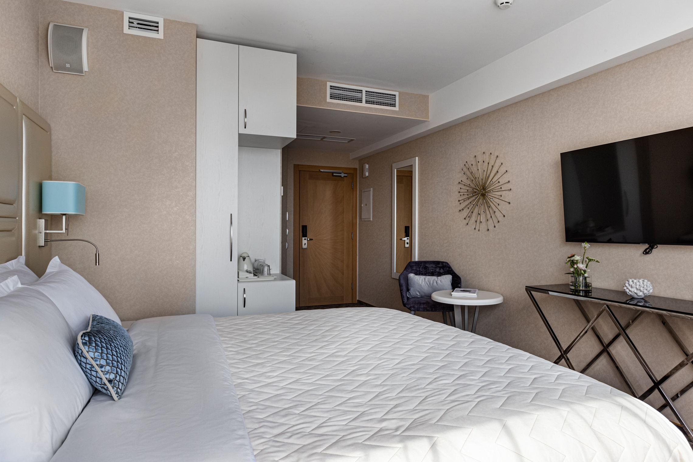 Номер делюкс, который нам предоставили, оказался очень просторным и уютным. Мы были приятно удивлены современным ремонтом и стильным дизайном — все было выполнено с большим вкусом и вниманием к деталям.