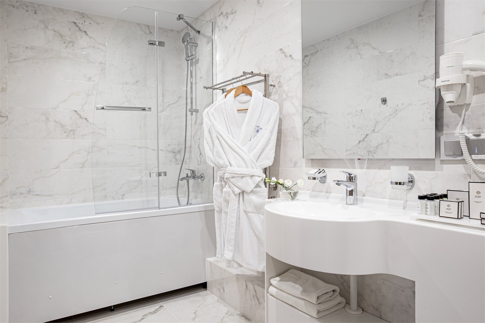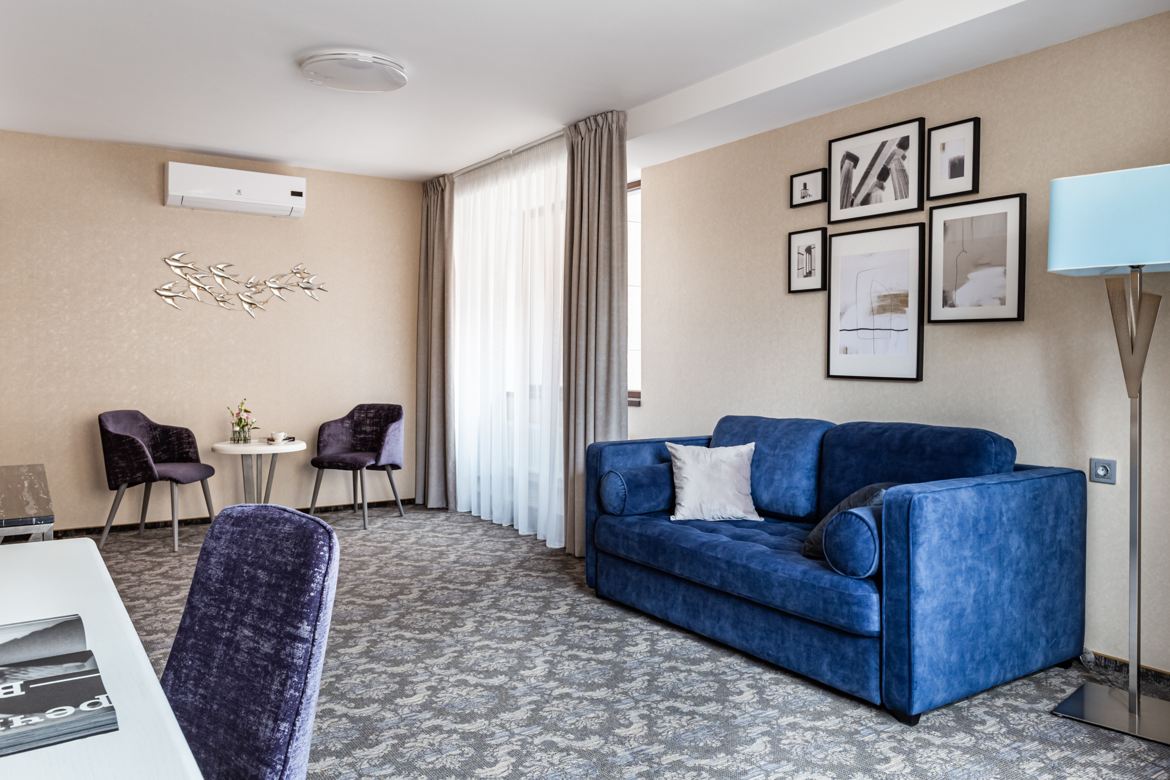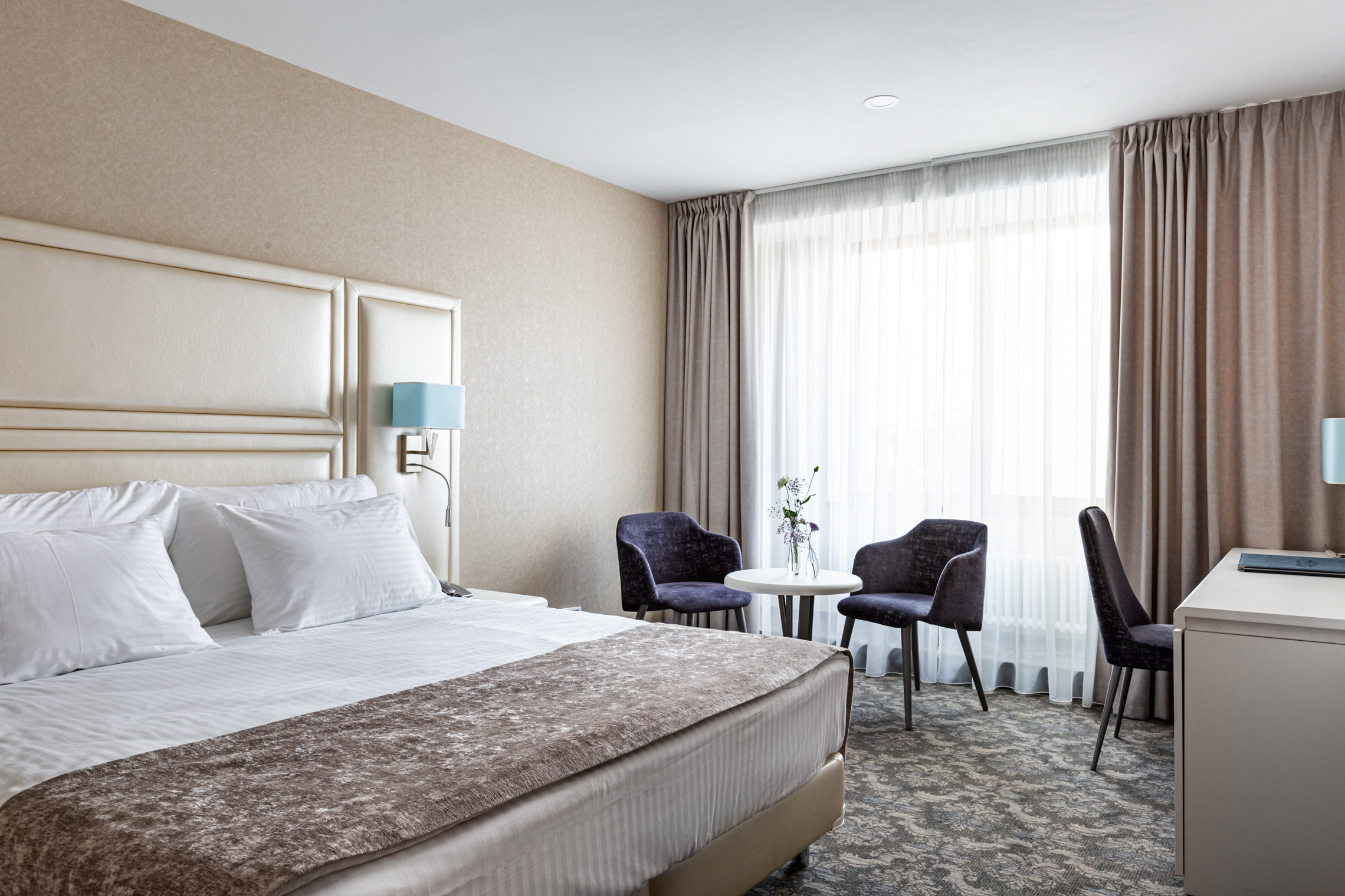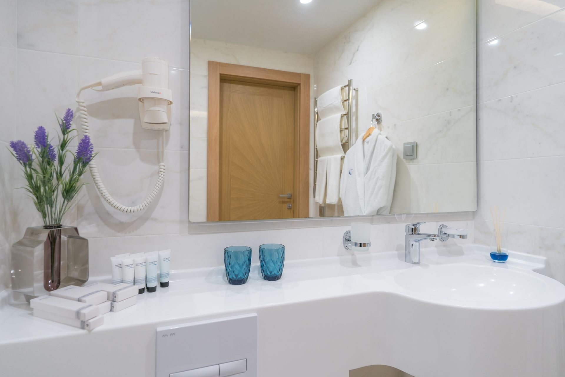 Номер делюкс, который нам предоставили, оказался очень просторным и уютным. Мы были приятно удивлены современным ремонтом и стильным дизайном — все было выполнено с большим вкусом и вниманием к деталям.