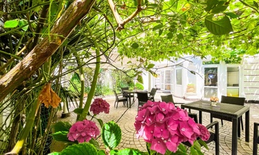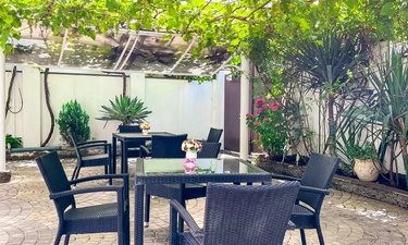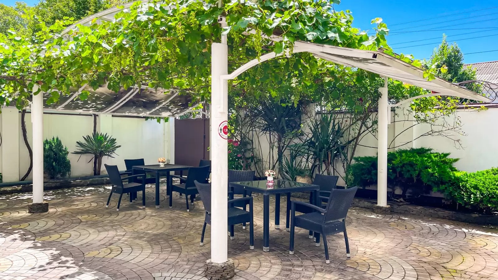 Имеется свой внутренний дворик, скрытый от посторонних глаз за белоснежным забором.