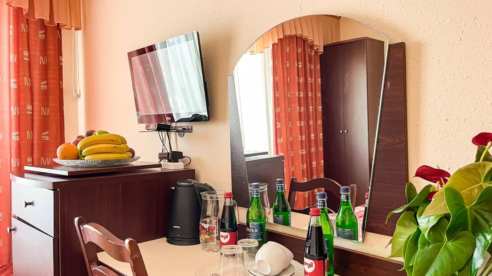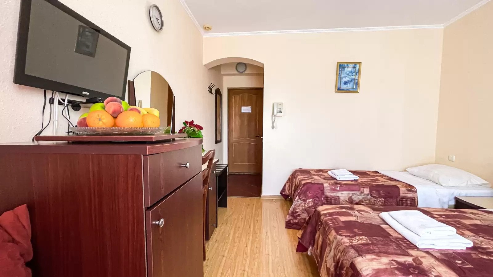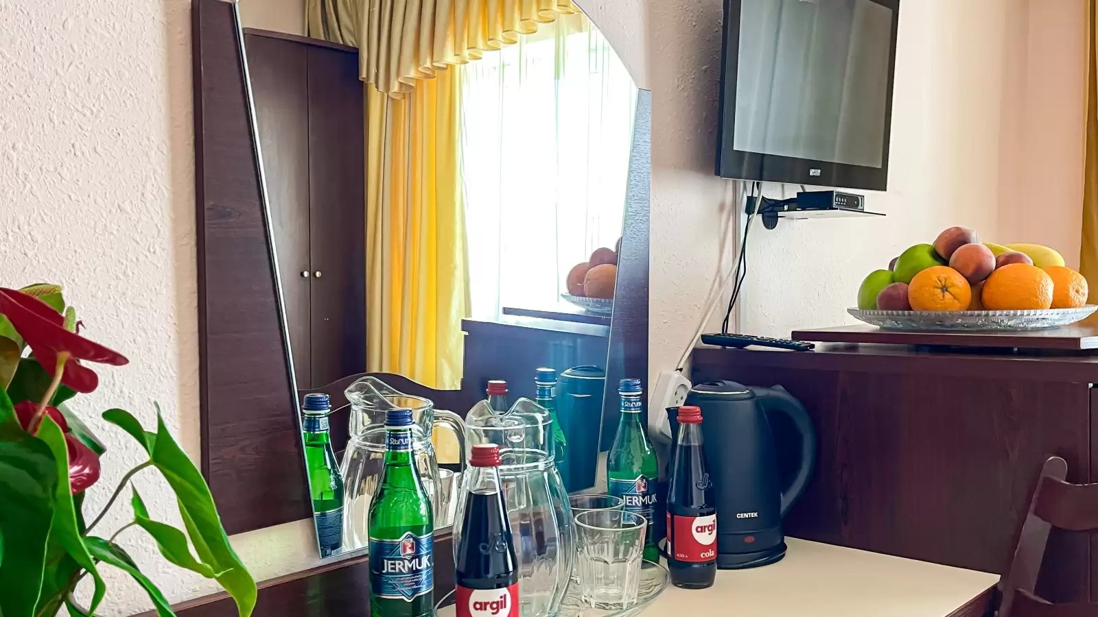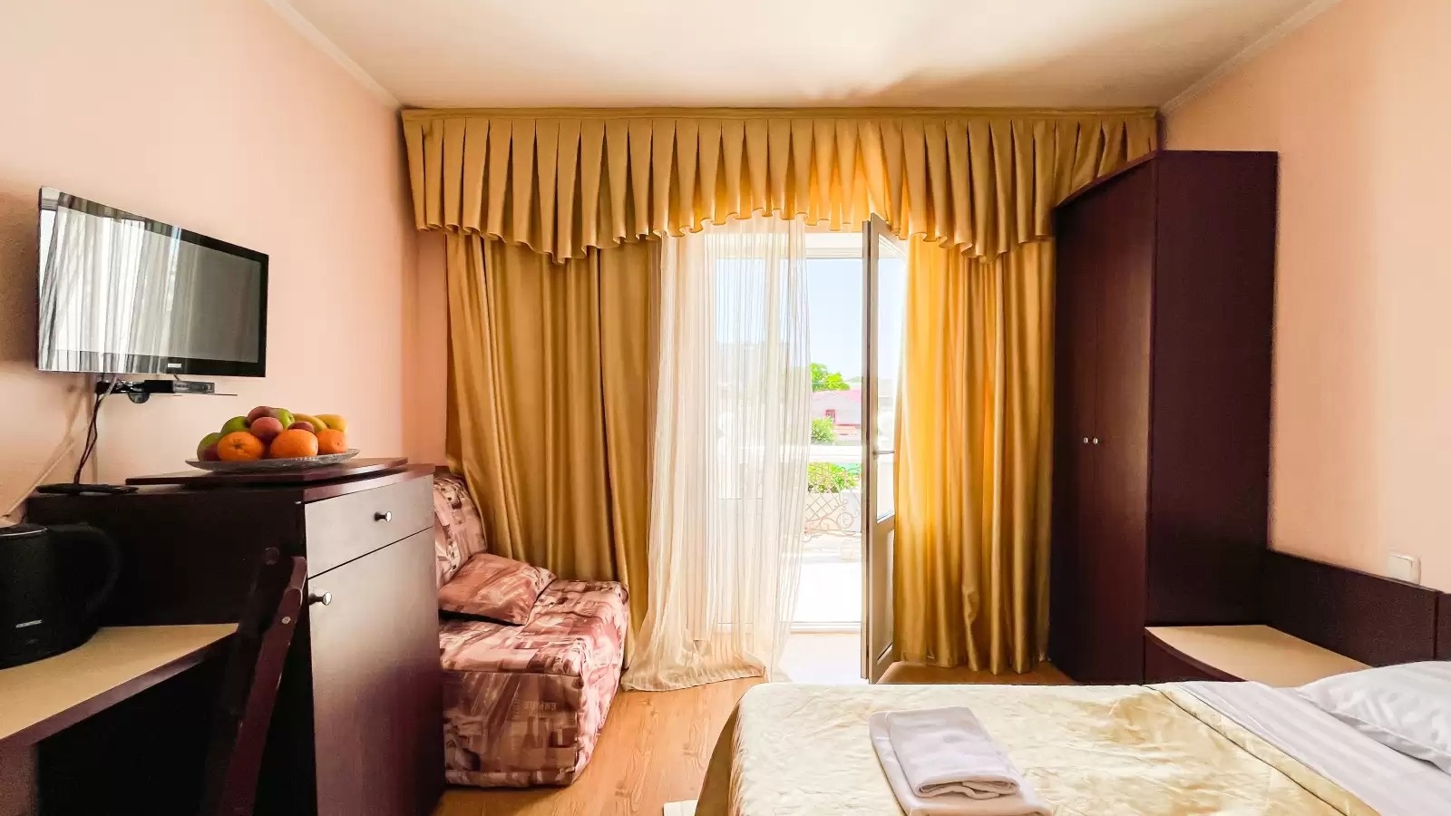 Каждый номер также оснащен сплит-системой, холодильником, телевизором, мебелью,