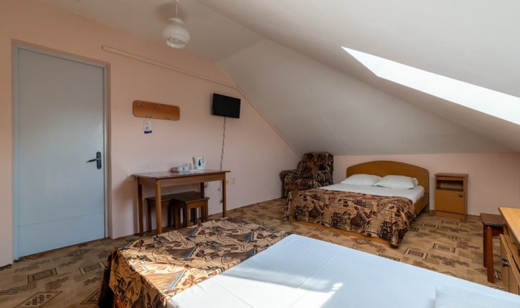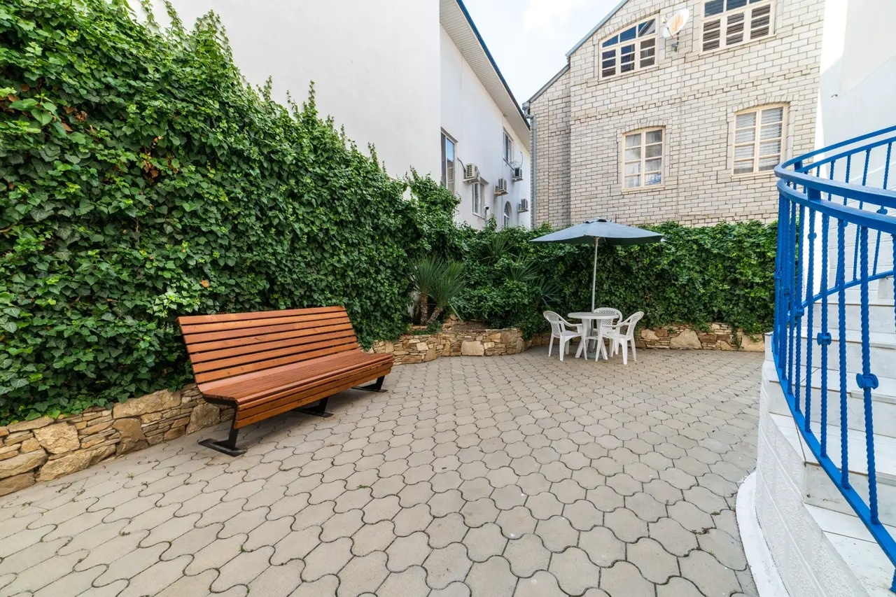 Понравилась аллея из туй во дворе, чистое белье. Нам нужно было переночевать одну ночь перед заселением в другой отель, поэтому выбирали недорогой вариант. Выбрали вариант с общей душевой на мансардном этаже. Много не ожидали.