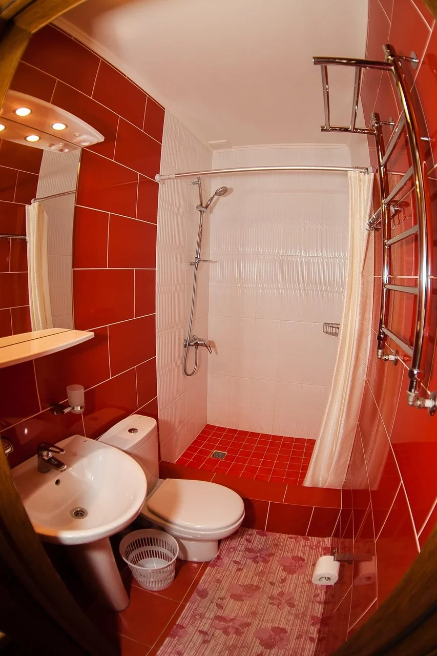 Стильное оформление, большой балкон, очень большая душевая. Есть все необходимое на отдыхе: фен, тапочки, полотенца. Даже тазик для стирки в наличии.