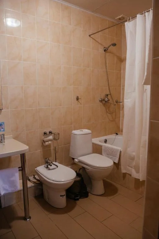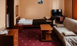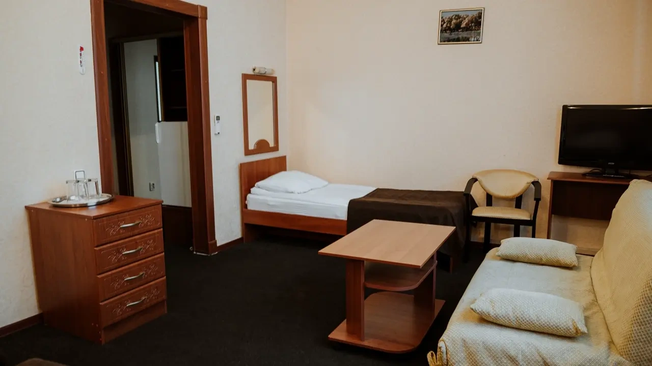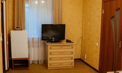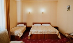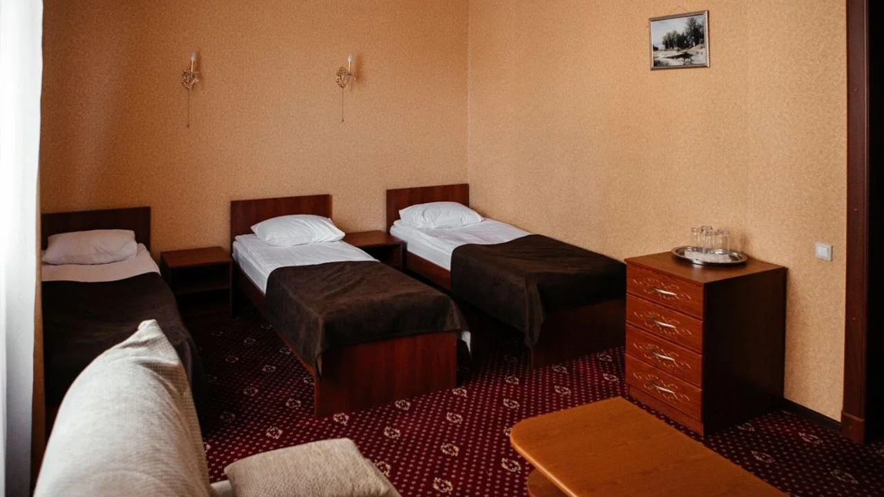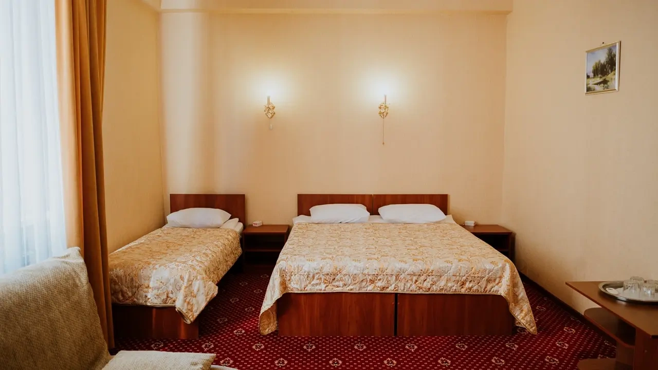 Стандартный семейный номер 20 кв.м с 1 двуспальной кроватью и 2 односпальными кроватями. В номере имеется всё необходимое: Кондиционер. Собственная ванная комната. Телевизор с плоским экраном Полотенца Средства индивидуального пользования Холодильник Телефон Отопление Фен Ковровое покрытие Кабельные каналы Шкаф Вешалка для одежды