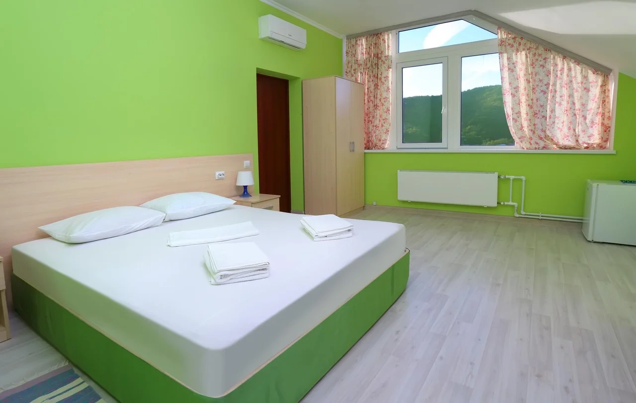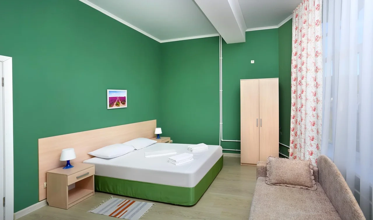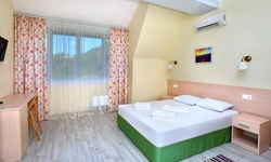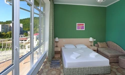 Отдыхали семьёй, 2 взрослых и 2 детей с 01.09.2025 по 06.09.2025. Впечатления от отеля прекрасные: номер двухкомнатный комфортный, 4-х местный с балконом. Номер чистый, вид с балкона шикарный на море и горы. На балконе есть столик и стулья, есть возможность провести отлично вечер. В номере 2 кондиционера, холодильник. На территории отличная столовая, очень вкусная еда. До моря минут 15-20 неспешным шагом, дорога к морю через рынок, в принципе нас не напрягала, ходили по 2 раза в день к морю и обратно, магазин Магнит в шаговой доступности. У отеля есть своя парковка за отдельную плату. На территории строят бассейн, планируют ввести в эксплуатацию в следующем году Рекомендую данный отель. По возможности проведем отпуск в данном отеле в следующем году.