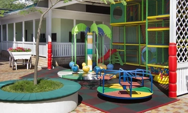 Красивая зеленая территория, отличная игровая зона. Есть возможность питаться в столовой (цены средние, вкус тоже).